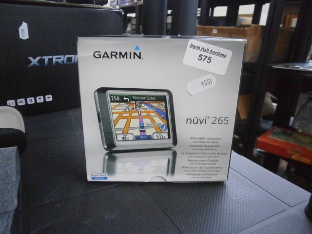 This is a Garmin nüvi 265 GPS device presented in its original retail packaging.