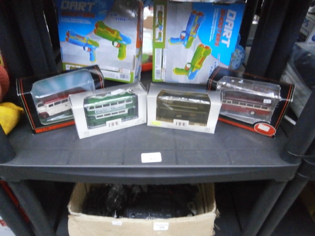 This lot features three boxed model vehicles and two boxed dart toy sets.