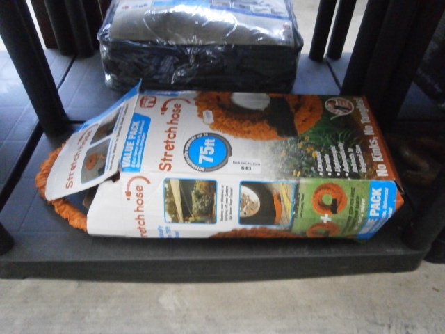 This is a 75ft orange fabric stretch hose in its original packaging.