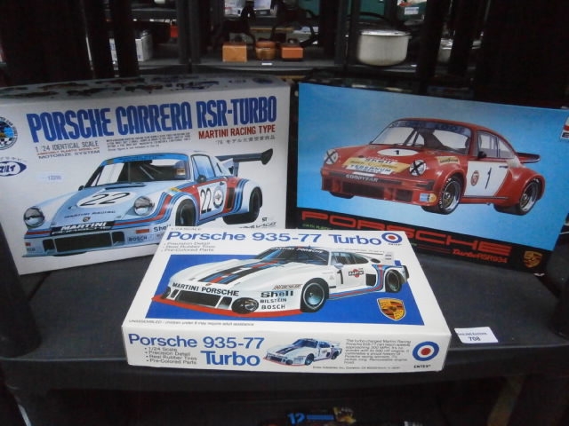 This lot features three Tamiya model car kits of Porsche vehicles, including a Carrera RSR Turbo and two 935 Turbos.