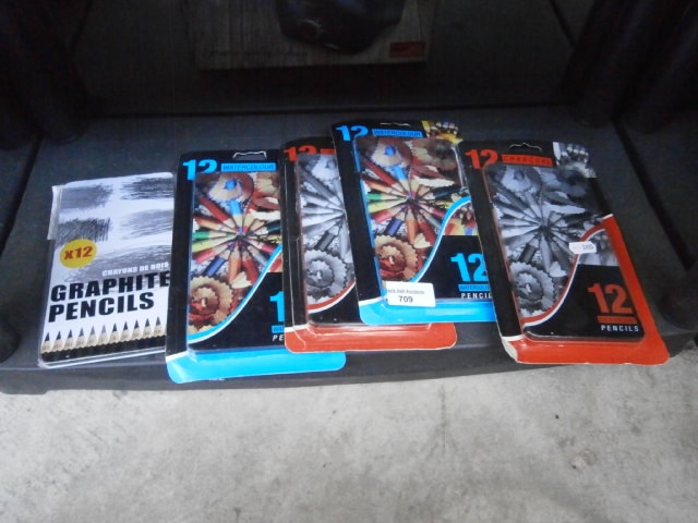 This lot contains four blister packs of pencils, including graphite and watercolour varieties.