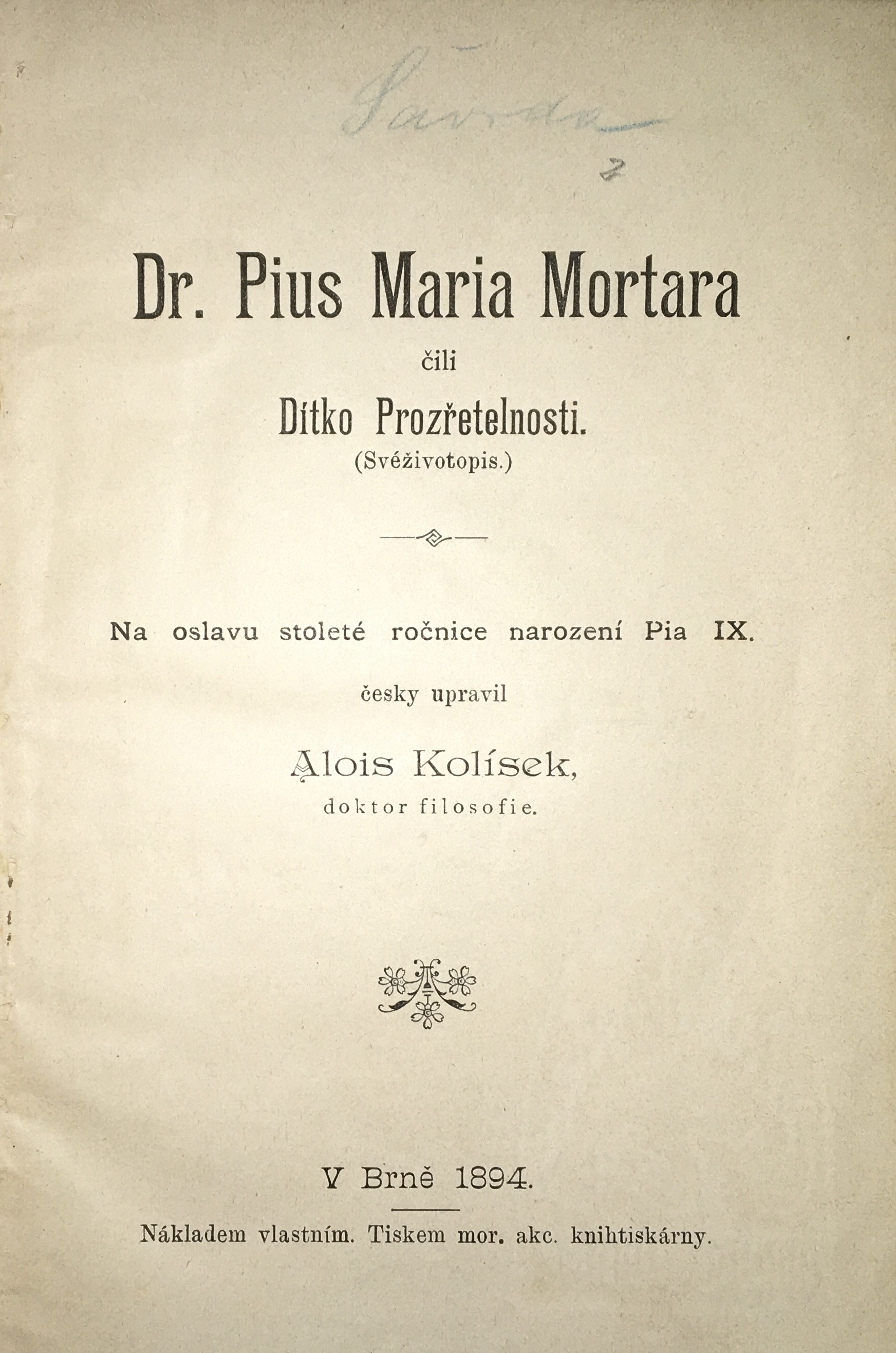 This is a Czech prayer book published by J. Steinbrenera in Vimperk, dated 1887. The book is in 24mo format, measuring approximately 111 mm in height. It contains 384 pages and features a chromolithograph frontispiece, a chromolithograph title-page, and 12 full-page illustrations.