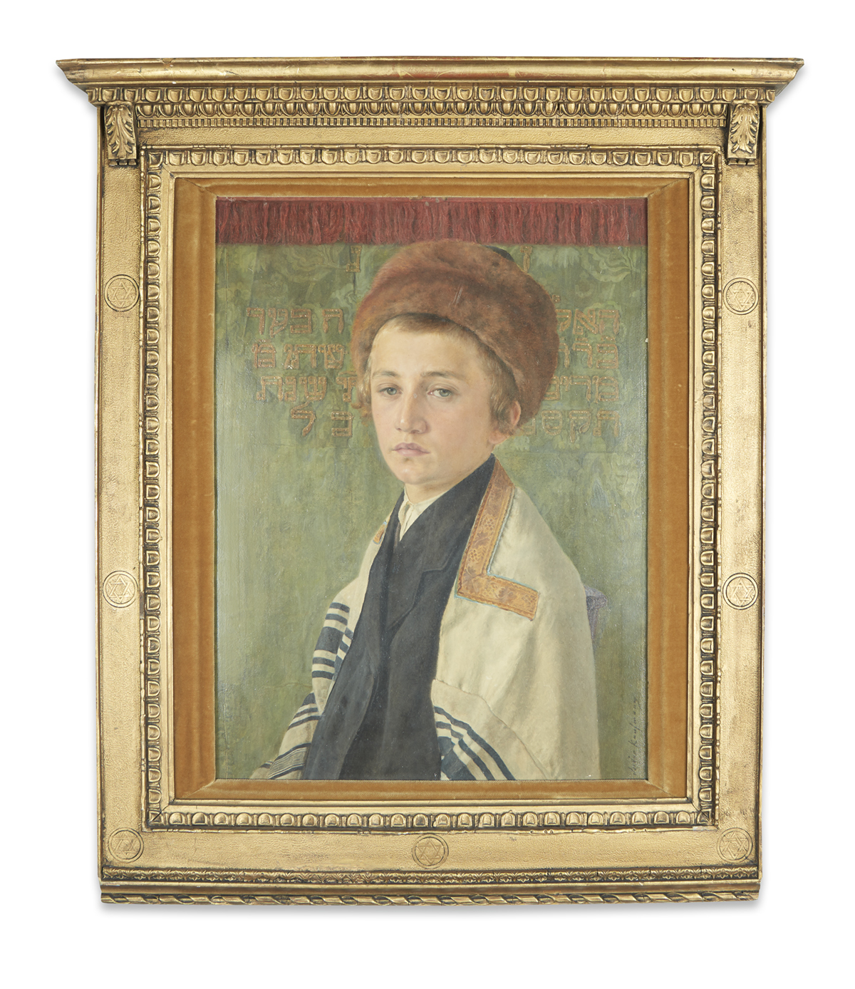 Reproduction of a painting by Isidor Kaufmann (Austrian, 1854-1921). The subject depicts a portrait of a Jewish boy. Isidor Kaufmann was active in the United States.