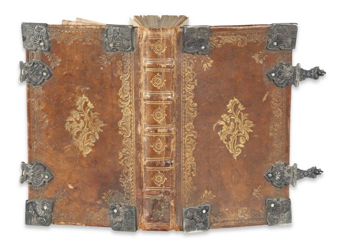 A Quarto Geneva Bible, dated 1608. Bound in contemporary oak boards with metalwork breeches.