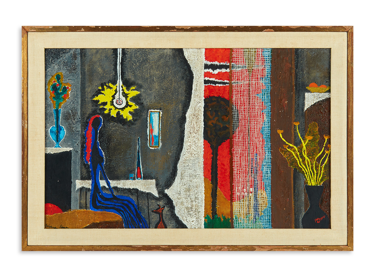 Yohanan Simon (1905-1976) was an Israeli artist. This work, titled ‘Seated woman in interior,’ was created in 1960 using oil on canvas.