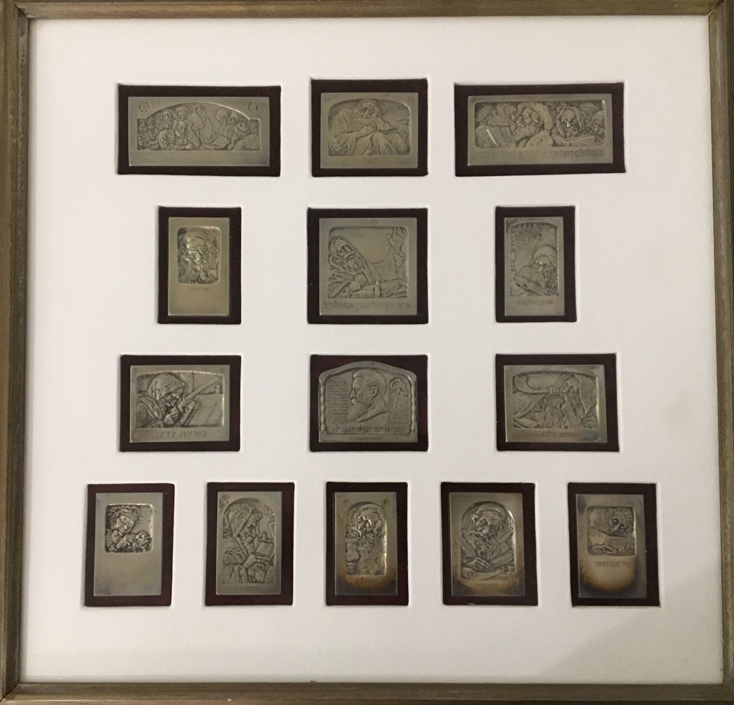 A suite of fourteen sterling intaglio relief plaques by Boris Schatz (1867-1932), depicting Jewish themes and religious scenes. These plaques date to the 20th Century and are associated with Jerusalem.