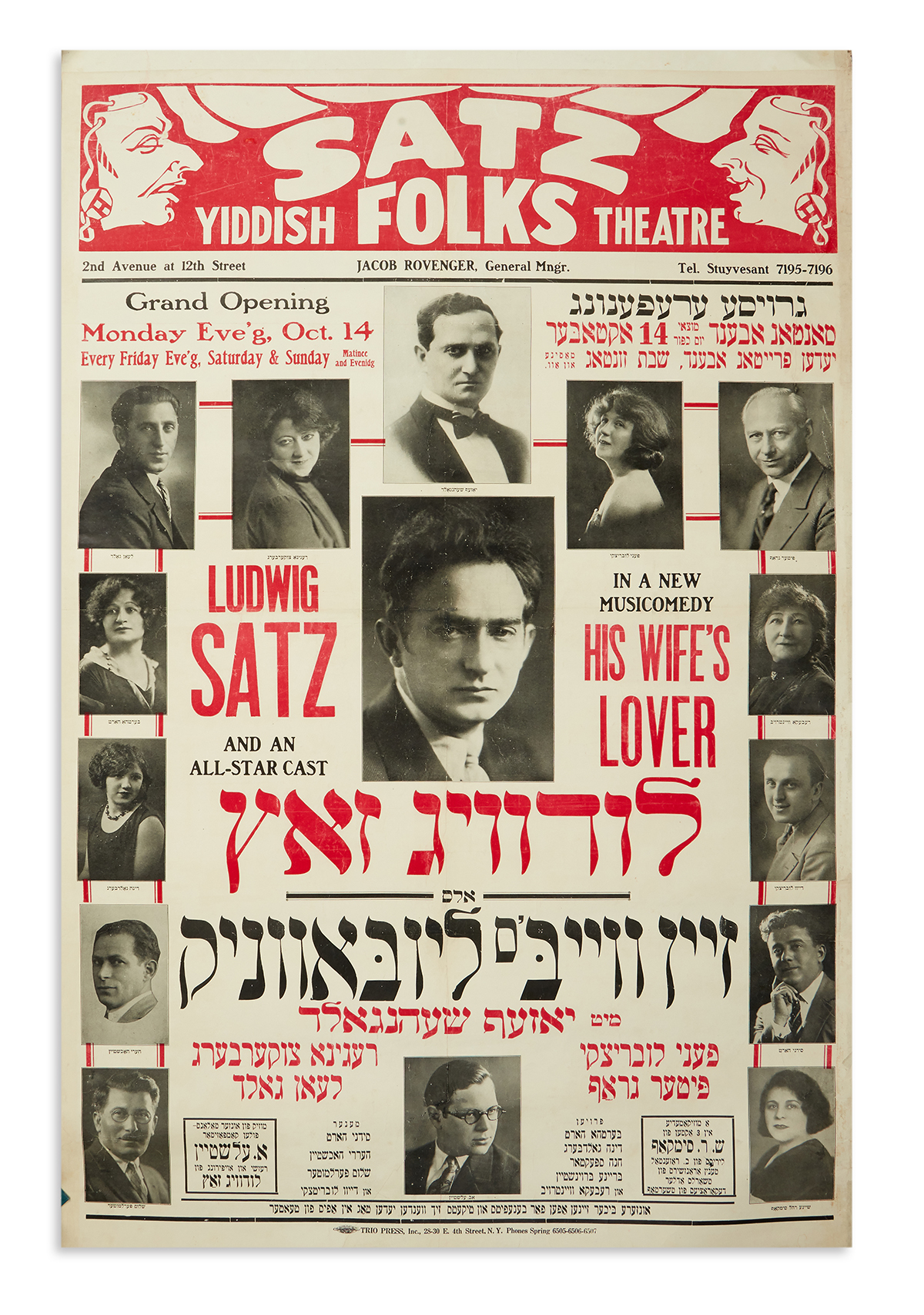 Material: Paper or Canvas. Period: Circa 1929 or 1954. Subject: Depicting themes related to American Jewish theater, music, or opera. Notable features: Potentially related to the play ‘Katja’s Wedding’ or the premiere of Jewish Opera ‘DAVID’.