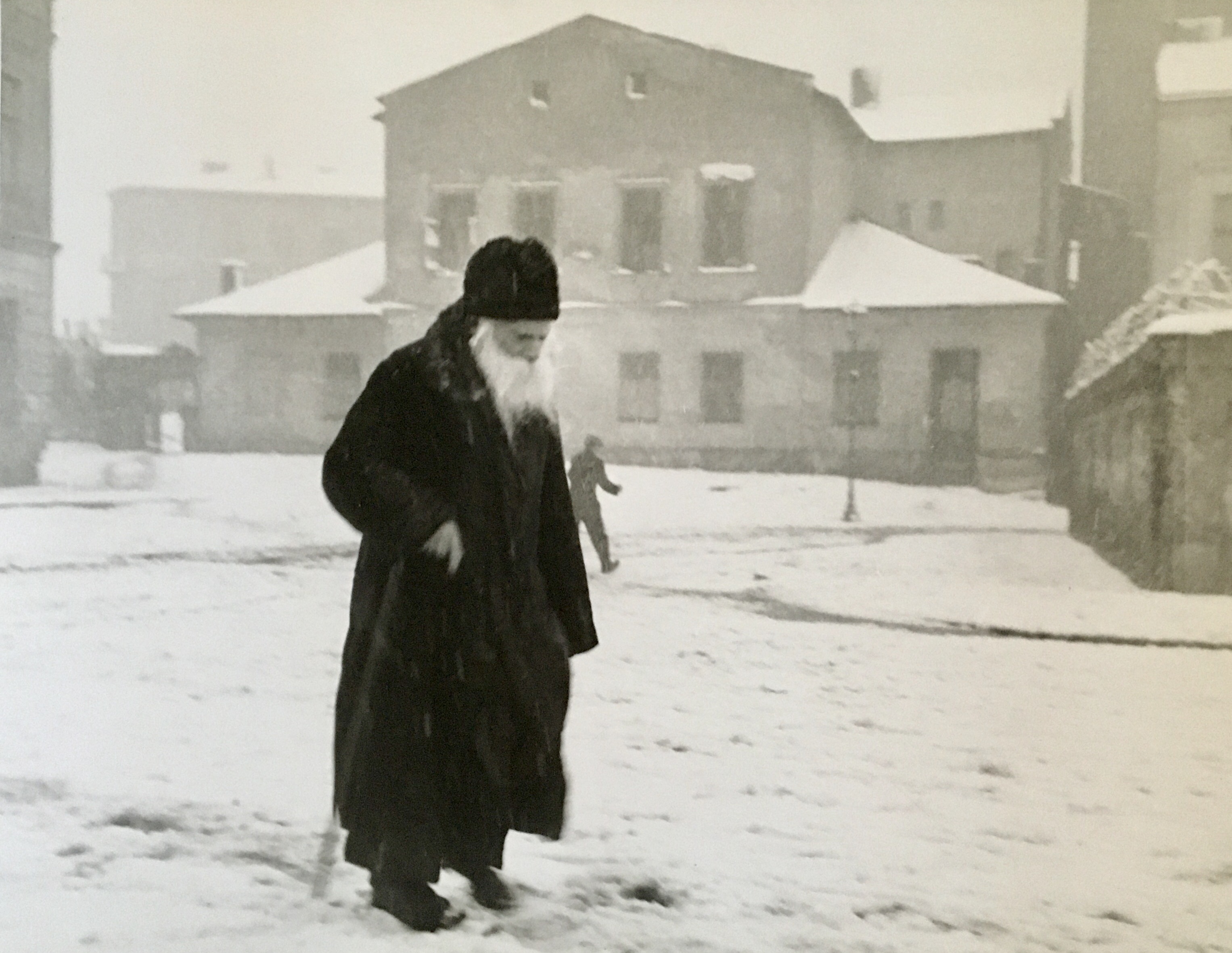 The item is an albumen print depicting Leon Tolstoi on a winter promenade. The photographer is Sophia Andreevna Tolstaya. The subject, Leon Tolstoi, lived from 1828 to 1910.