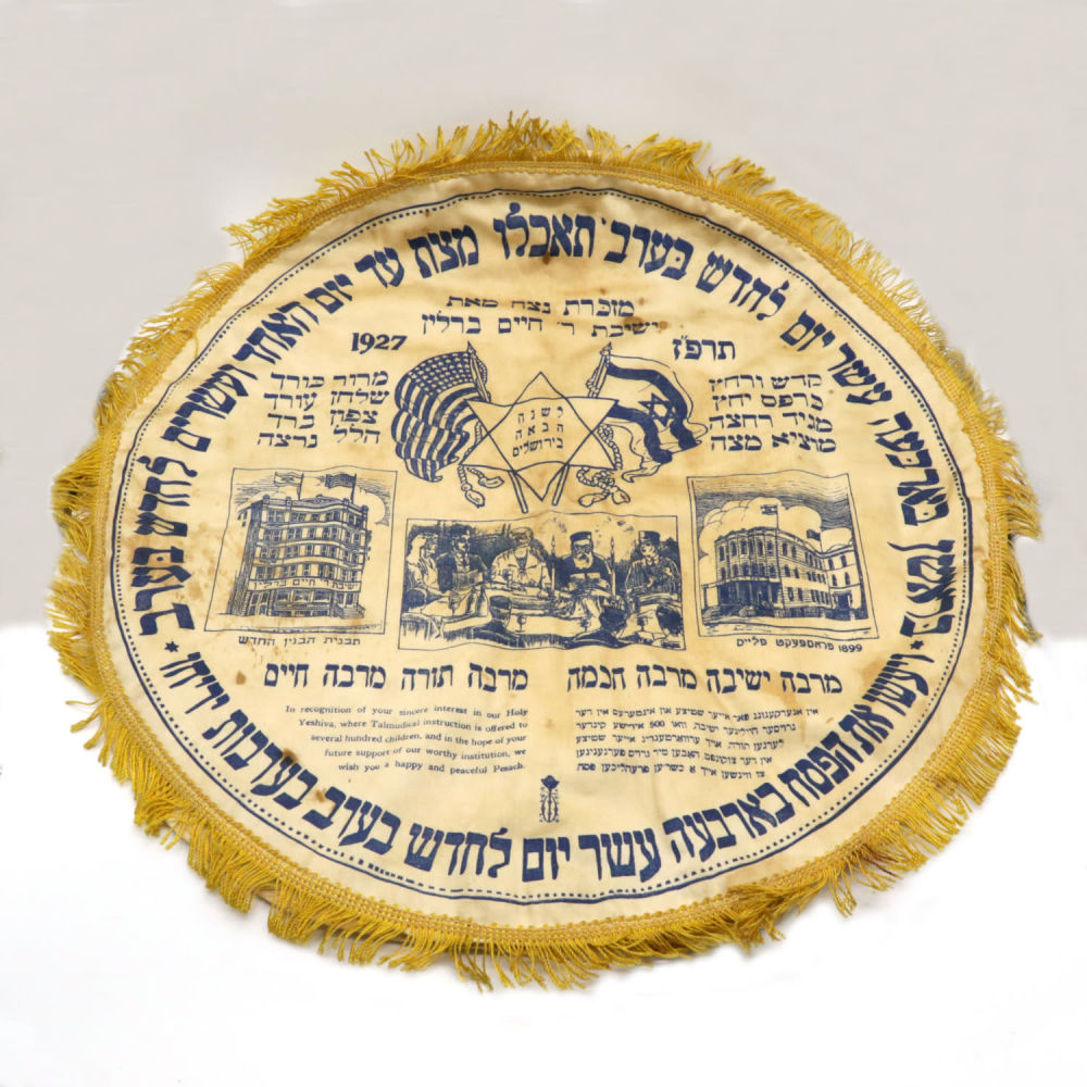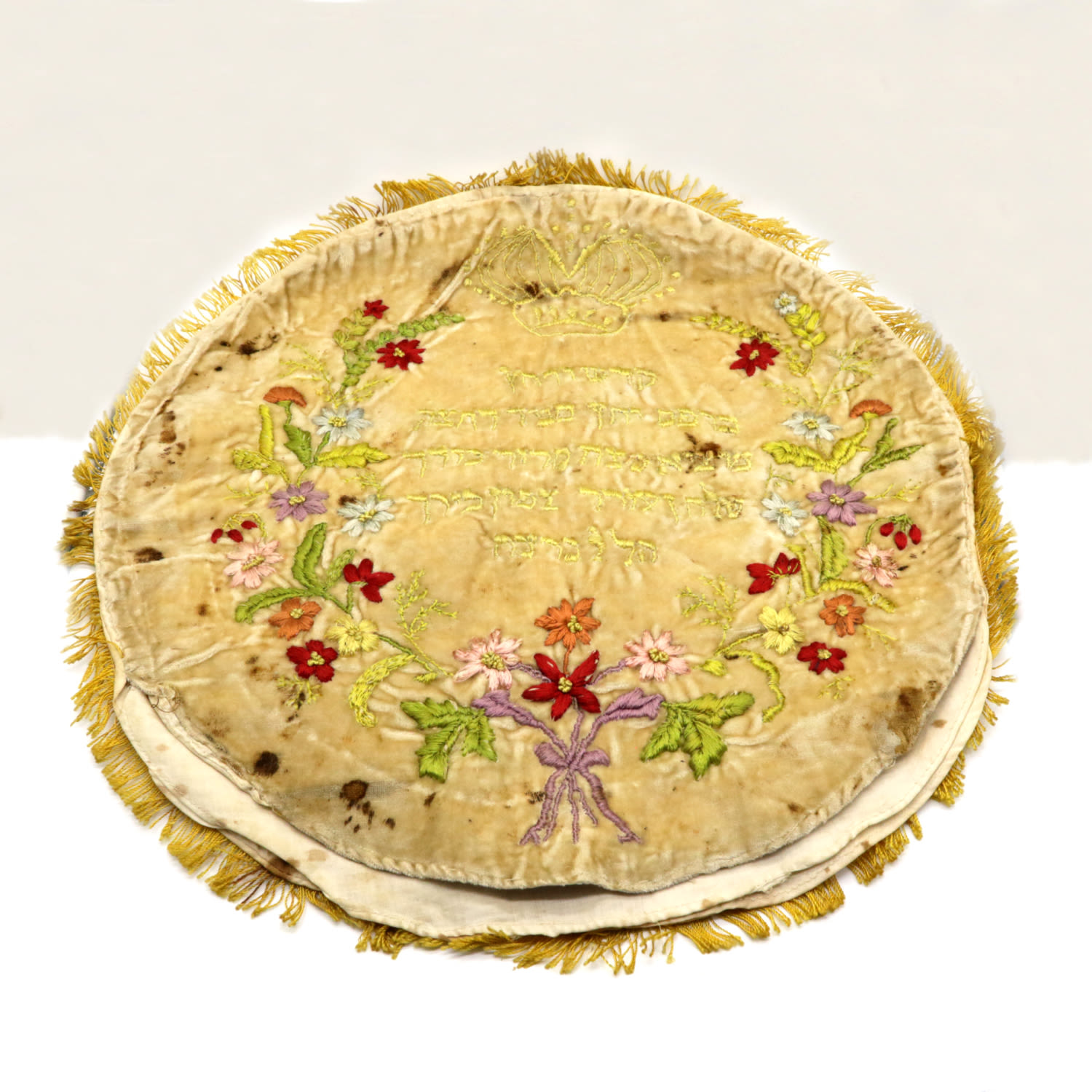 An embroidered item, identified as a Judaica matzah cover for Passover.
