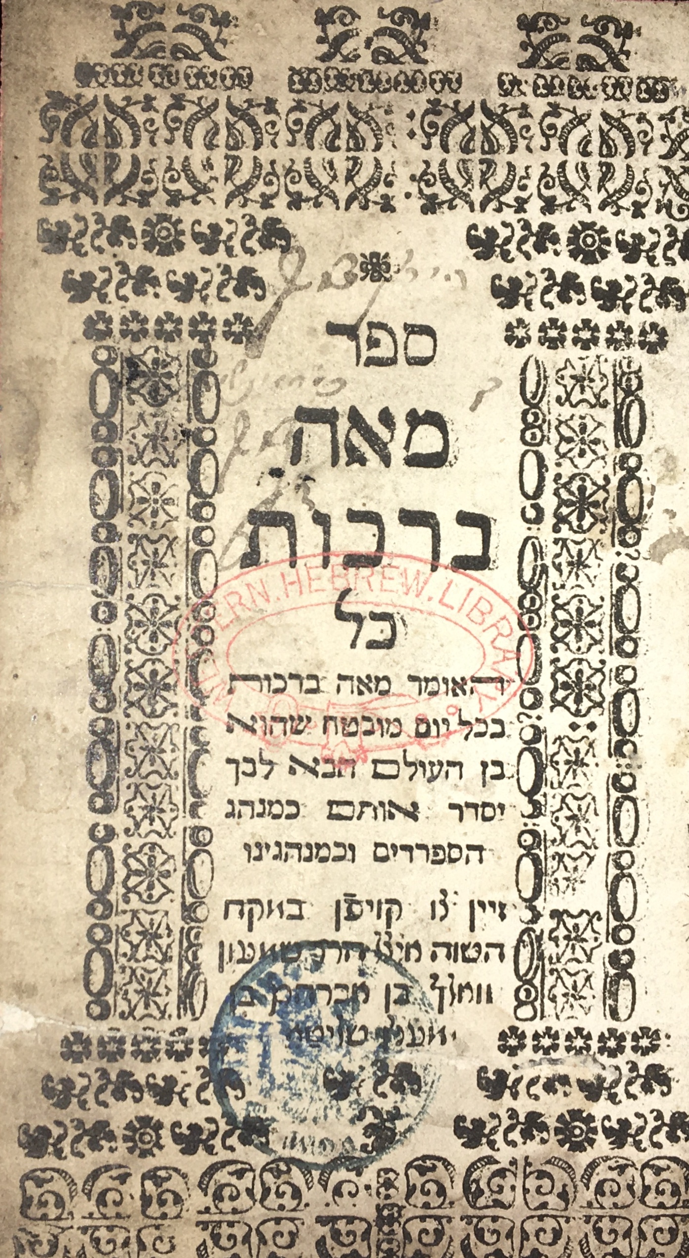 A lot of 8 title pages from rare Jewish Hebrew Seforim, dating from 1624 to 1836. Other items referenced in context include Mishanyos Zeraim, Lemberg 1860; Zikaron Yosef, Furth 1773; a collection of Antique Seforim in Elegant Leather Bindings, 1692-1837; Bat Melekh; Zera Kodesh by R. Moses Graf; and R. Simeon Abiob, Venice 1712.