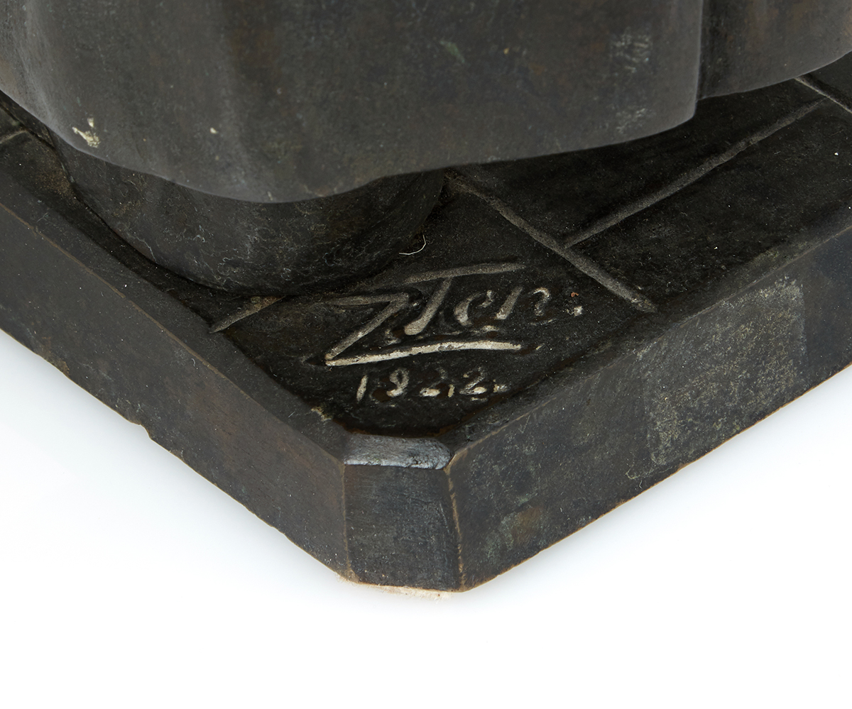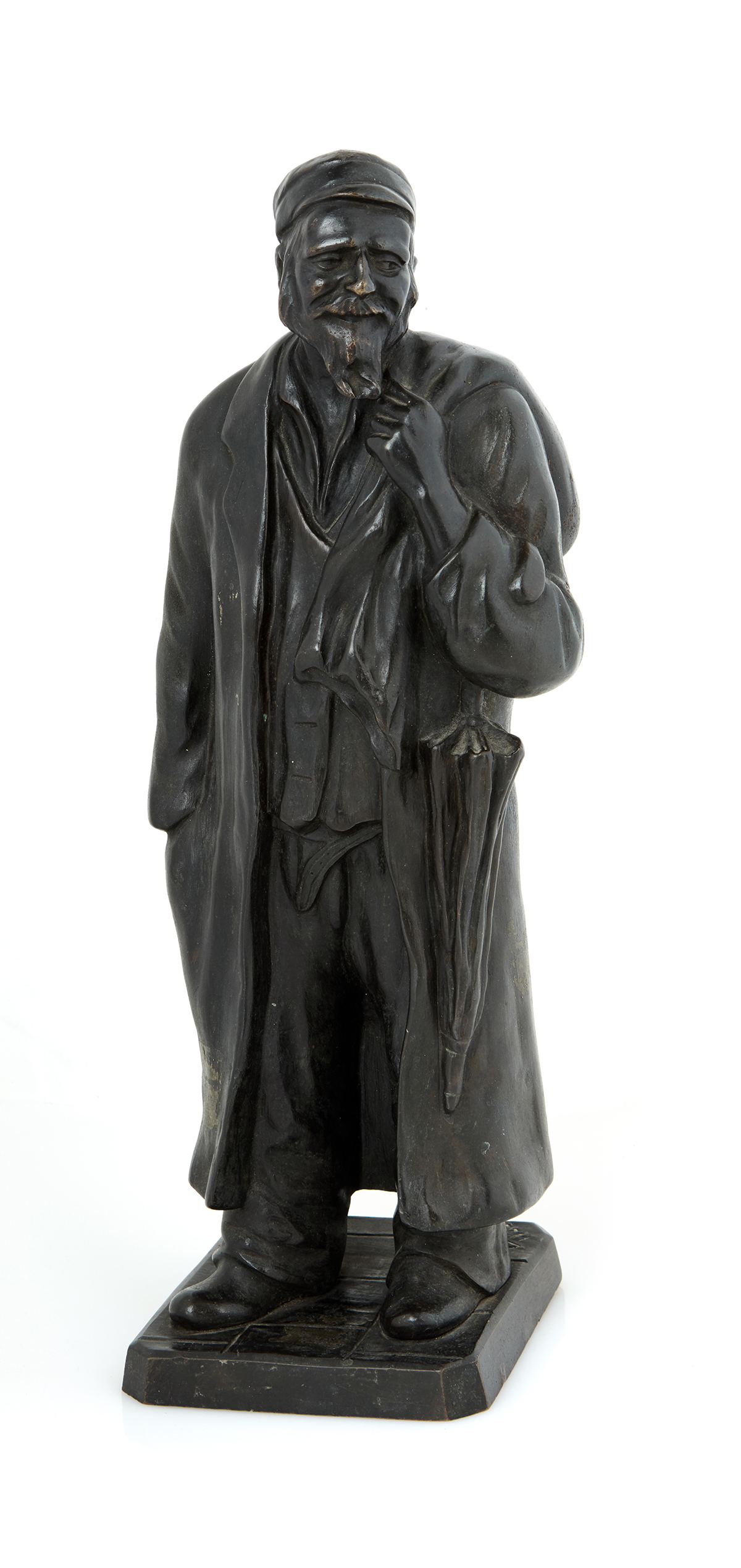 A vintage bronze statue depicting ‘The Lone Sailor’, associated with the United States Navy Memorial in Washington D.C. The statue is by Stanley Bliefield. One reference indicates a year of 1986 for a souvenir statue.