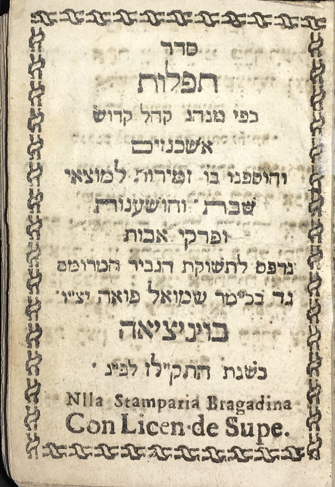 A book titled Seder Tahanunim, Slichot ve Piutim, published in Mantua in 1661.