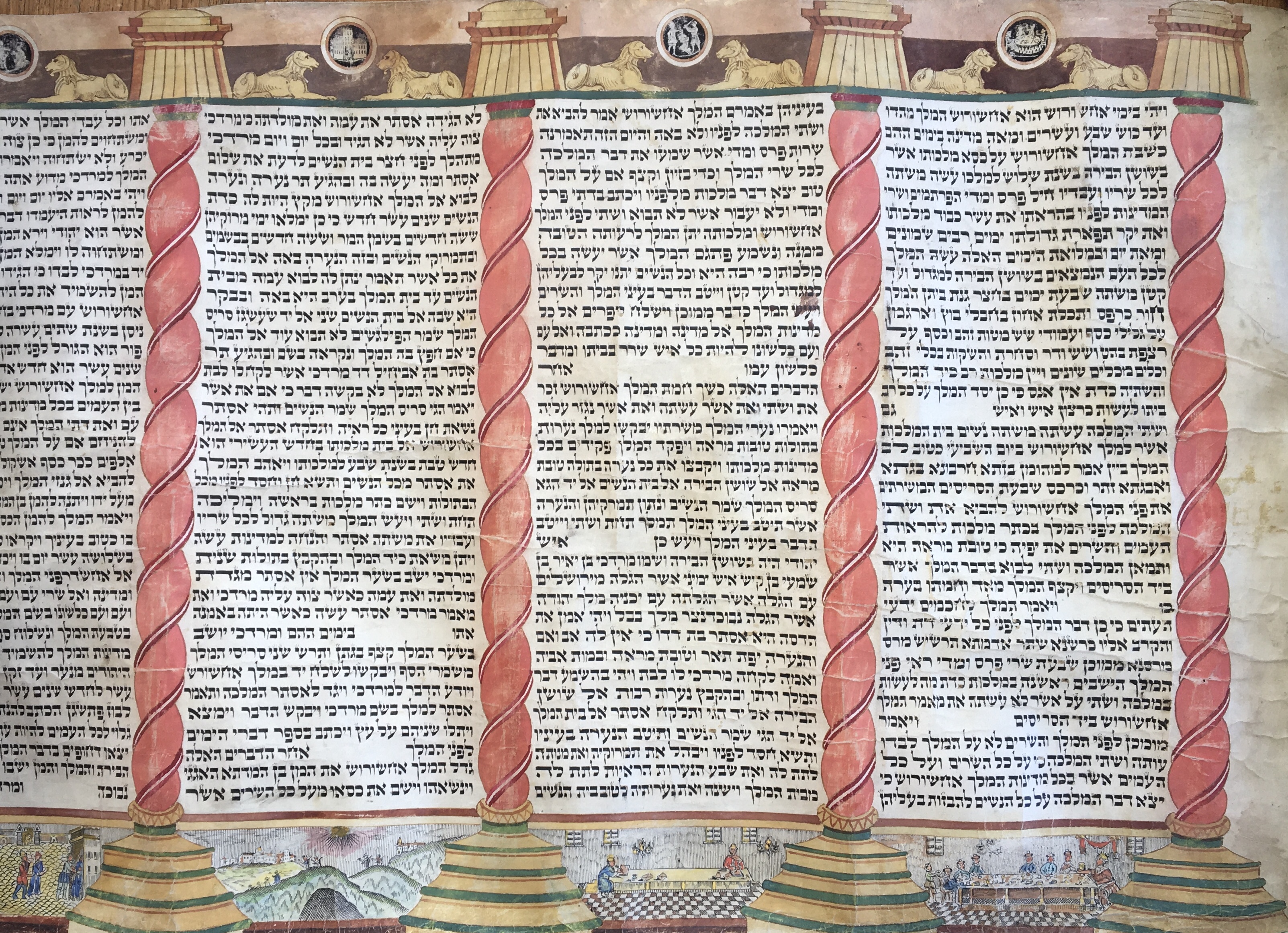 A handwritten Esther Scroll (Megillah) on calf parchment, originating from Europe. The scroll is estimated to be 200-250 years old.