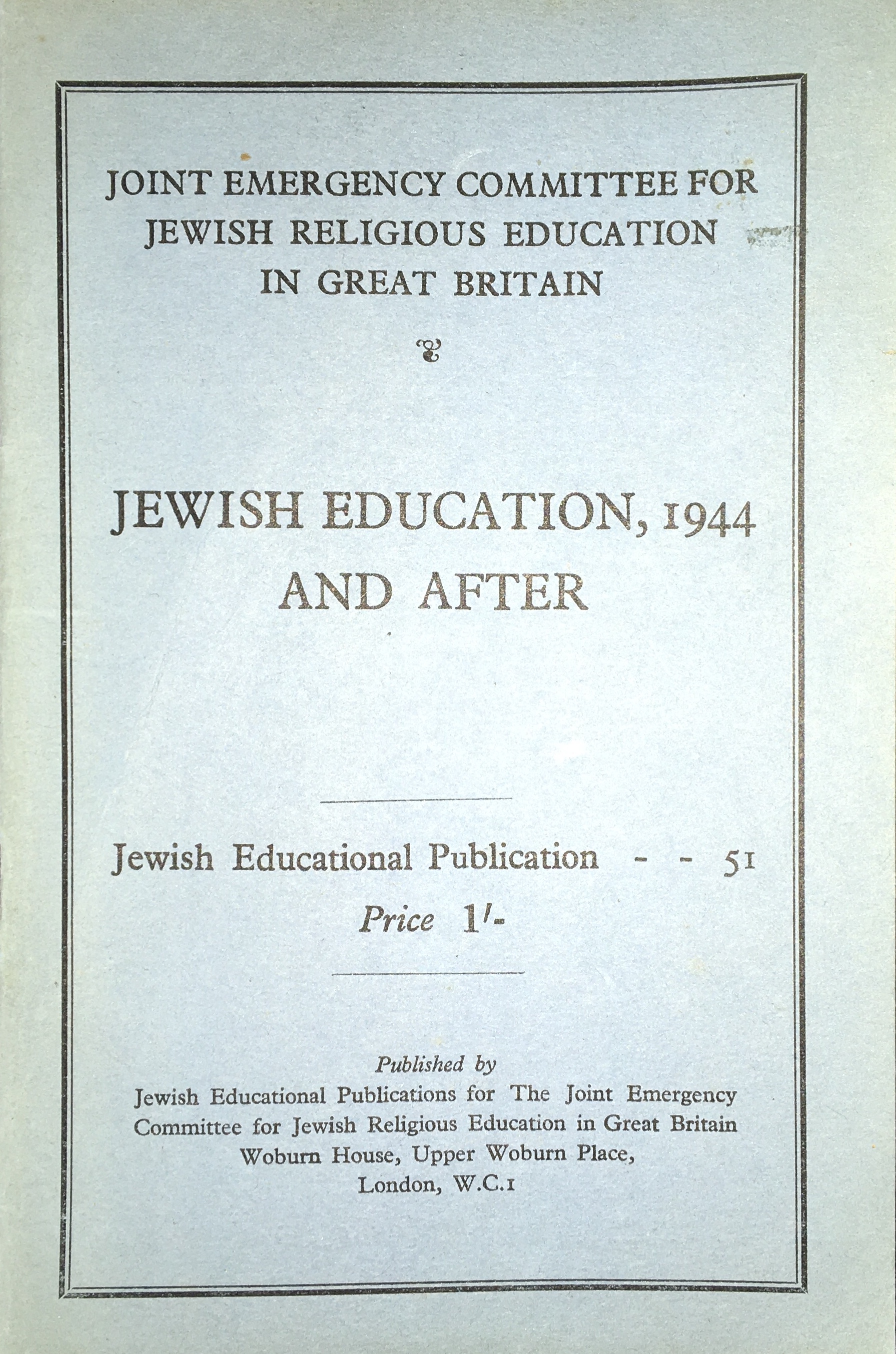 Item associated with the Joint Emergency Committee for Jewish Religious Education in Great Britain, dated 1944.