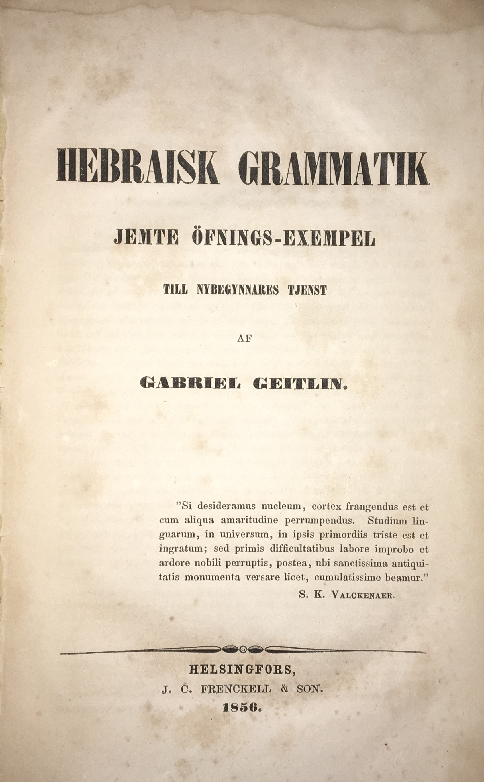A dissertation titled ‘Kort framställning af underbindungar på artererna i deras continuitet’ by Leonhard Engström, published in 1848. The title translates to ‘Short presentation of ligatures on the arteries in their continuity.’ The item is presented in an interim brochure binding.