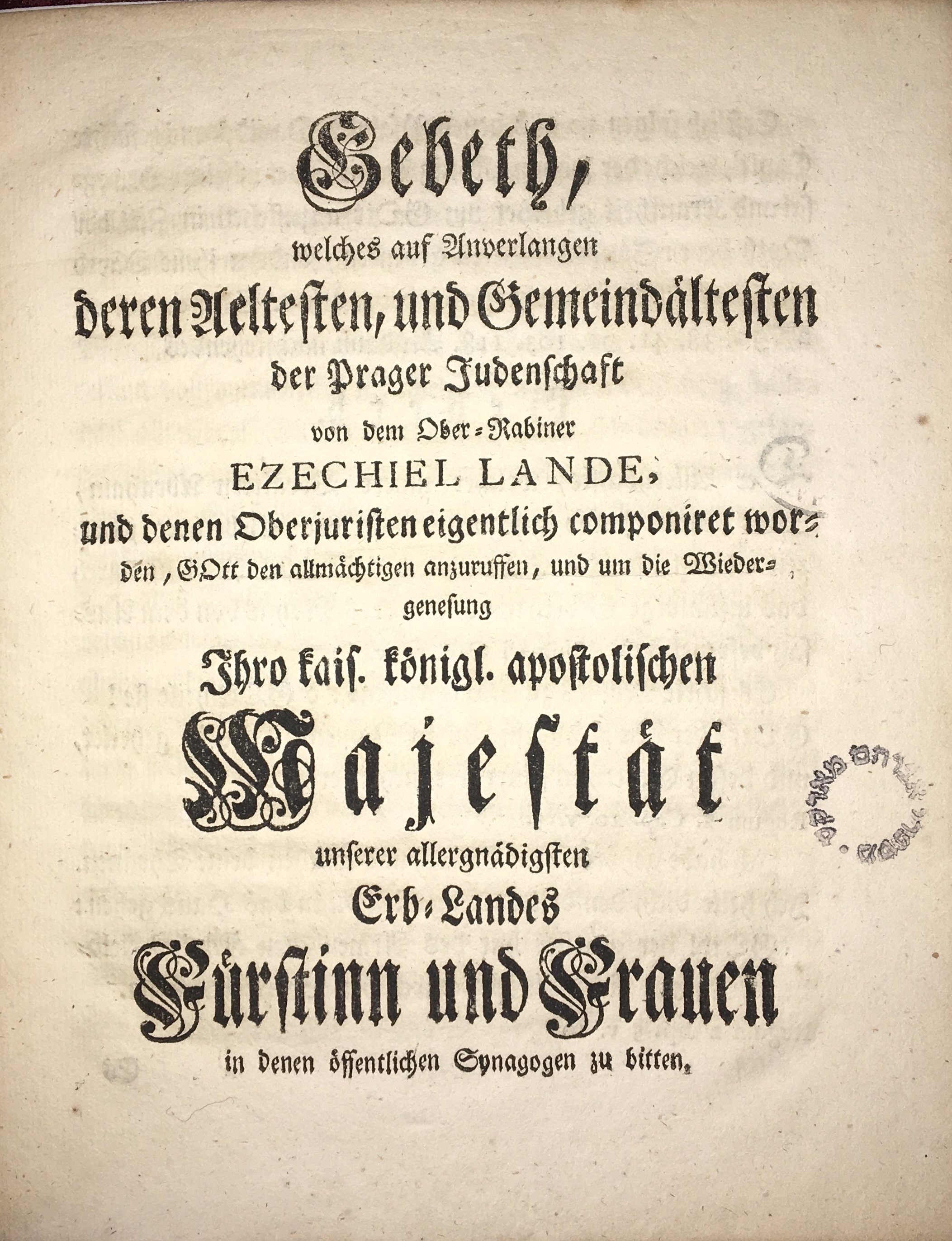 Judaica item, Gebeth, associated with R. Ezekiel Landau, from Prague, dated 1767.