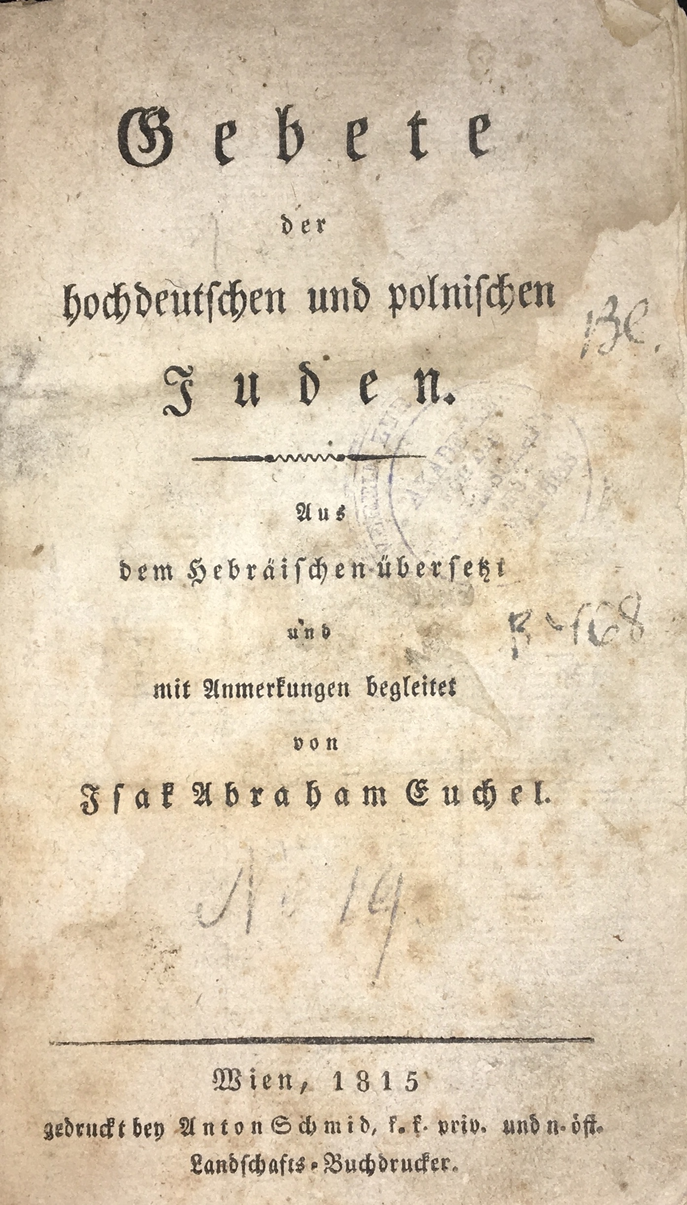 This lot presents a historical publication titled ‘Gebete der hochdeutschen und polnischen Juden. Aus dem Hebräischen übersetzt und mit Anmerkungen versehen.’ The work is by Isaac Abraham Euchel and was published in 1815. The text consists of prayers for High German and Polish Jews, translated from Hebrew and includes annotations.