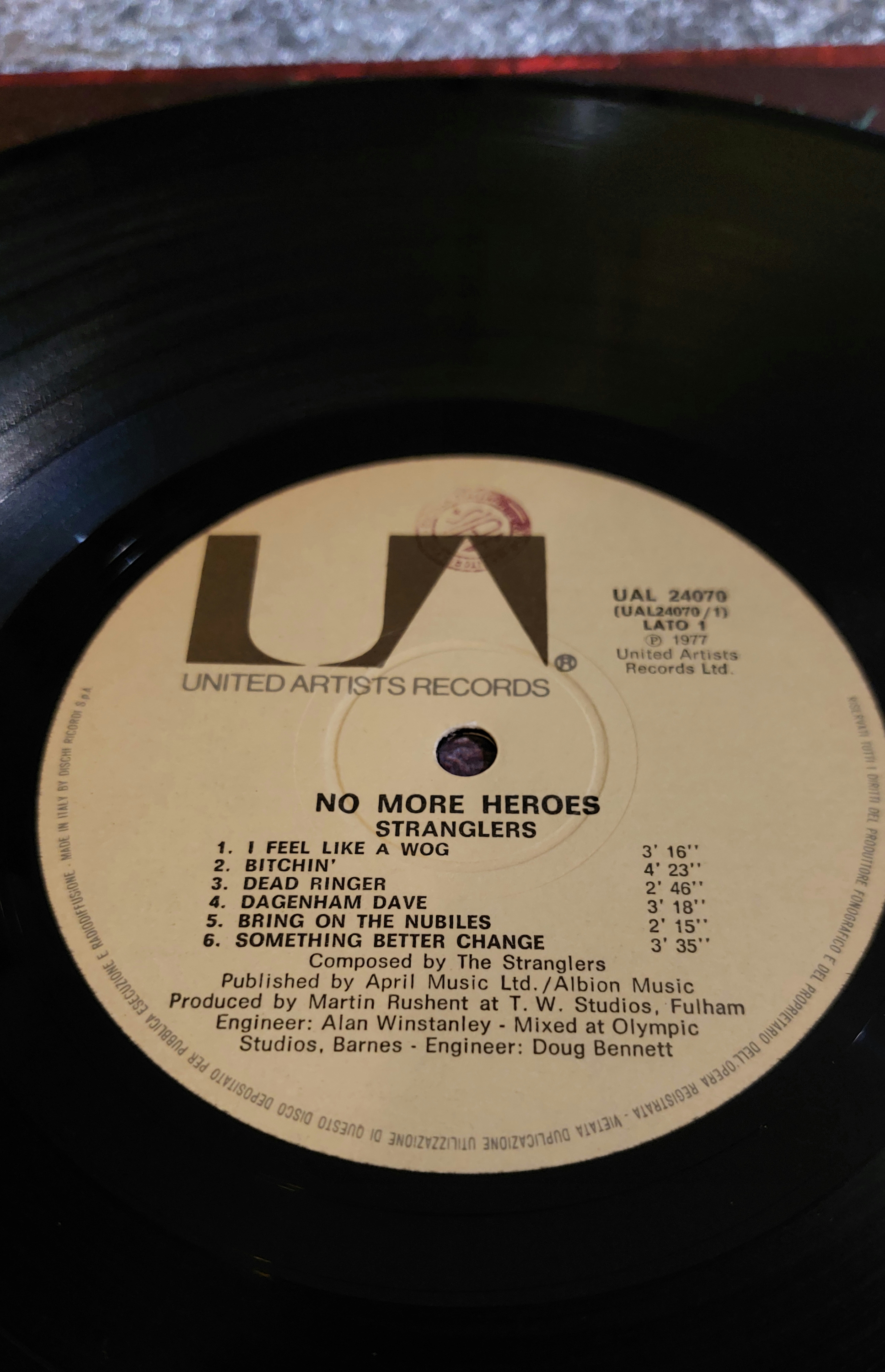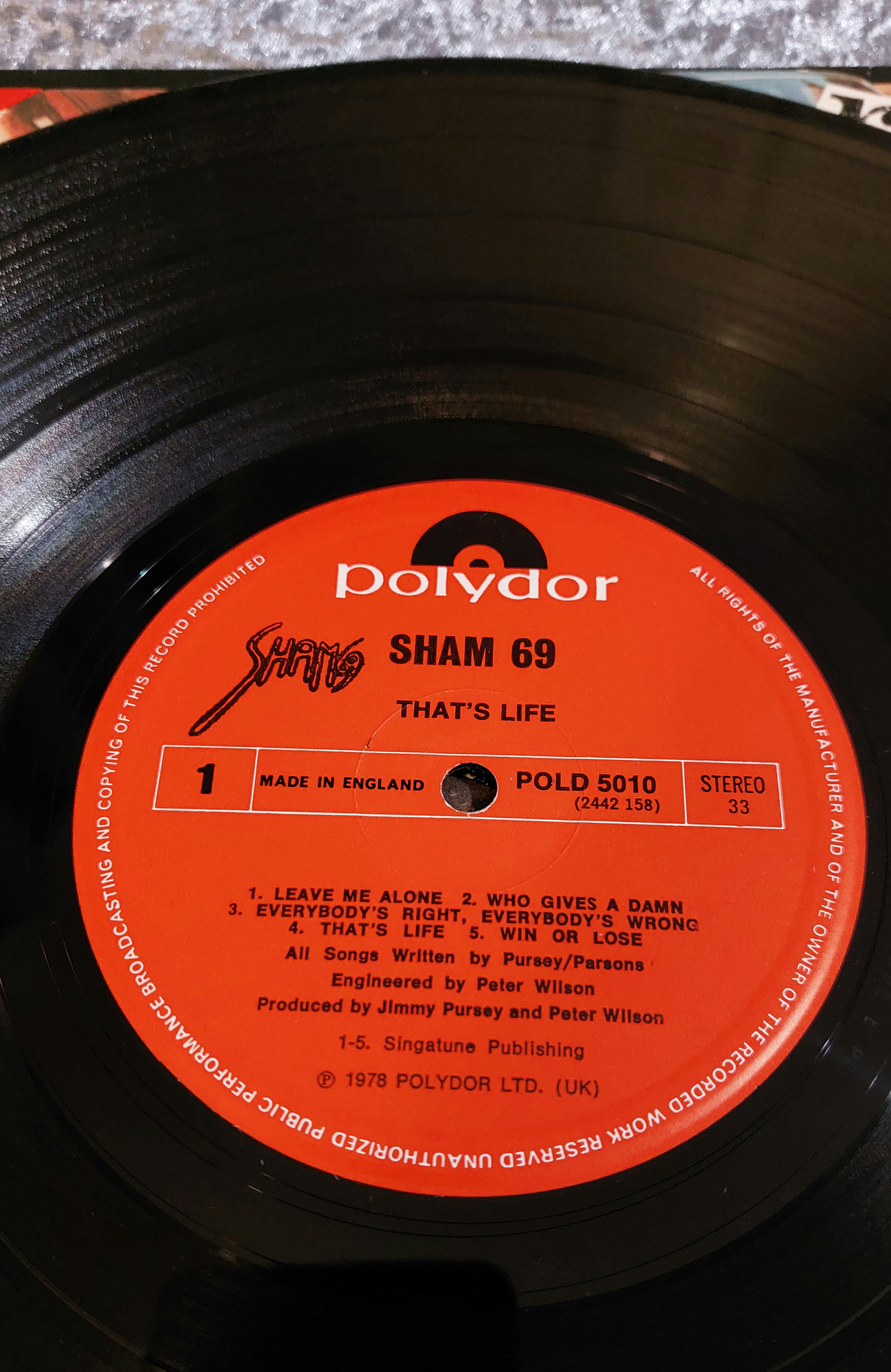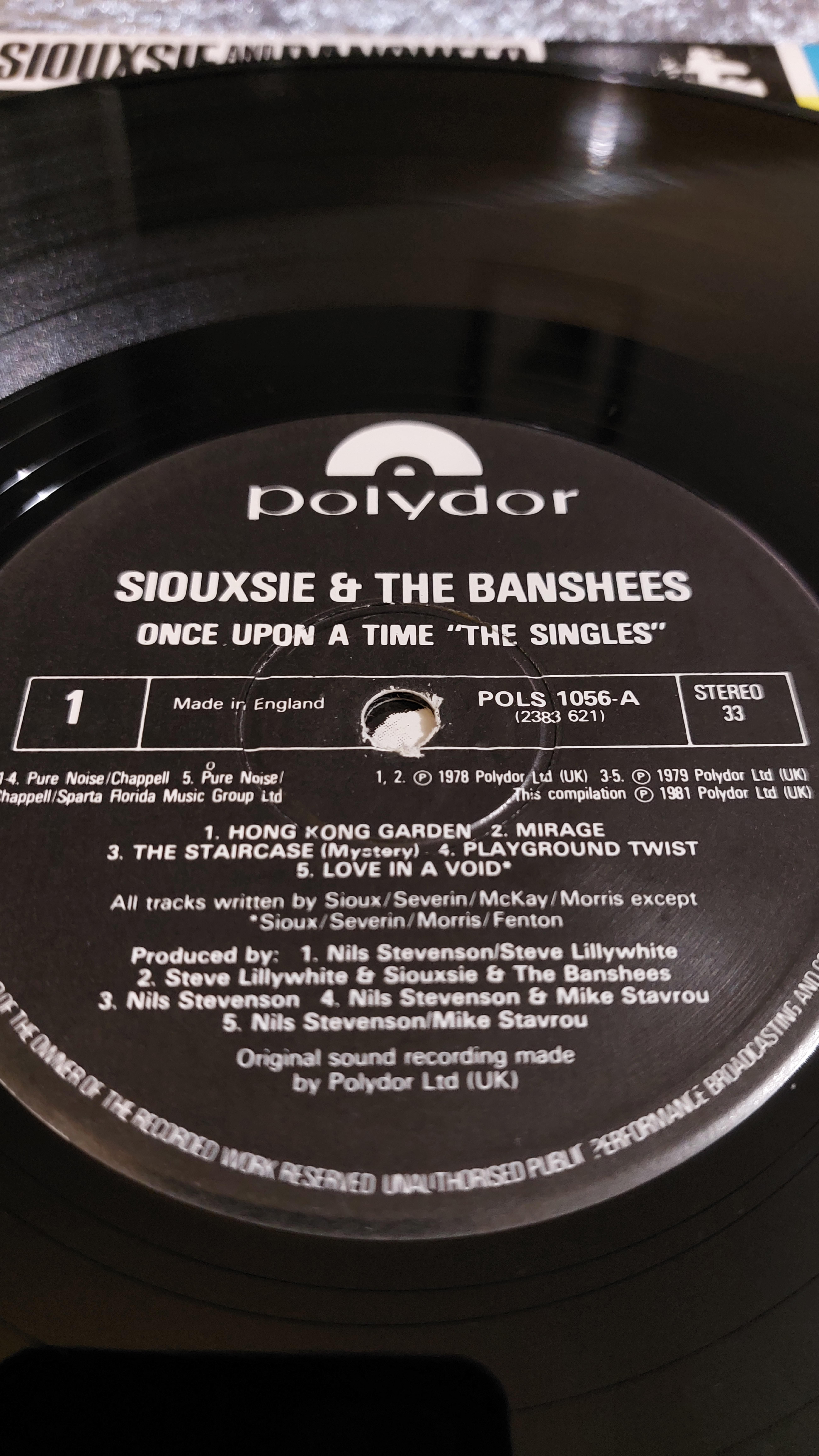 This lot comprises four vinyl records, including three 12-inch LPs and one 7-inch single. The LPs feature albums by Siouxsie and the Banshees (“Once Upon a Time/The Singles”), Sham 69 (“That’s Life”), The Stranglers (“No More Heroes”), and Malcolm McLaren (“Duck Rock”). The records are housed in their original sleeves, which display a variety of artwork, including photographic and graphic designs. Labels indicate track listings, production details, and copyright information. The records show varying degrees of wear commensurate with age and use. Dates visible on the labels span from 1978 to 1983.