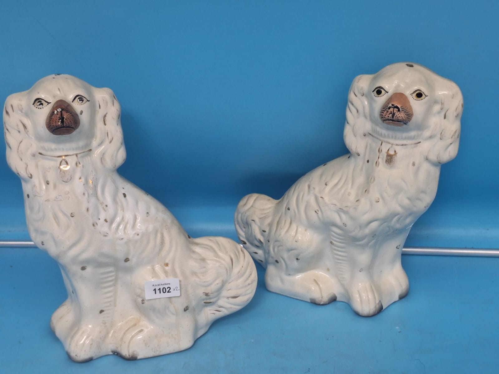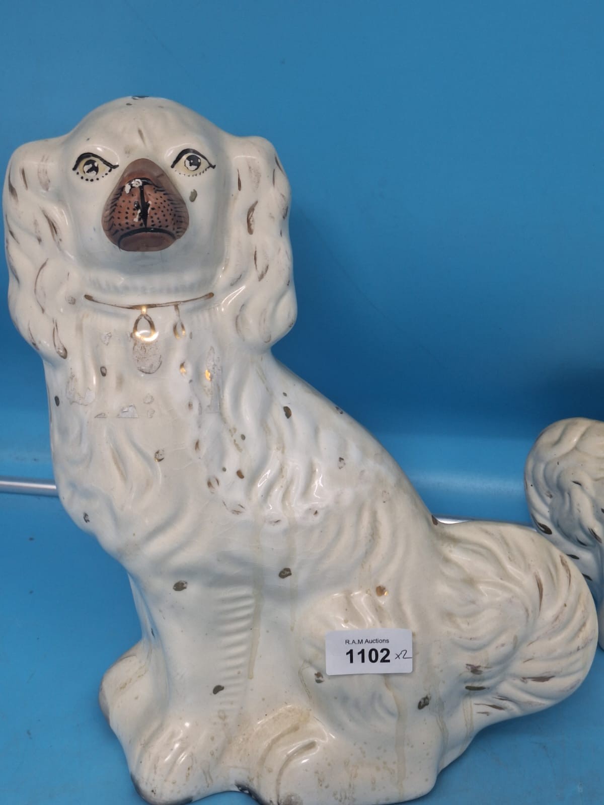 Pair of sitting spaniel figurines with flowing ears, brown detailing, and gold speckles.