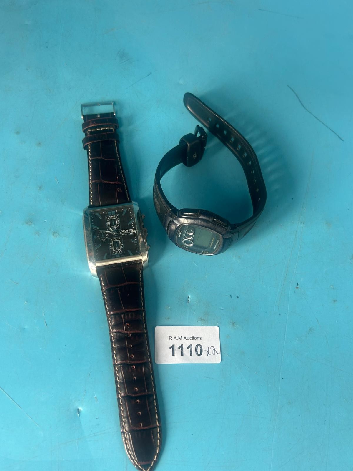 Silver-toned Lorus wristwatch with a leather band and a digital wristwatch.