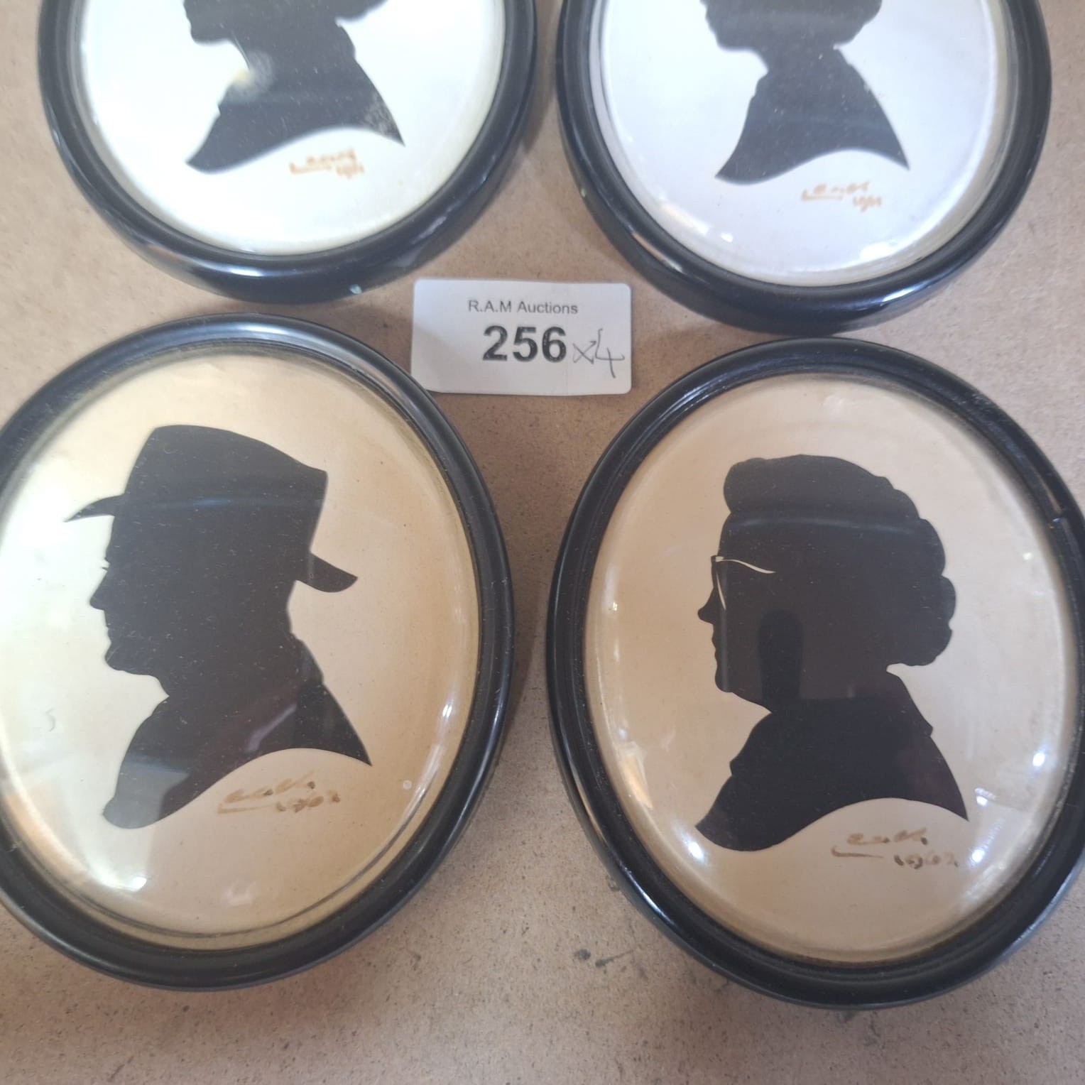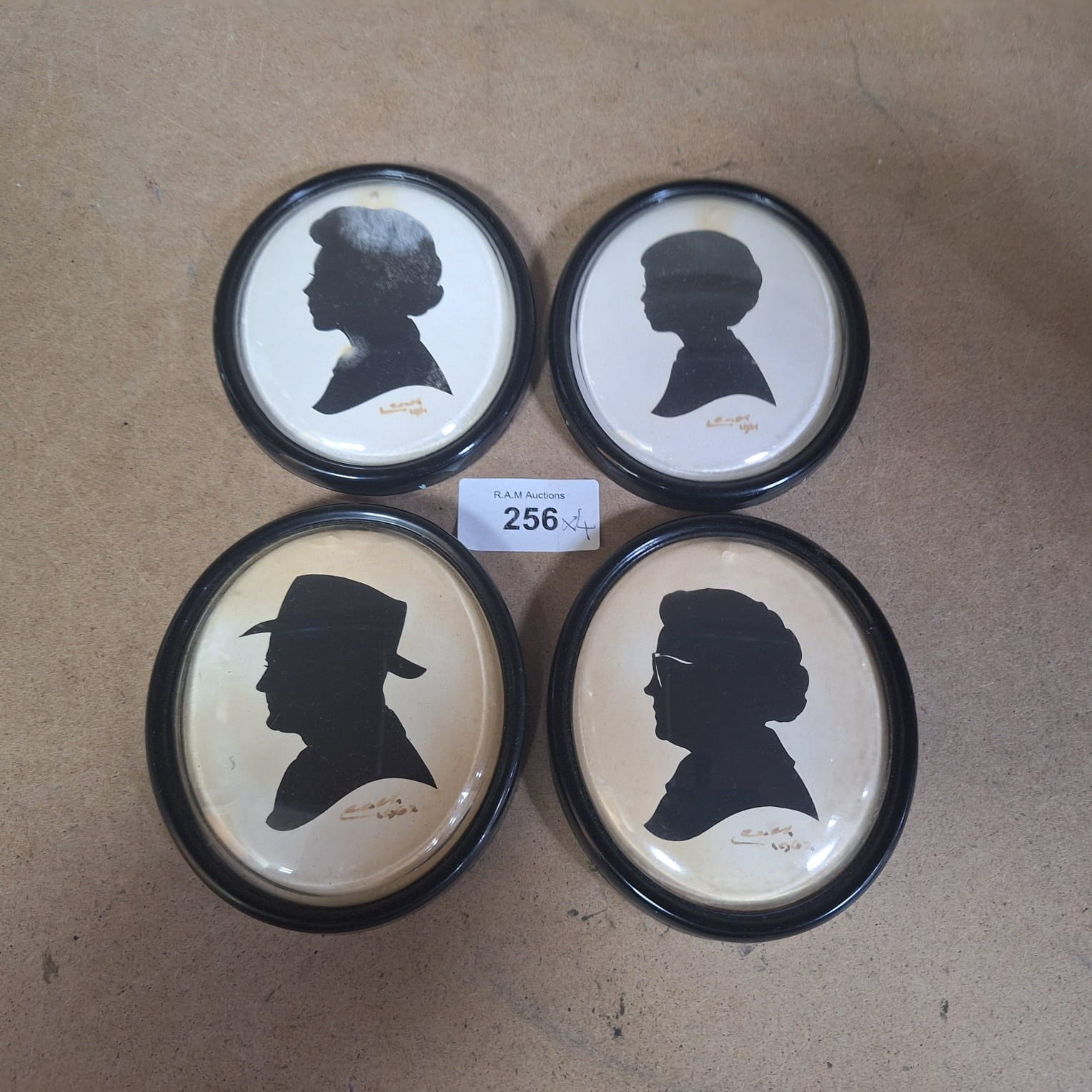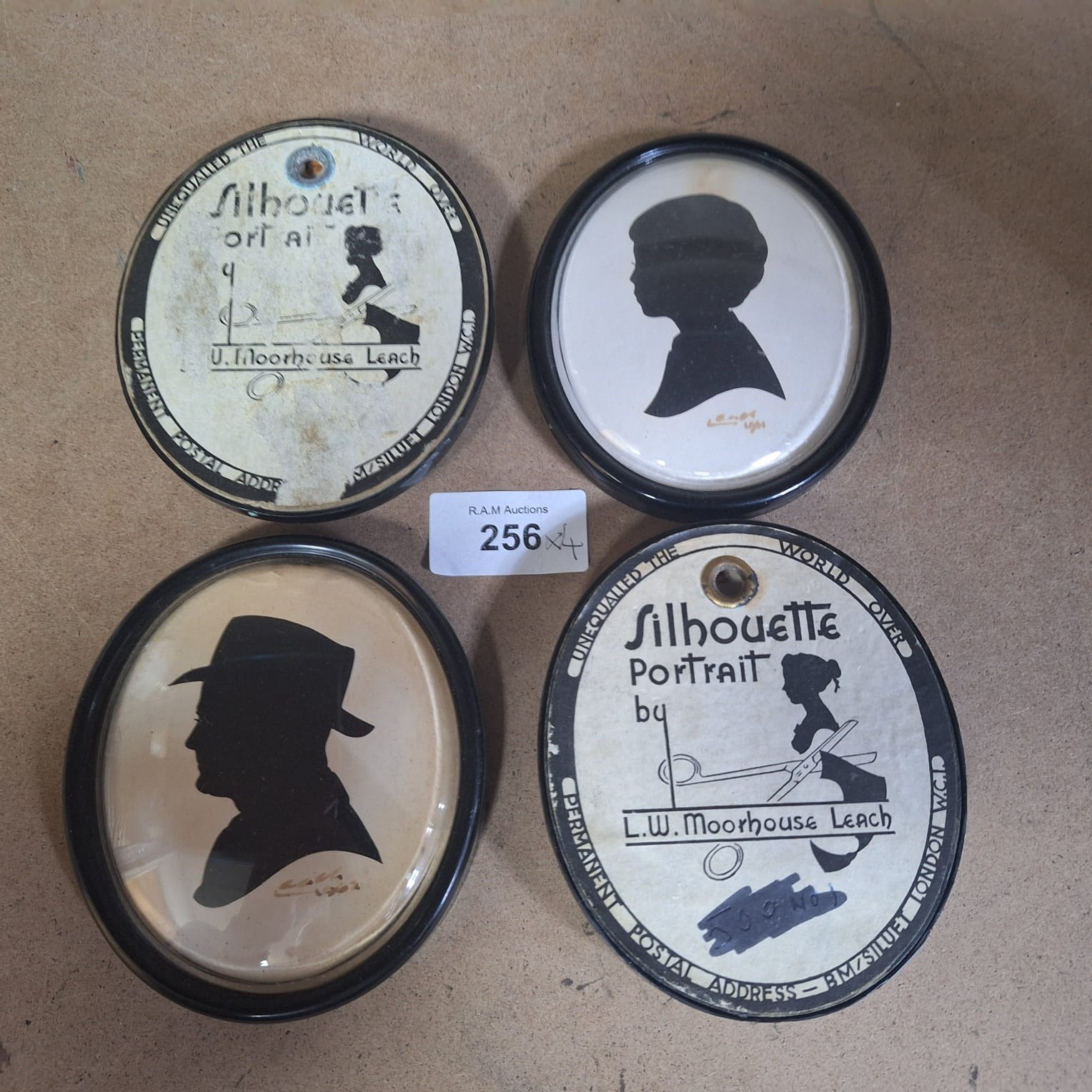 Oval silhouette portraits in black frames with cursive signature “L.W. Moorhouse Leach 1981”.