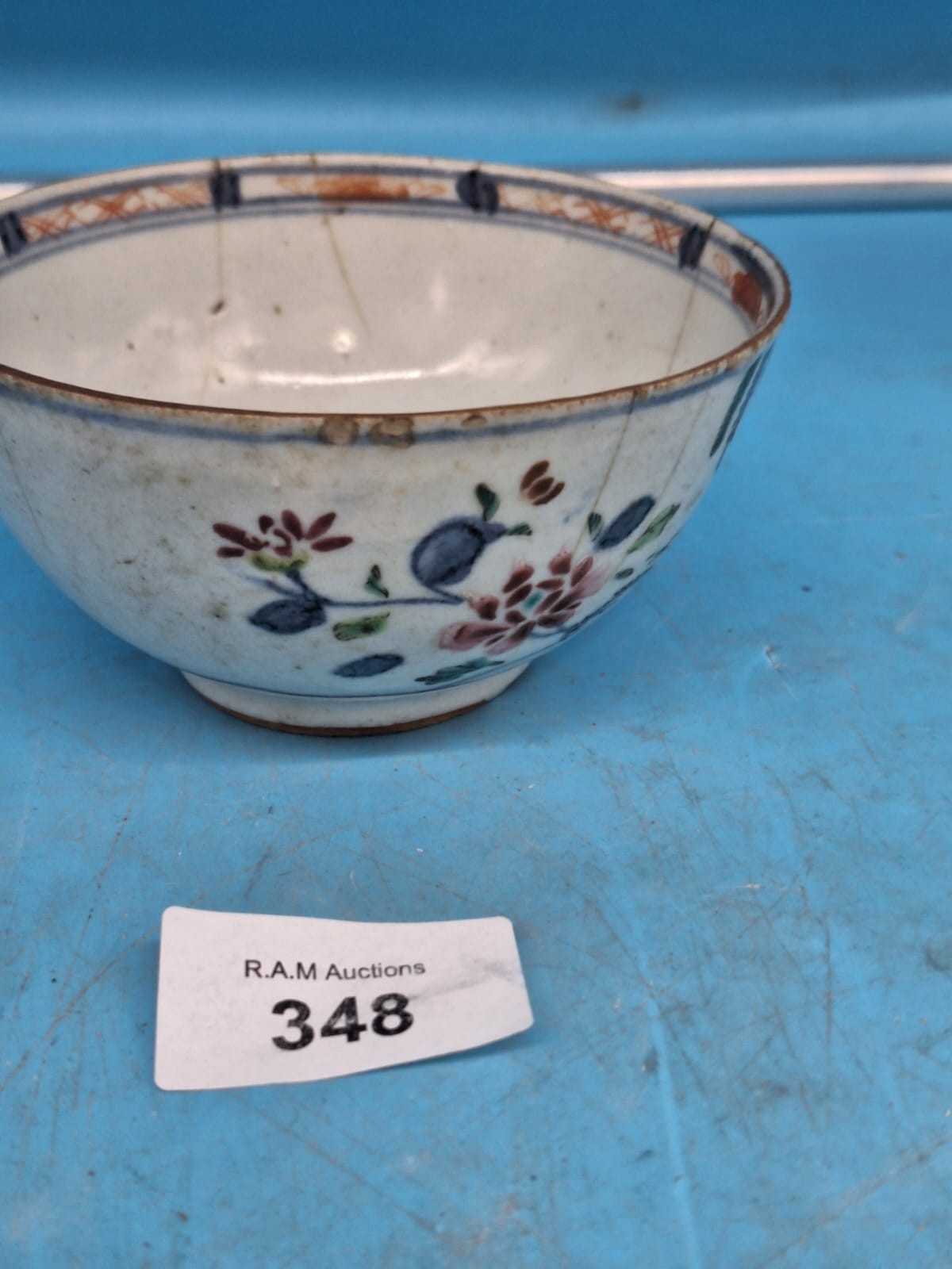 Small porcelain bowl with a painted floral design and a decorative rim.