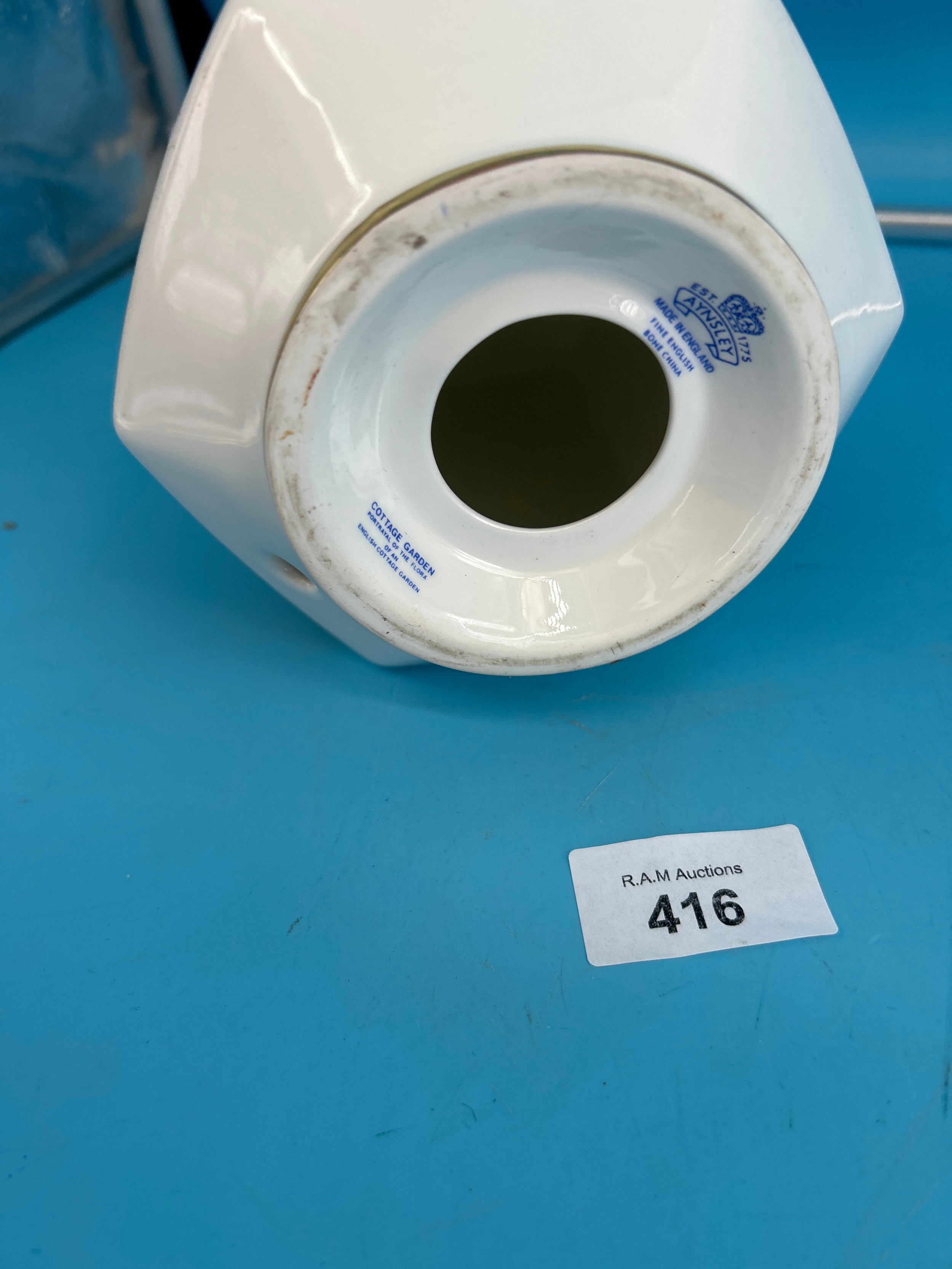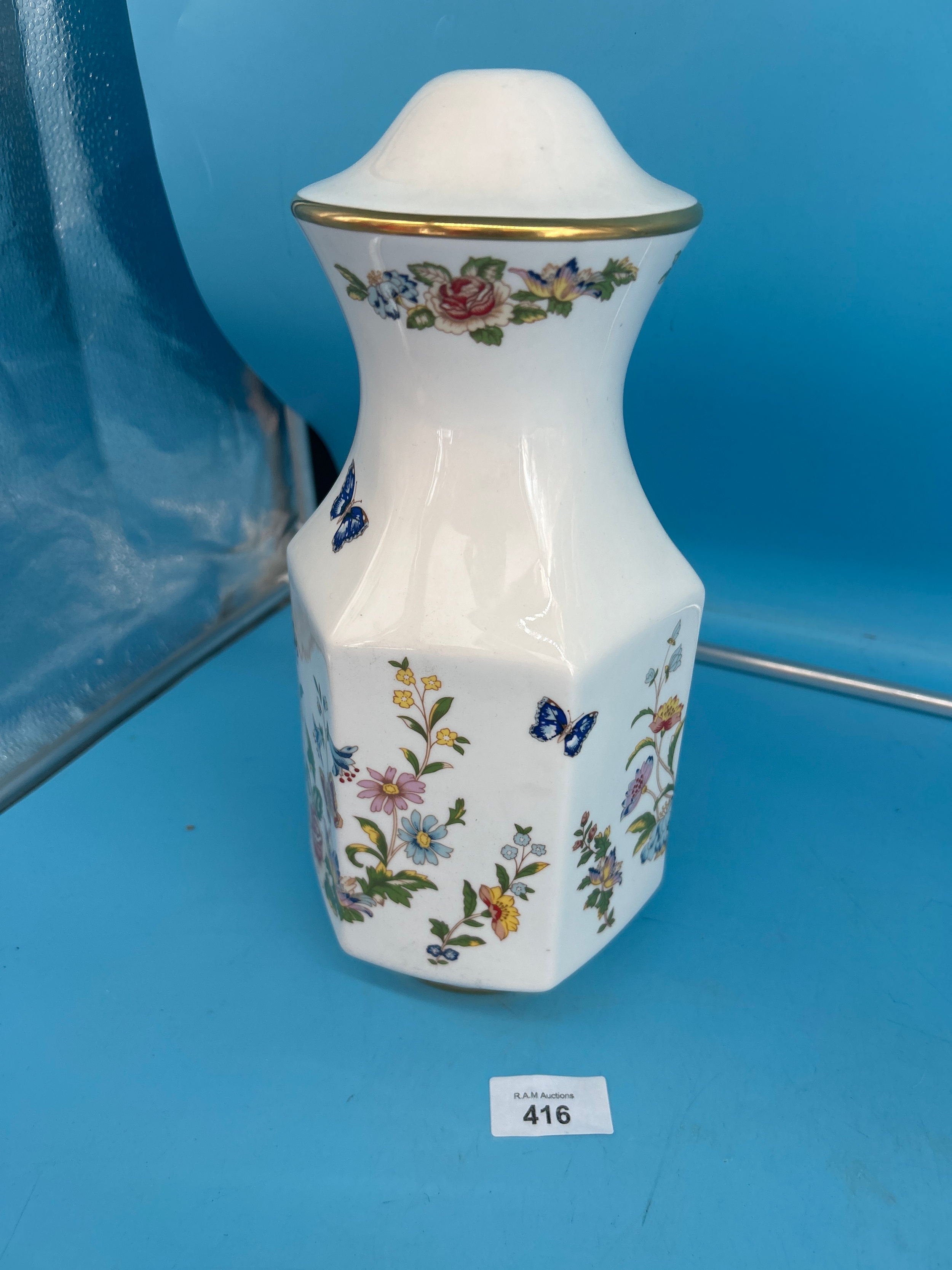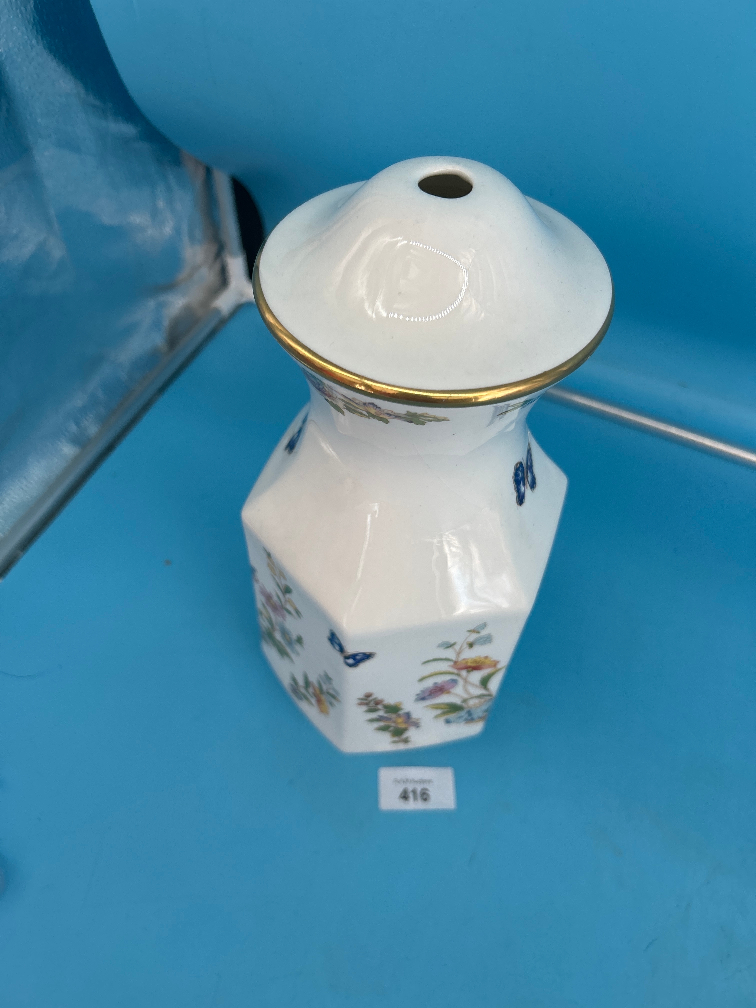 Octagonal porcelain vase with lid, floral pattern, and butterflies.