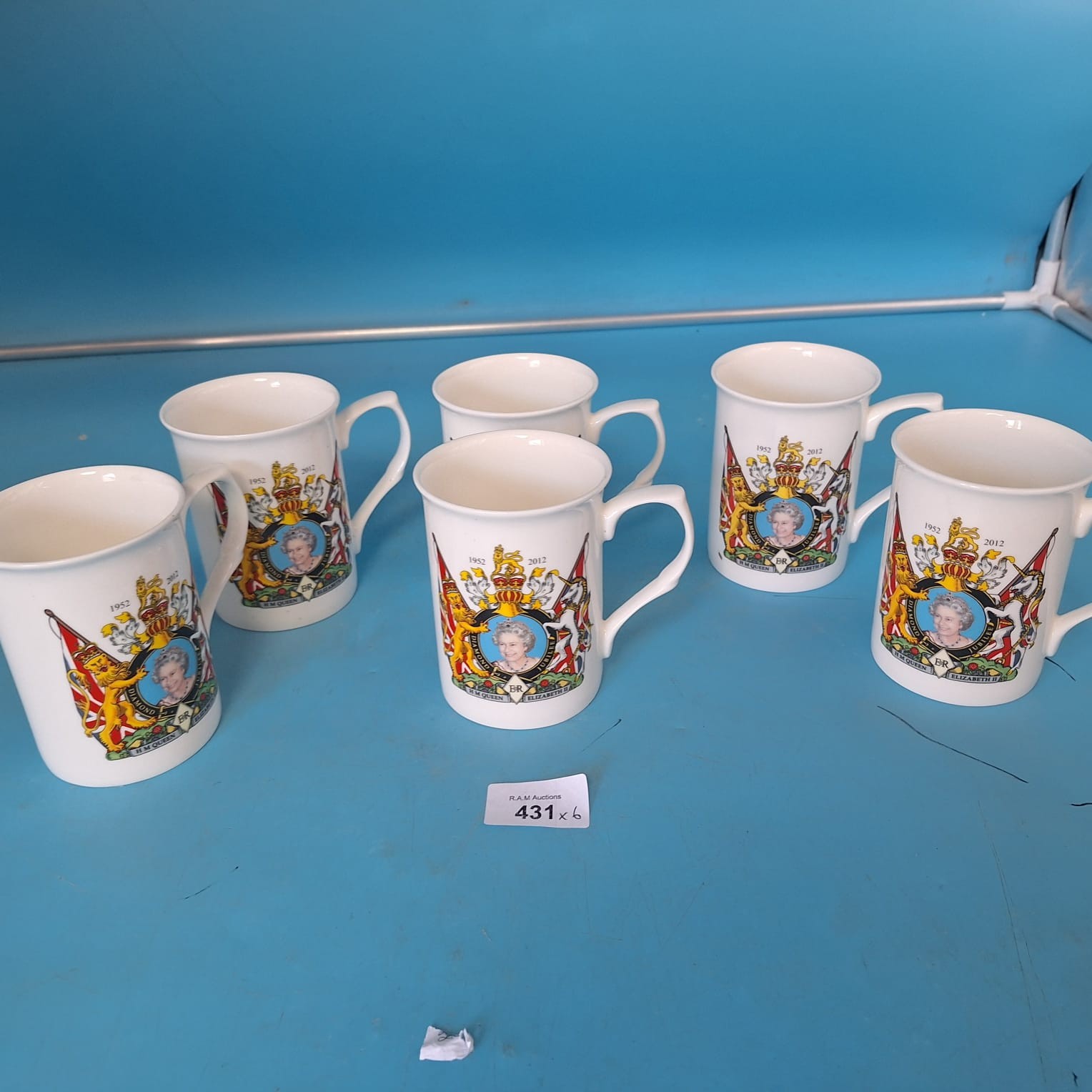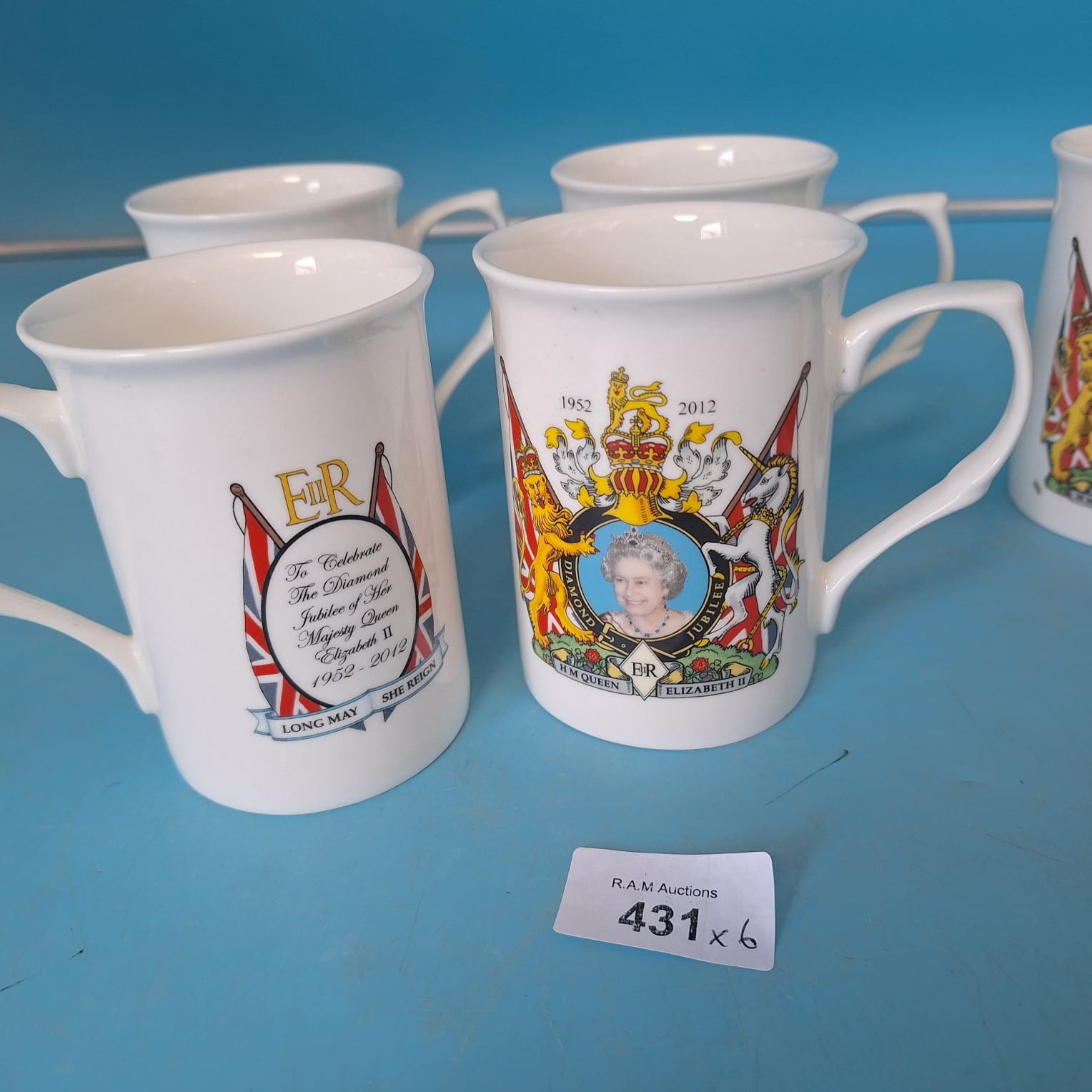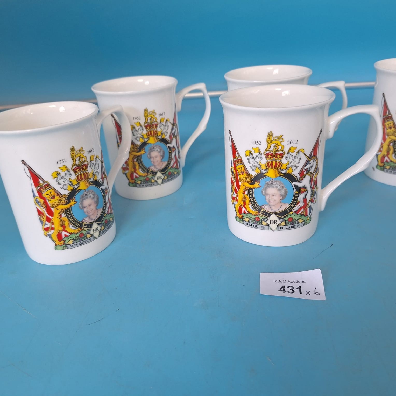 Ceramic mug commemorating Queen Elizabeth II’s Diamond Jubilee with royal imagery and text.