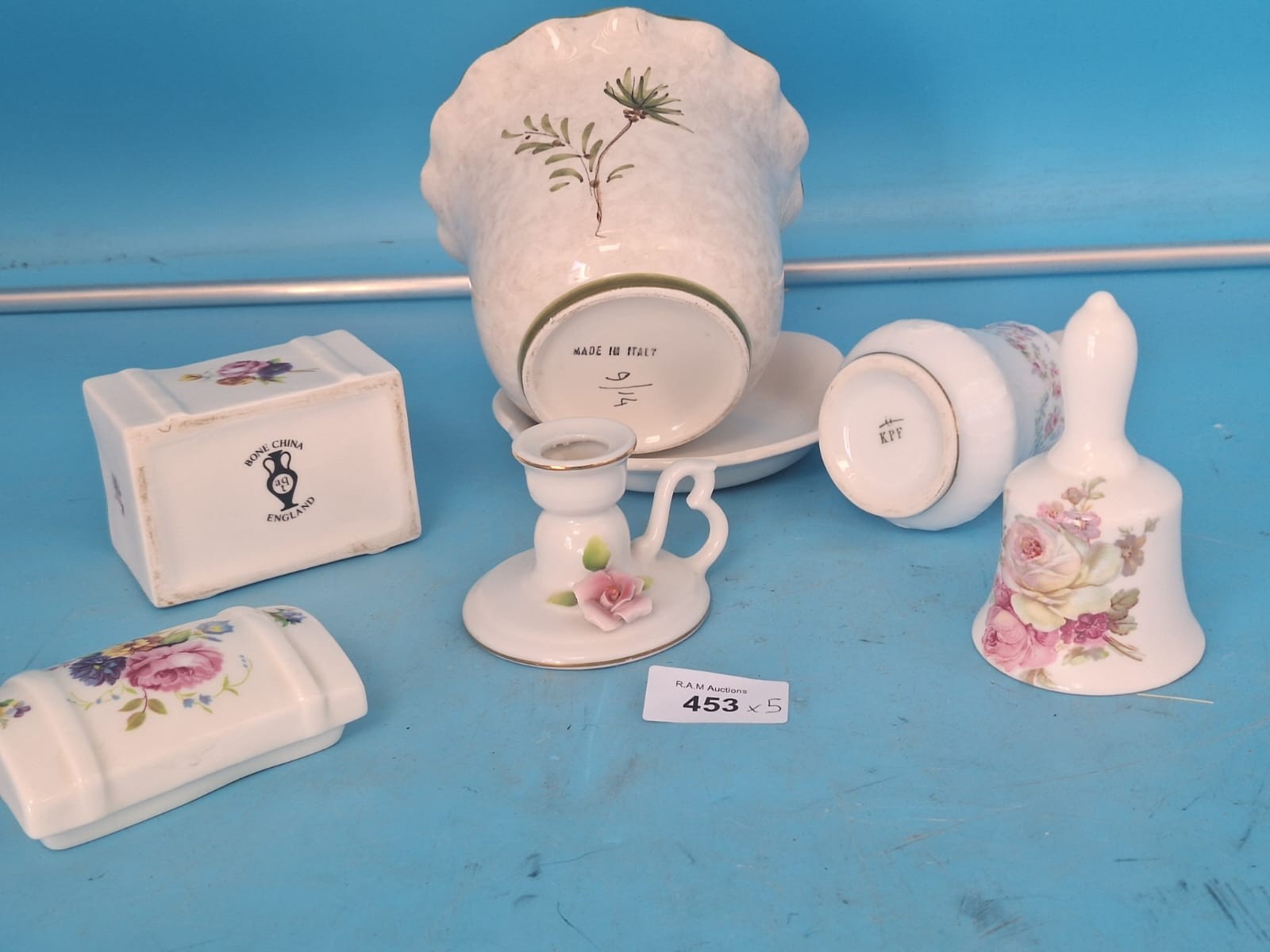Collection of porcelain items featuring hand-painted floral and nature designs.