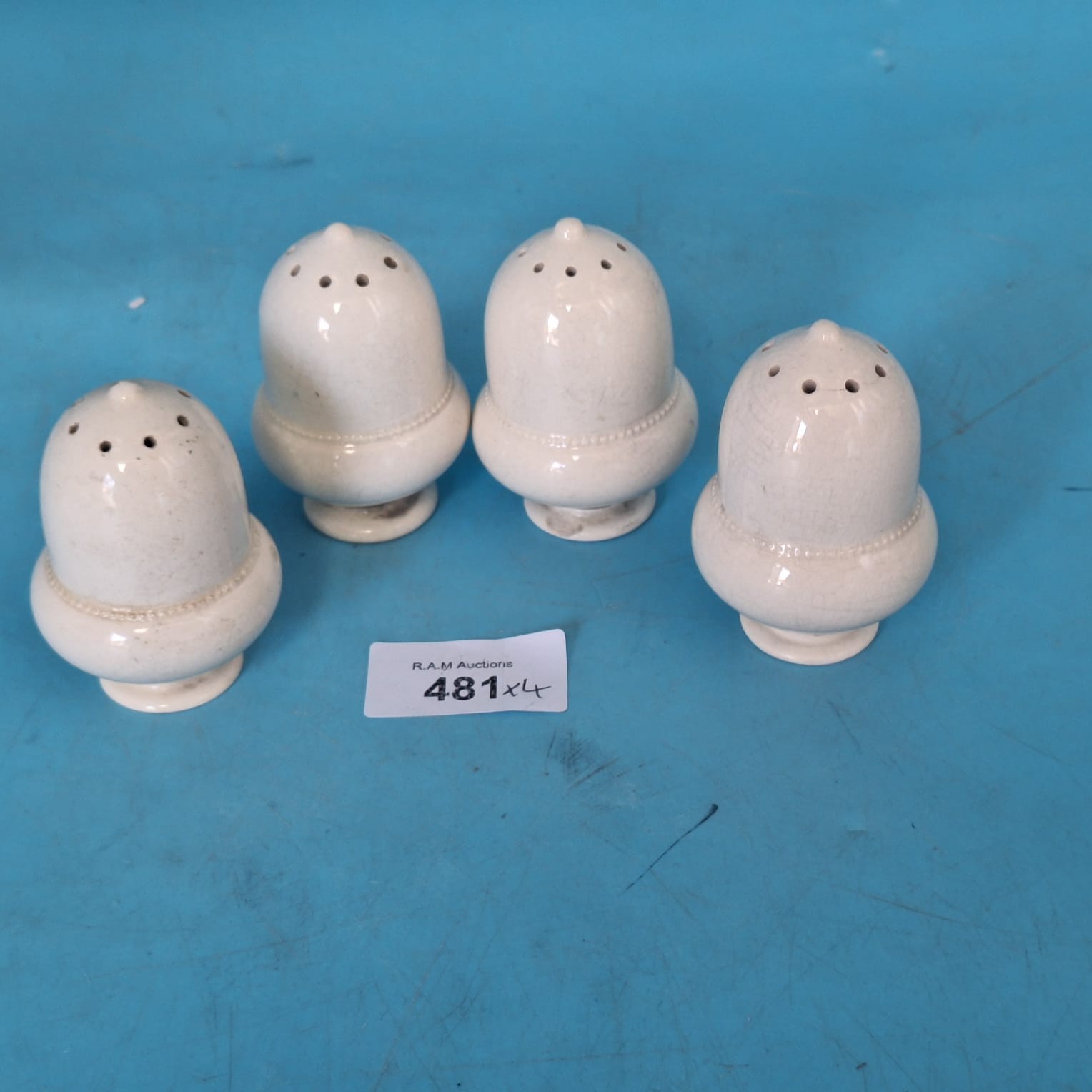 Off-white ceramic acorn-shaped salt shaker with a domed top and small holes.