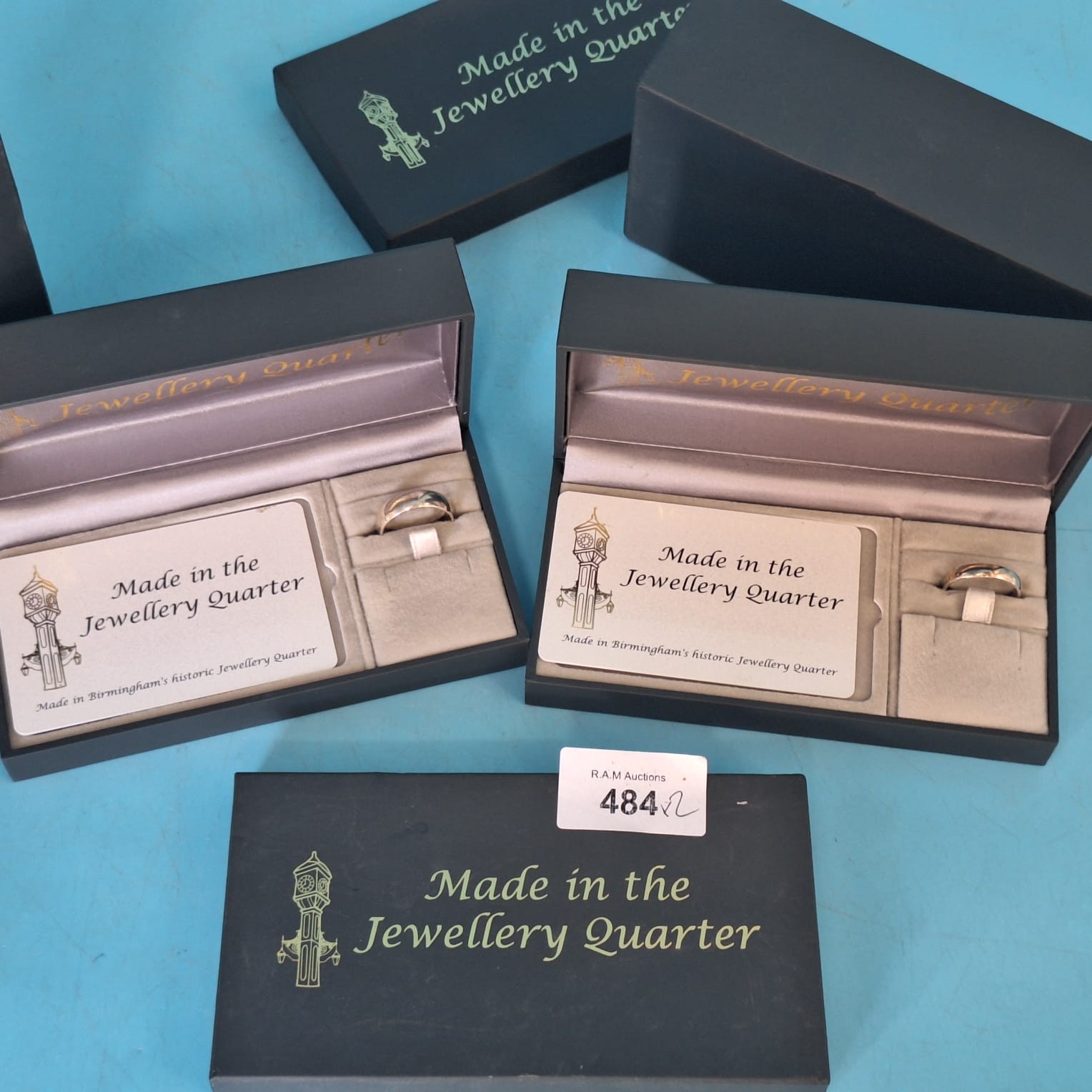 Gold-toned rings in branded boxes from Birmingham’s Jewellery Quarter.