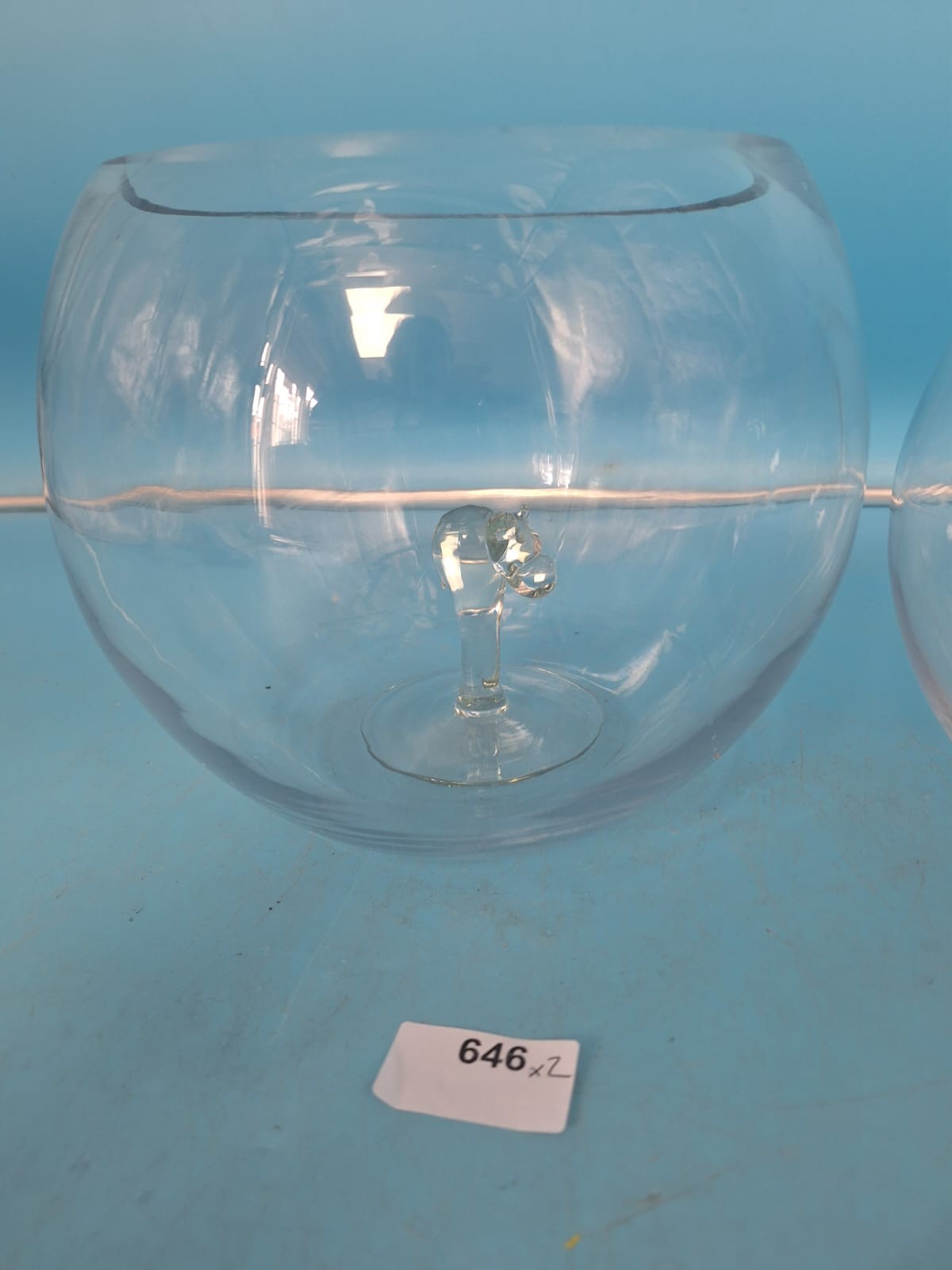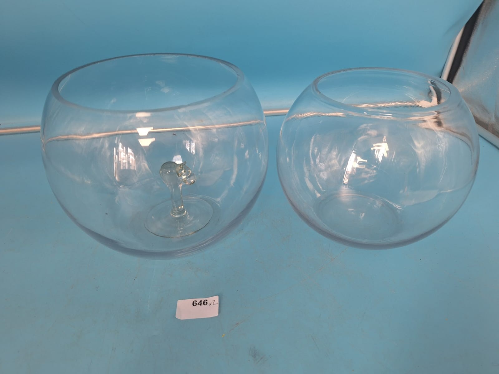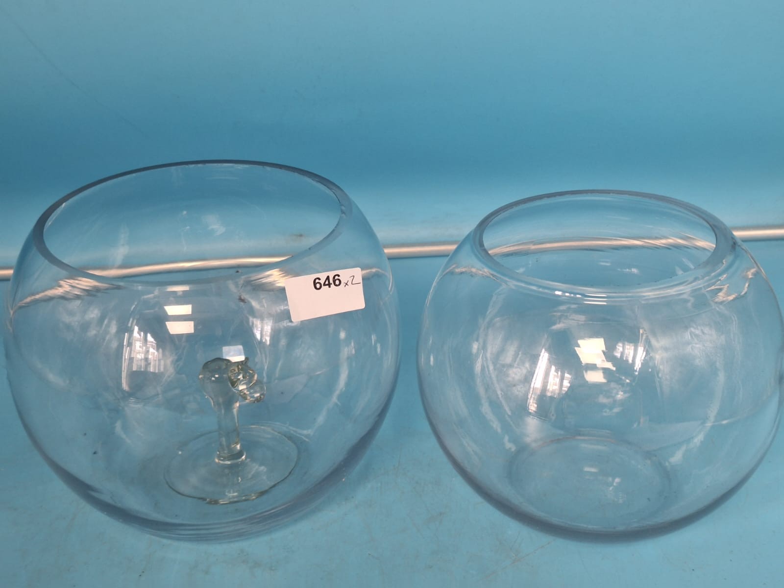 Spherical glass bowl with a pedestal base.