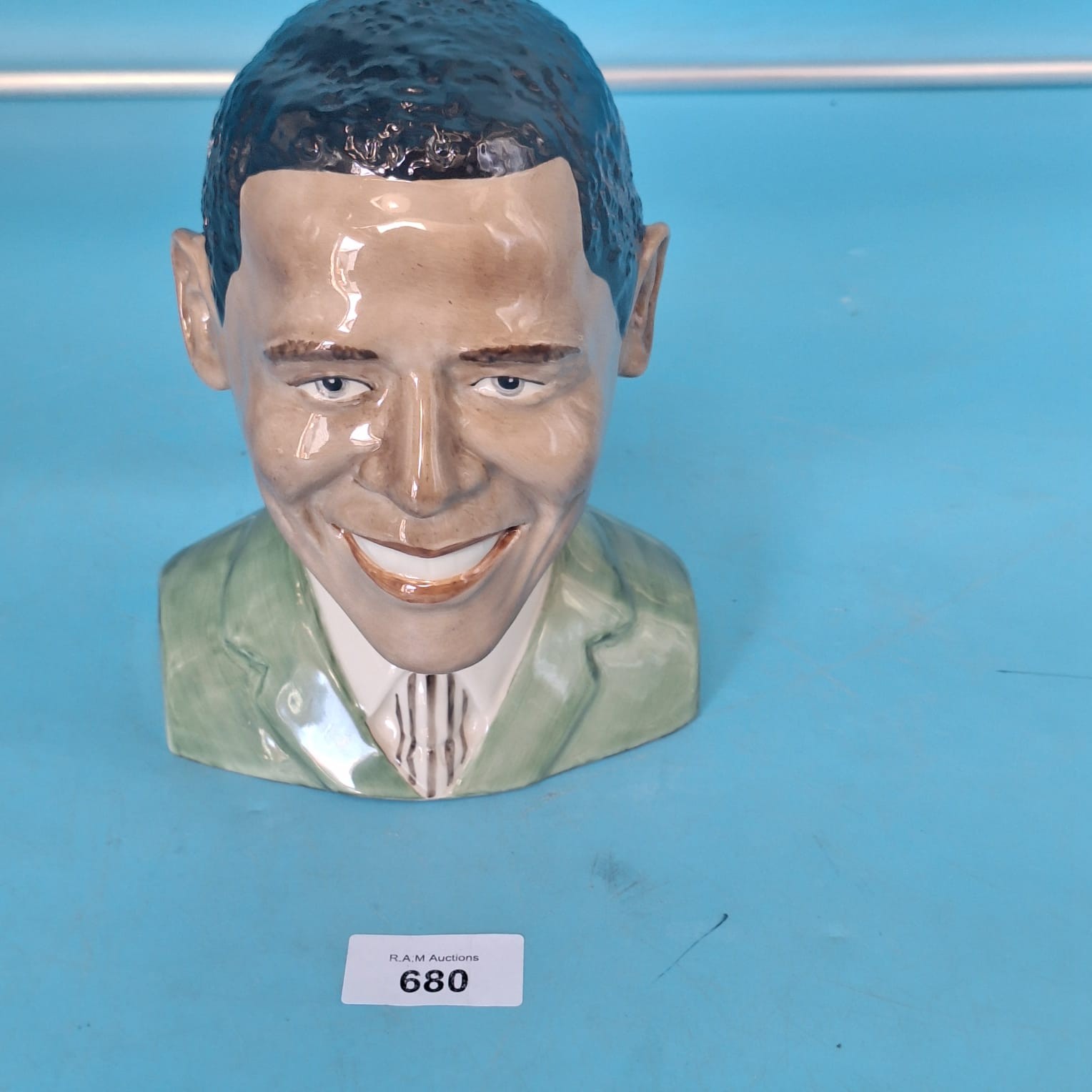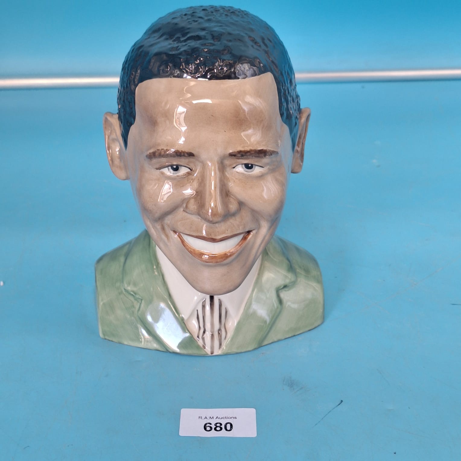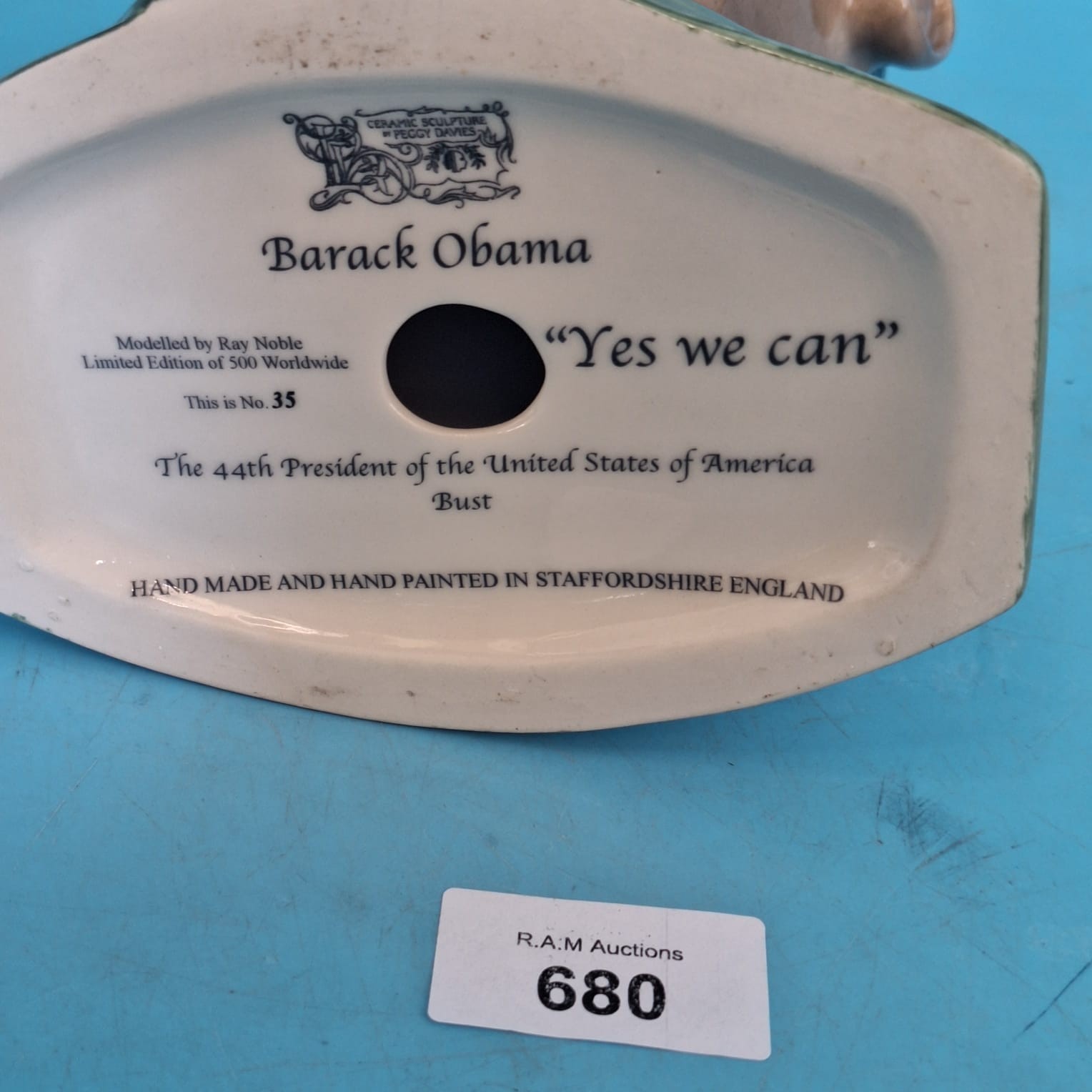Hand-made and hand-painted ceramic bust of Barack Obama by Ray Noble, limited edition 35 of 500.