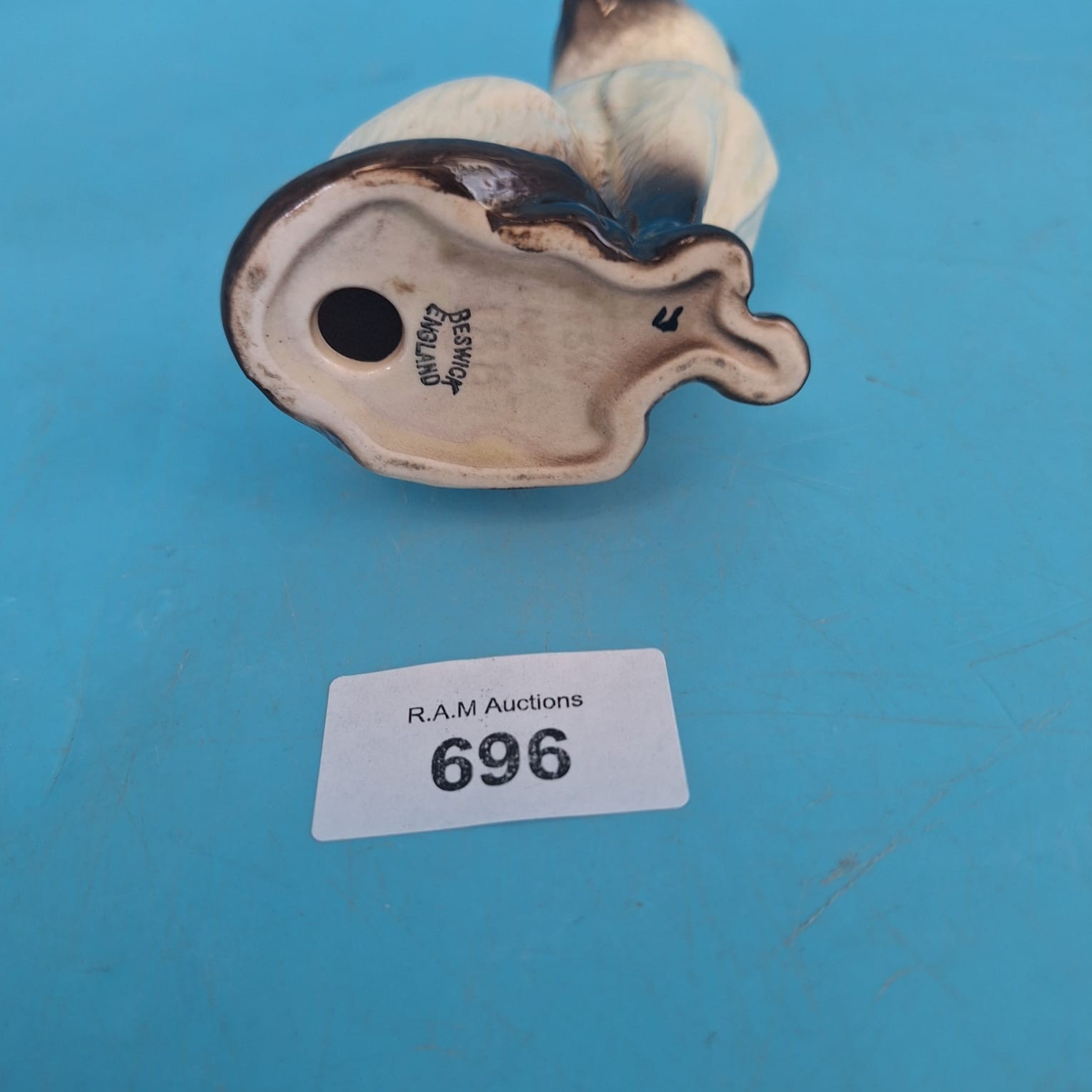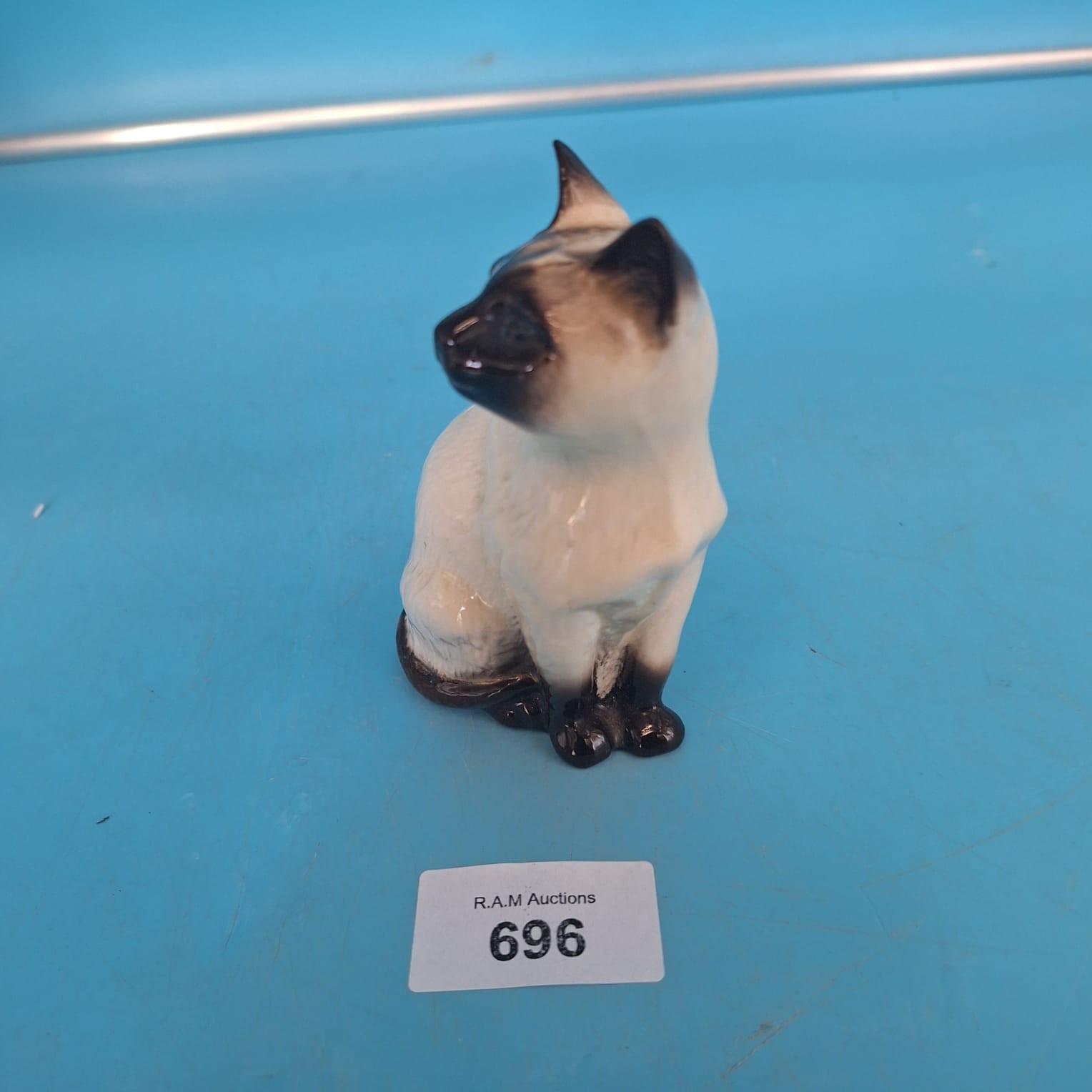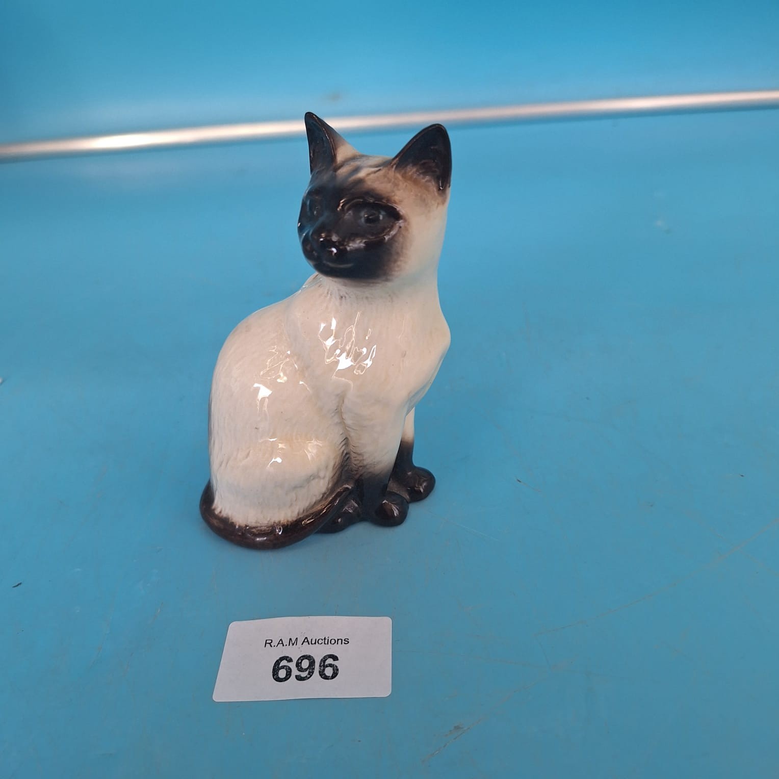 A small, seated Siamese cat figurine by Beswick, England, in creamy-white with dark brown markings.