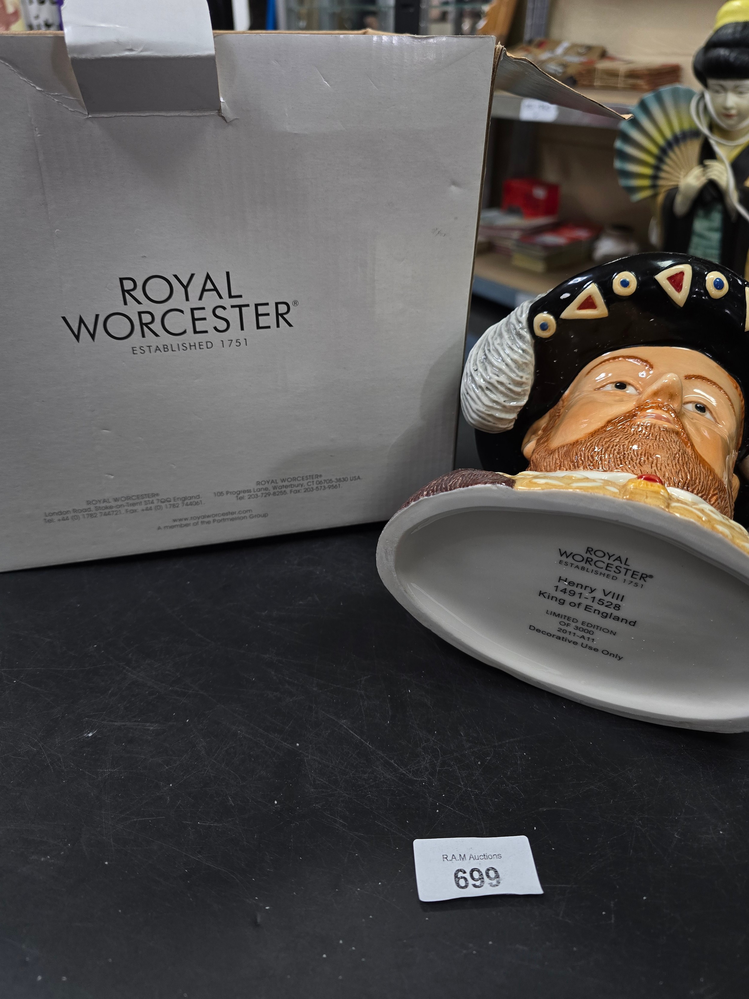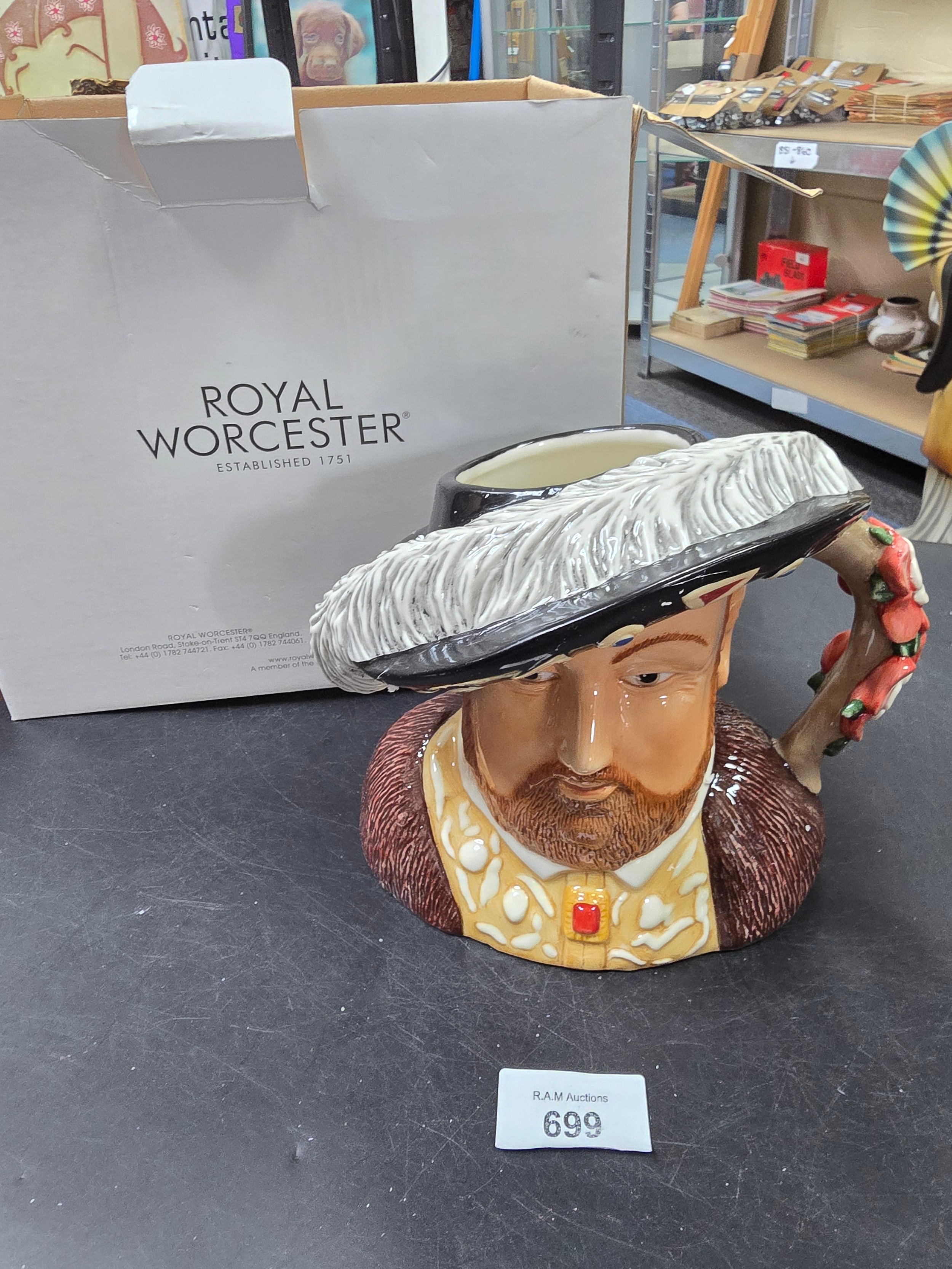 Royal Worcester ceramic mug depicting a bust of Henry VIII, designed by Sue Owen.