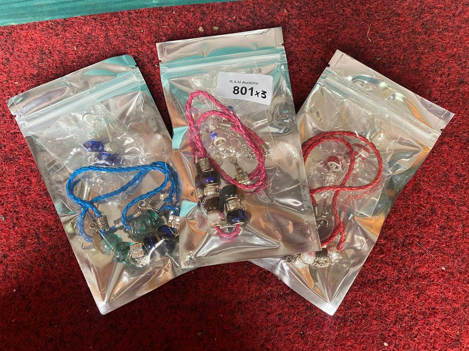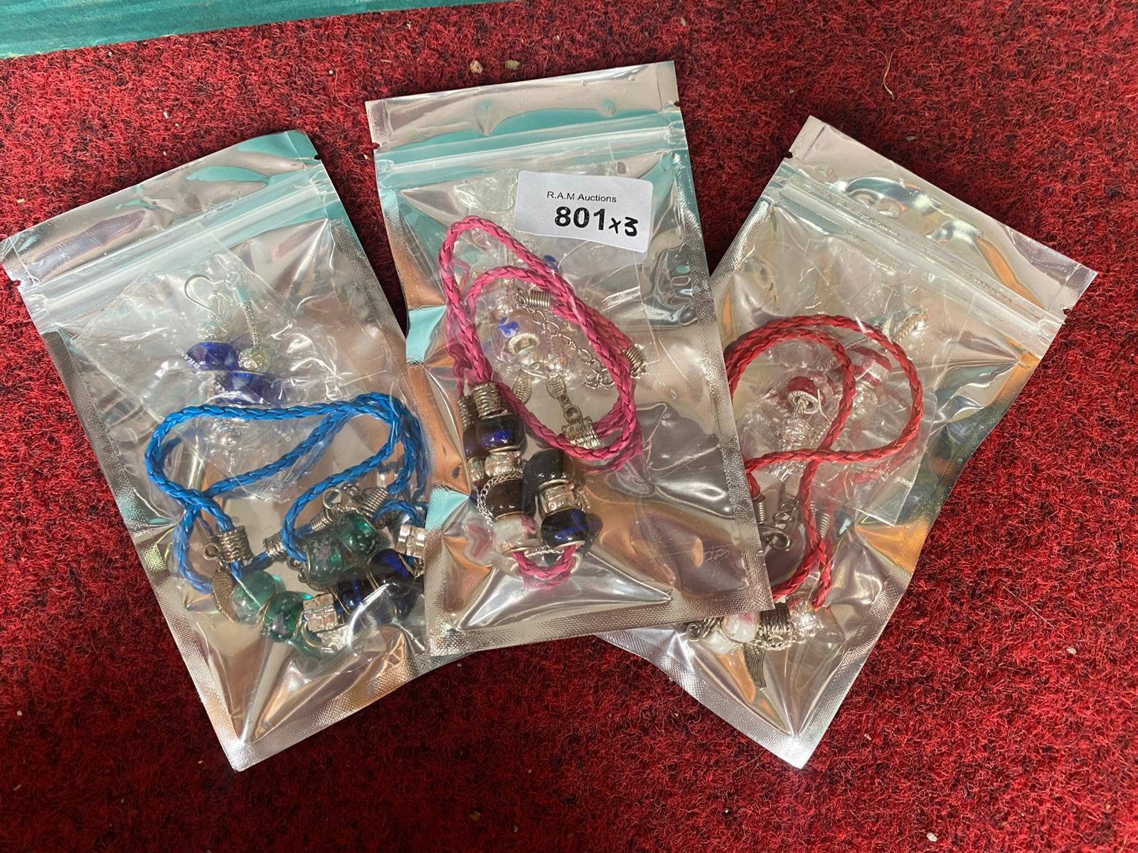 Braided cord bracelets with beads and silver-toned metal charms.