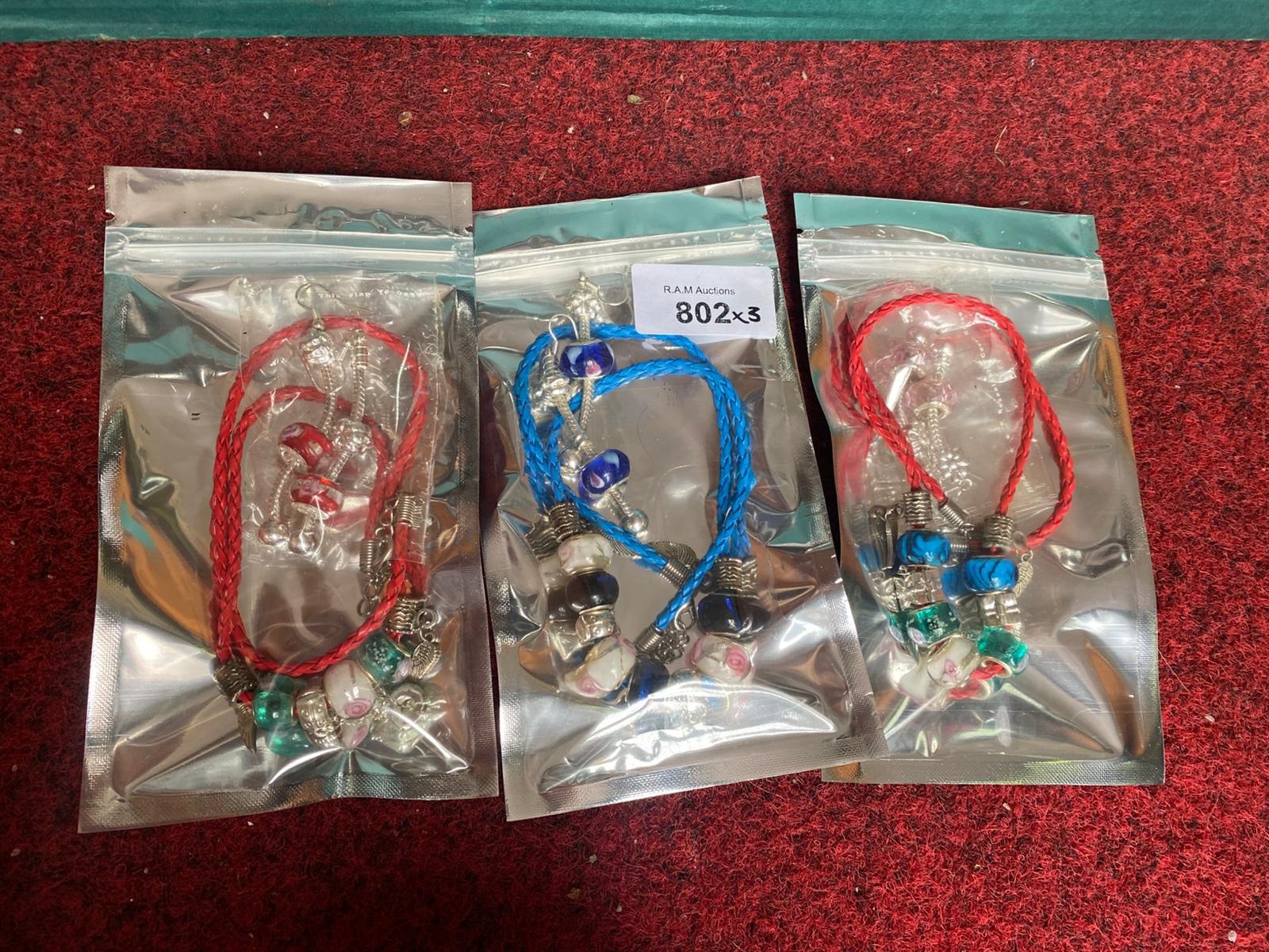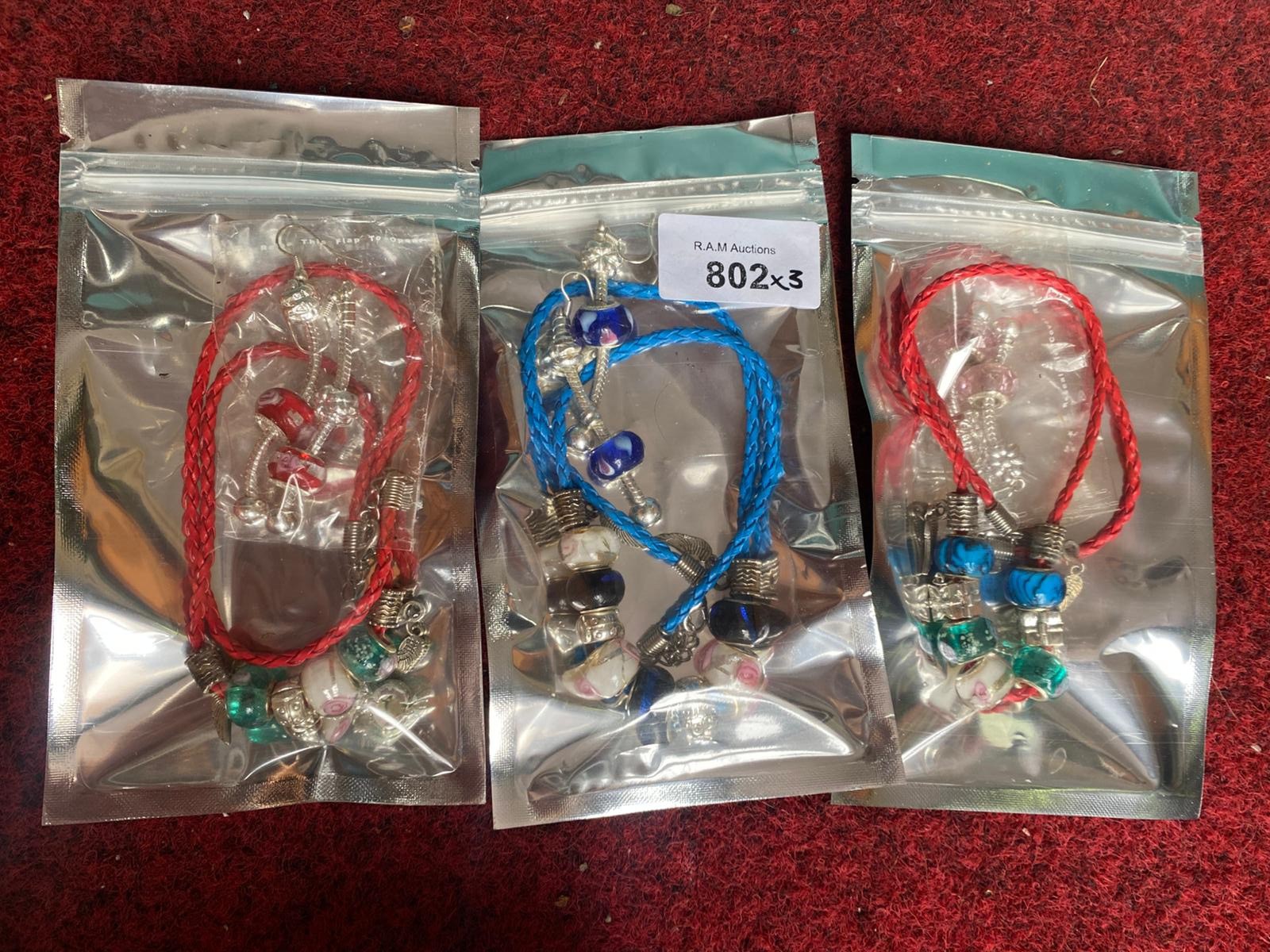 Braided cord bracelets with beaded accents and matching earrings.