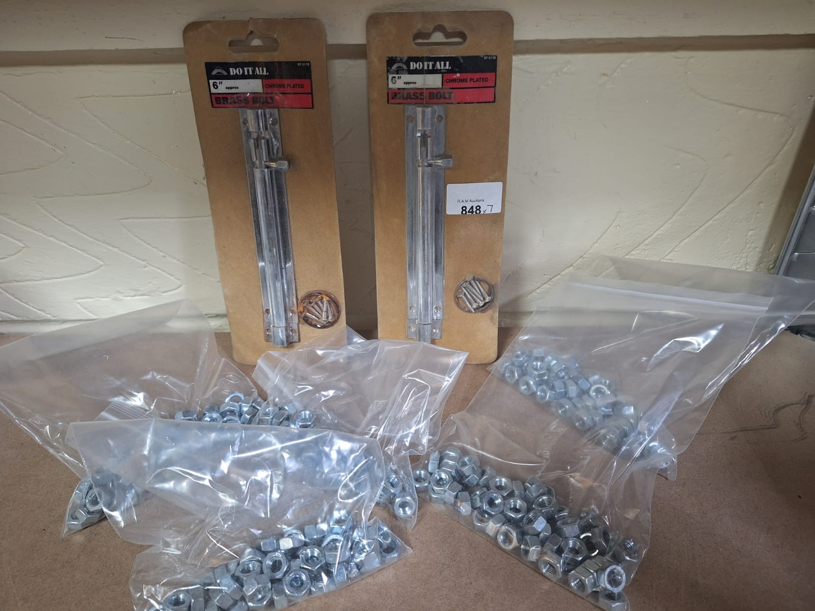 Chrome-plated brass bolts with assorted nuts and bolts.