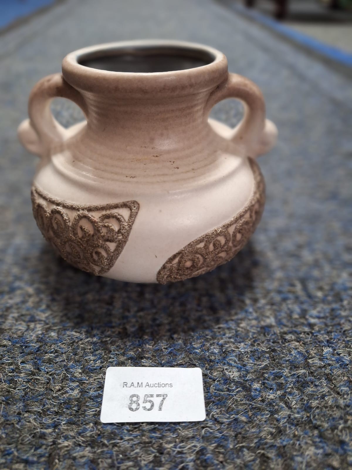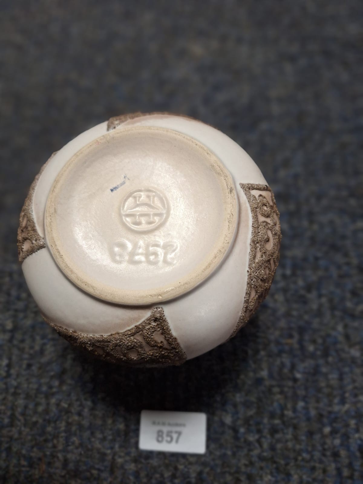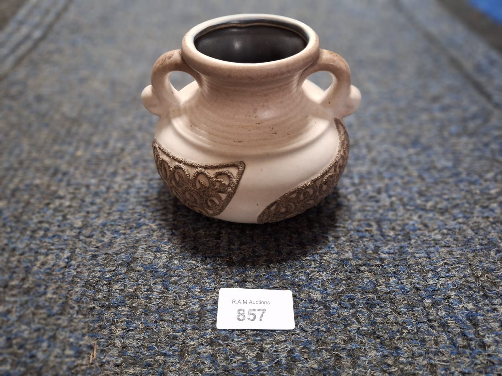 Off-white ceramic vase with a brown textured floral pattern and a darker brown rim.