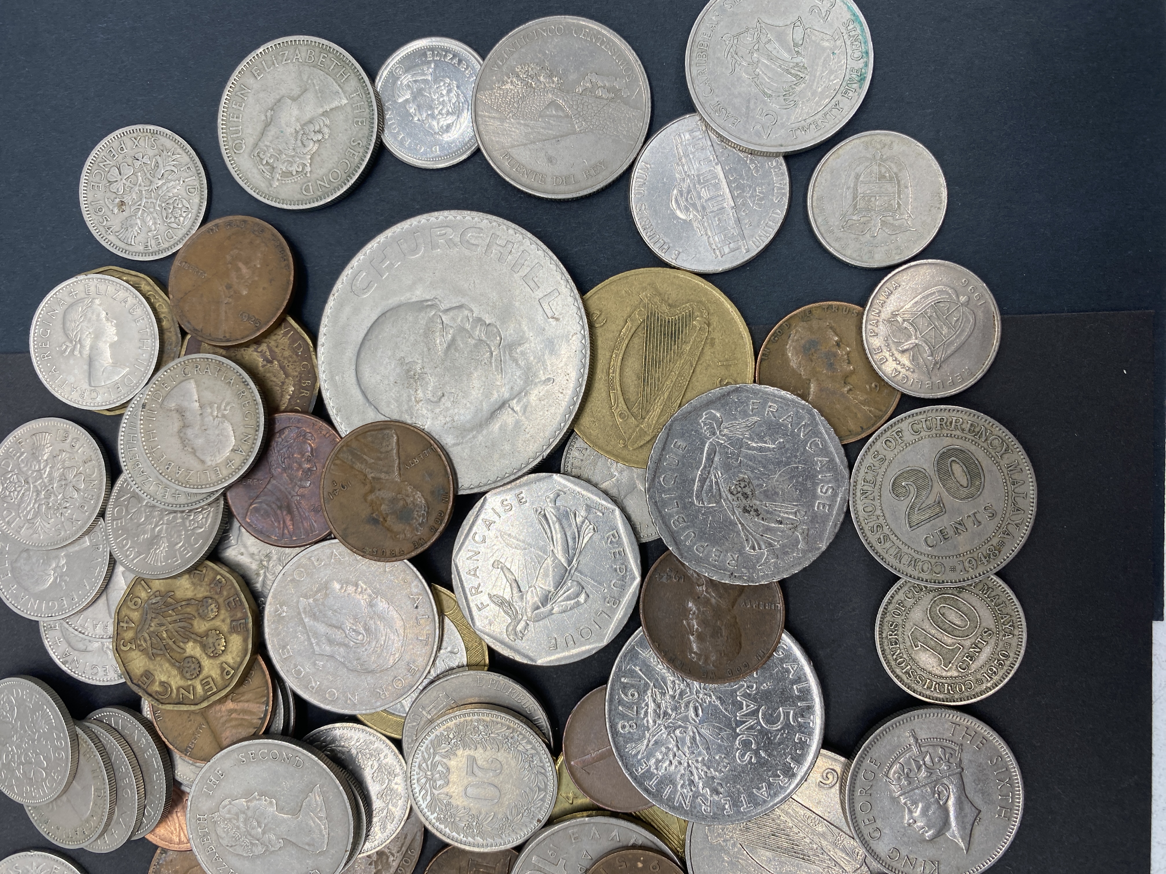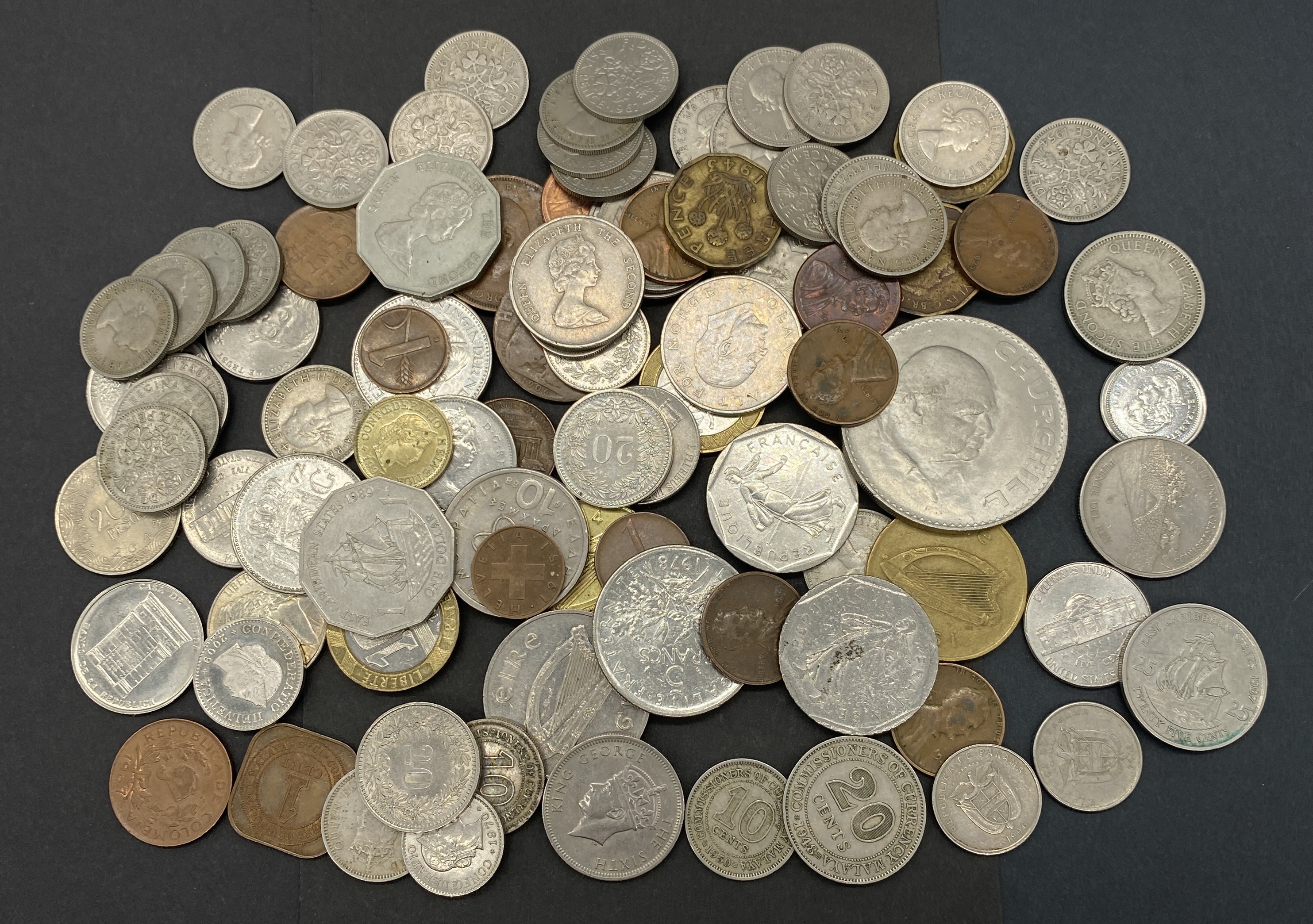 A mixed lot of various silver and bronze foreign coins.
