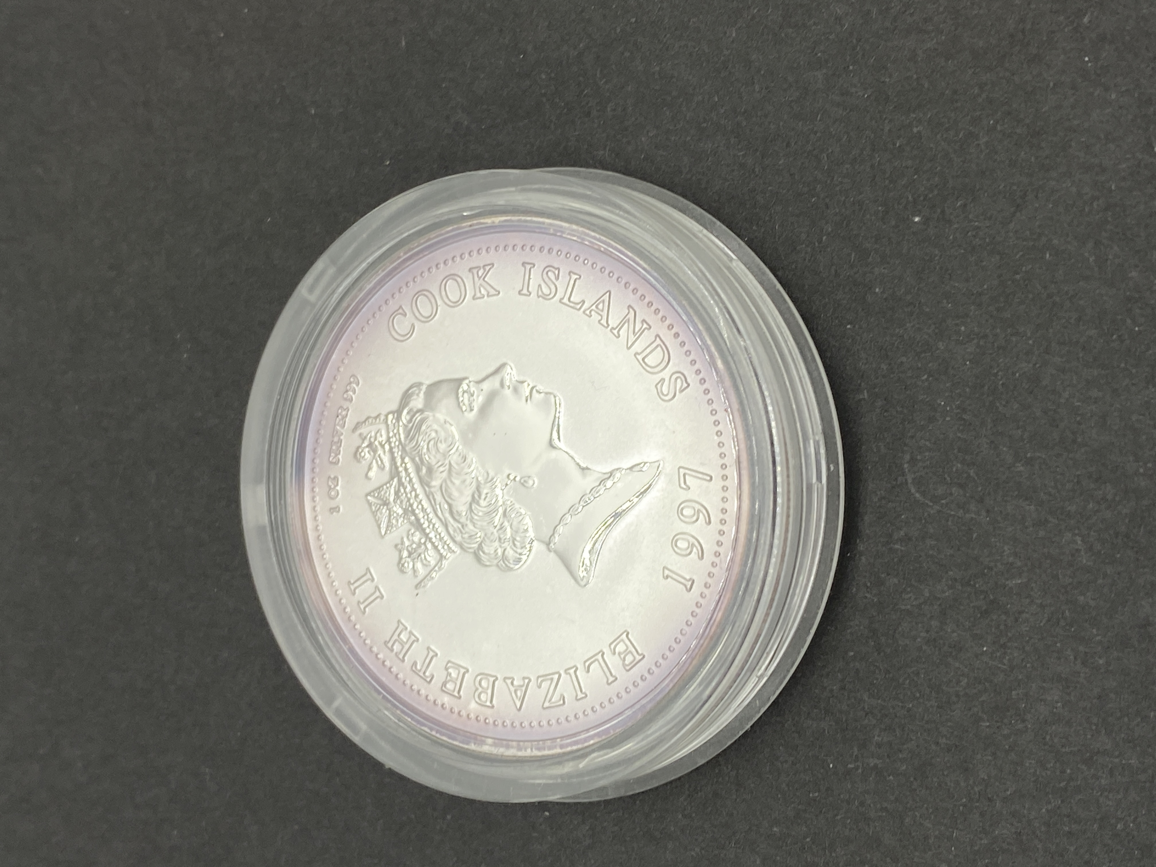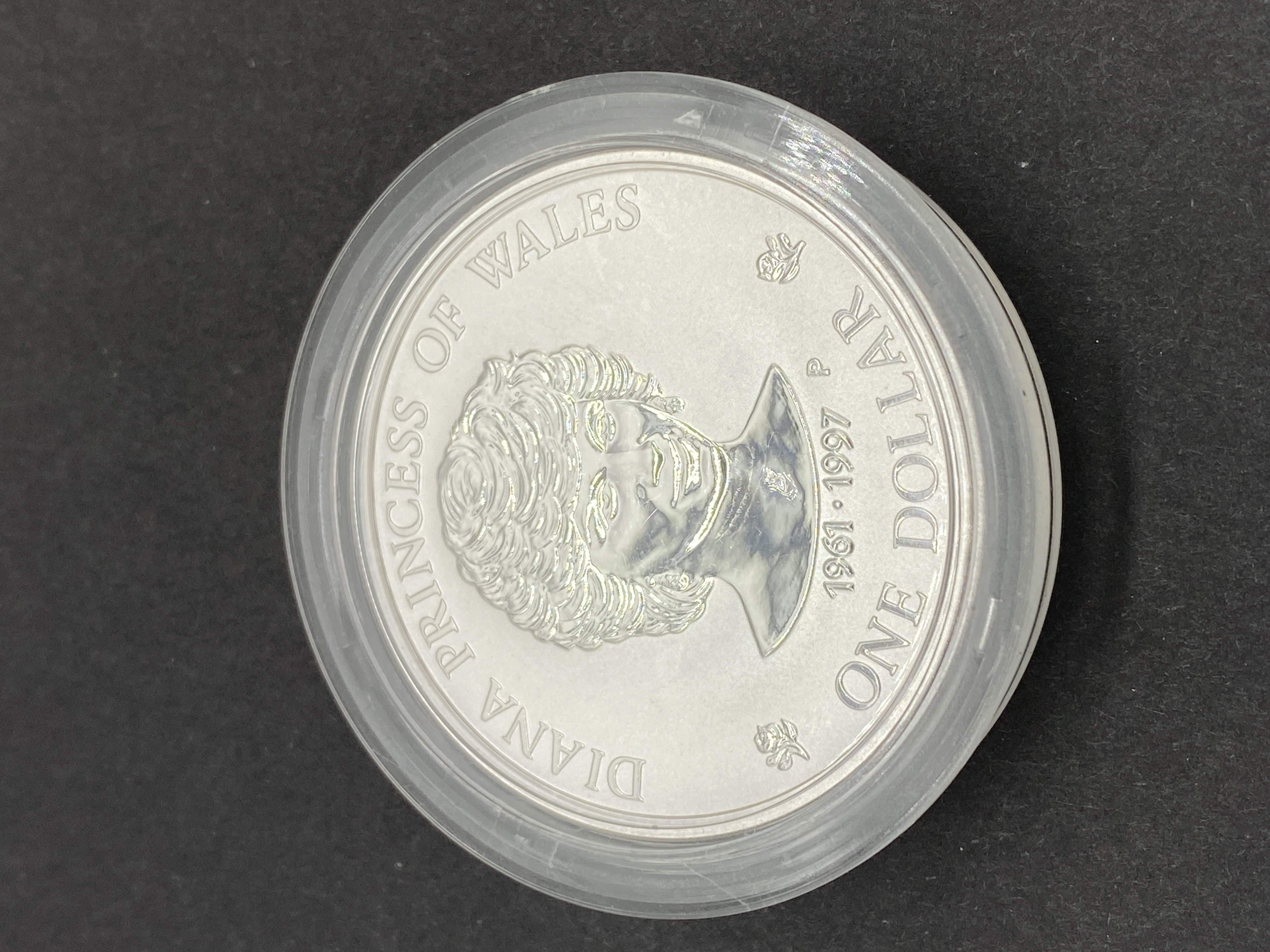 Two 1oz silver proof coins commemorating Princess Diana, from the Cook Islands, dated 1997.