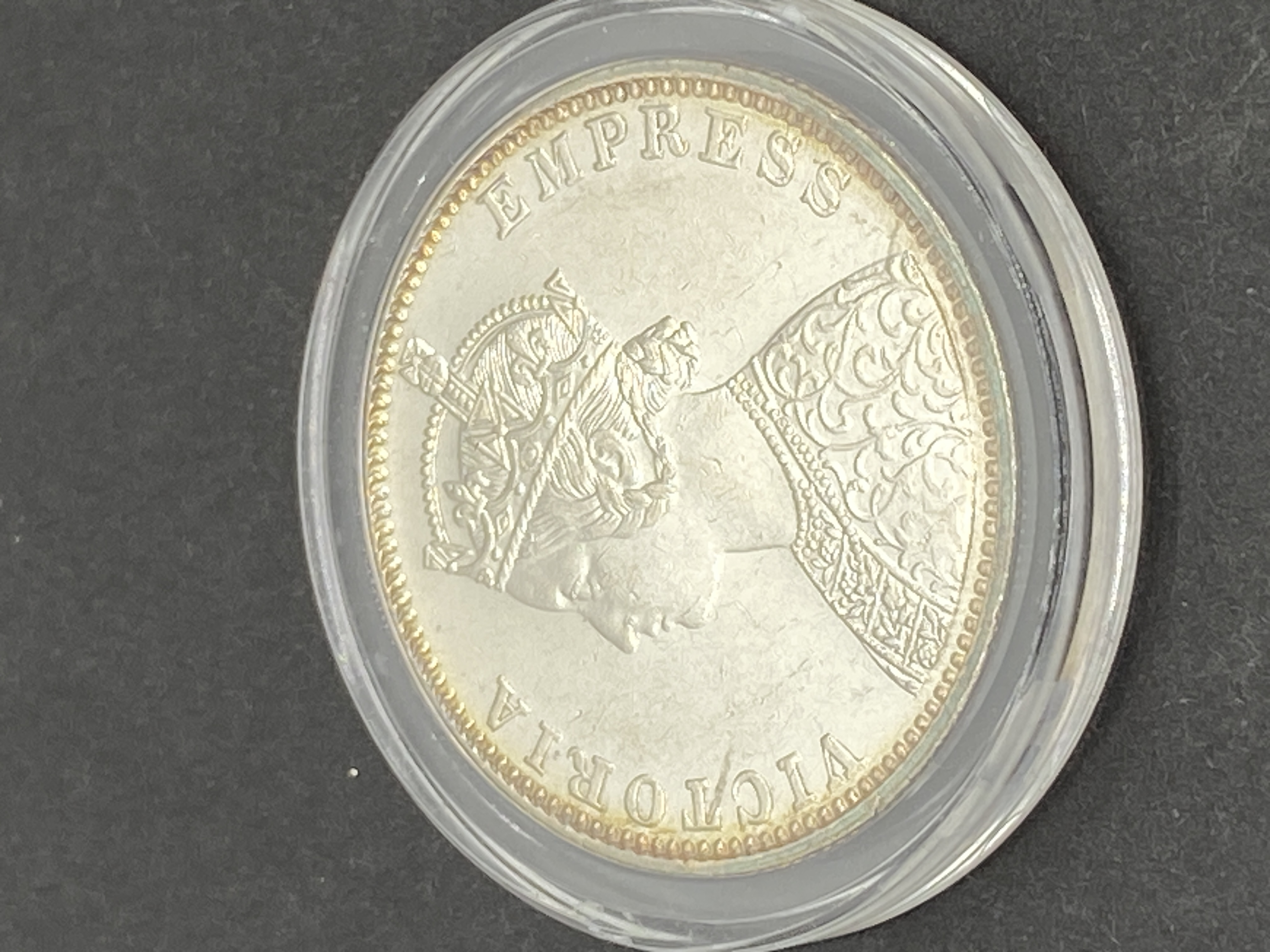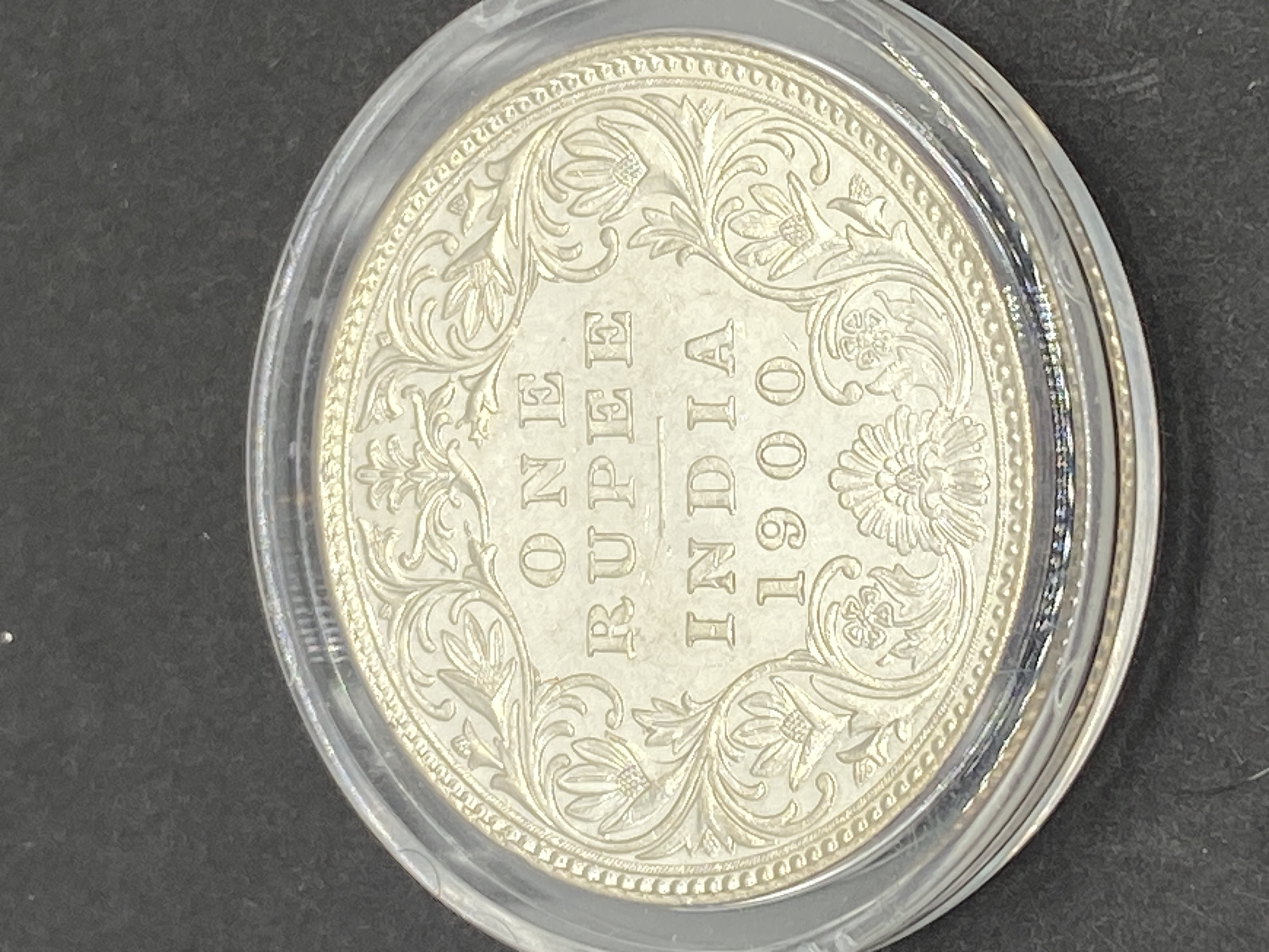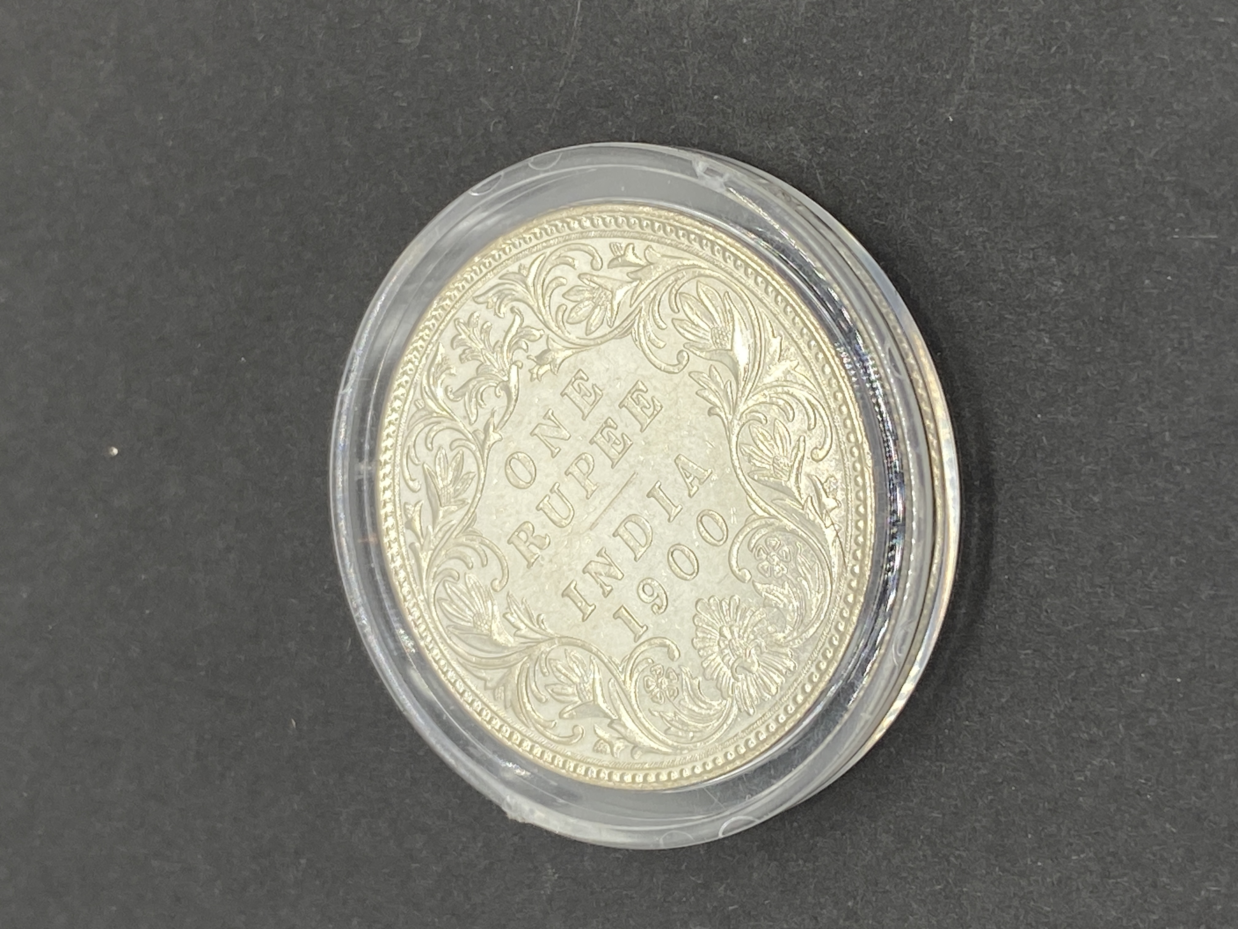 Silver one rupee coin from British India dated 1900, featuring Queen Victoria.