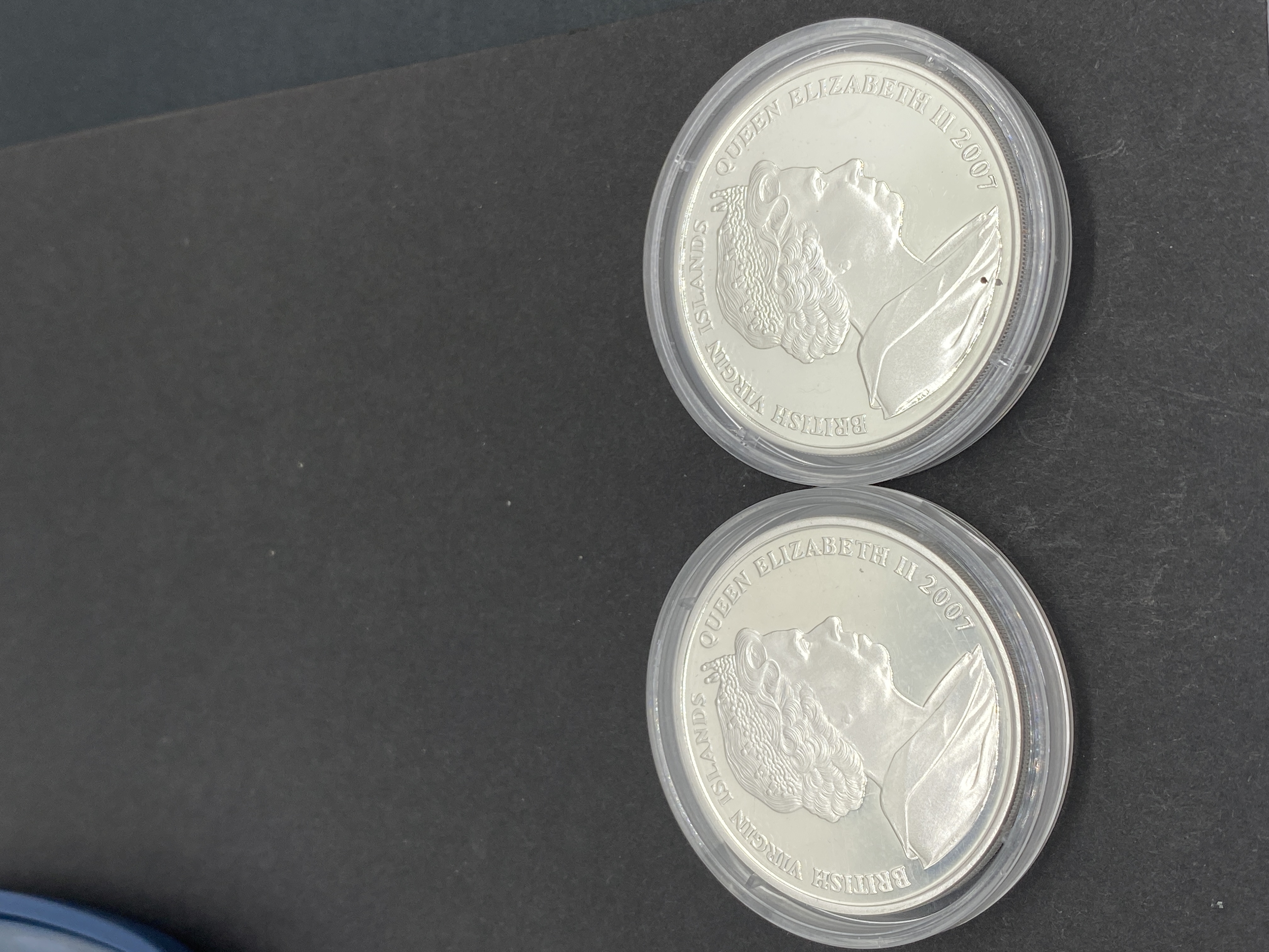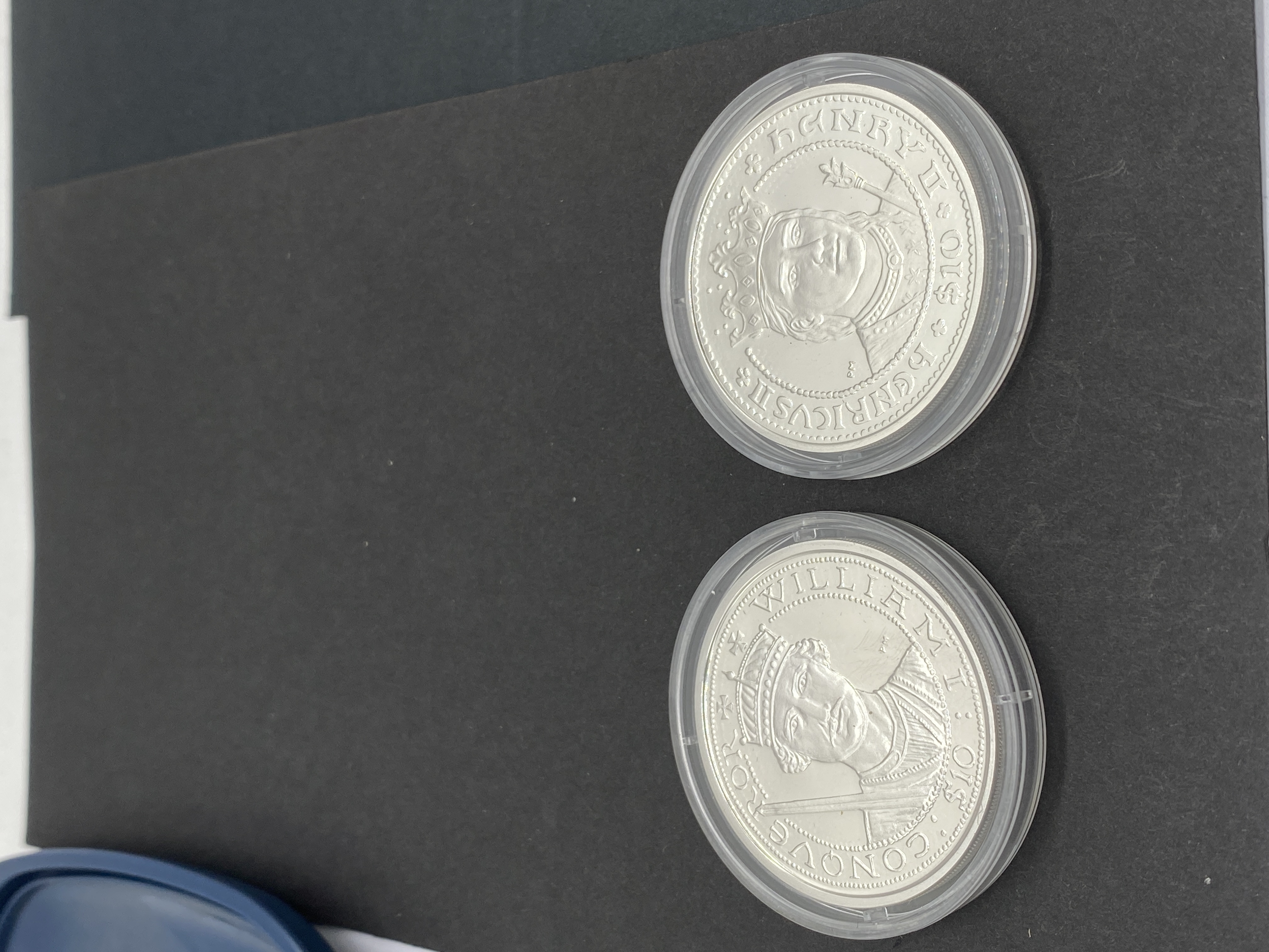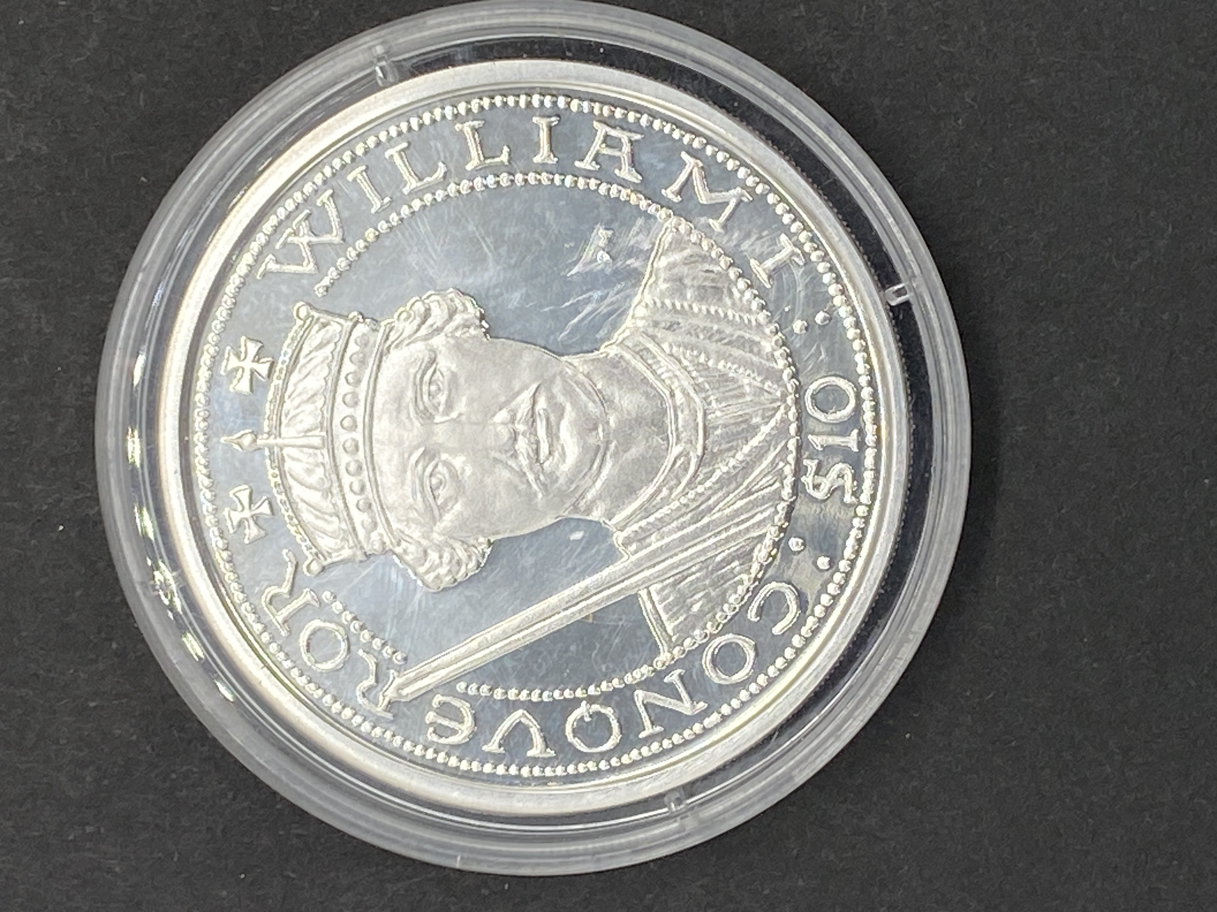 Three silver proof coins, two depicting Queen Elizabeth II 2007 and one William the Conqueror 1015.