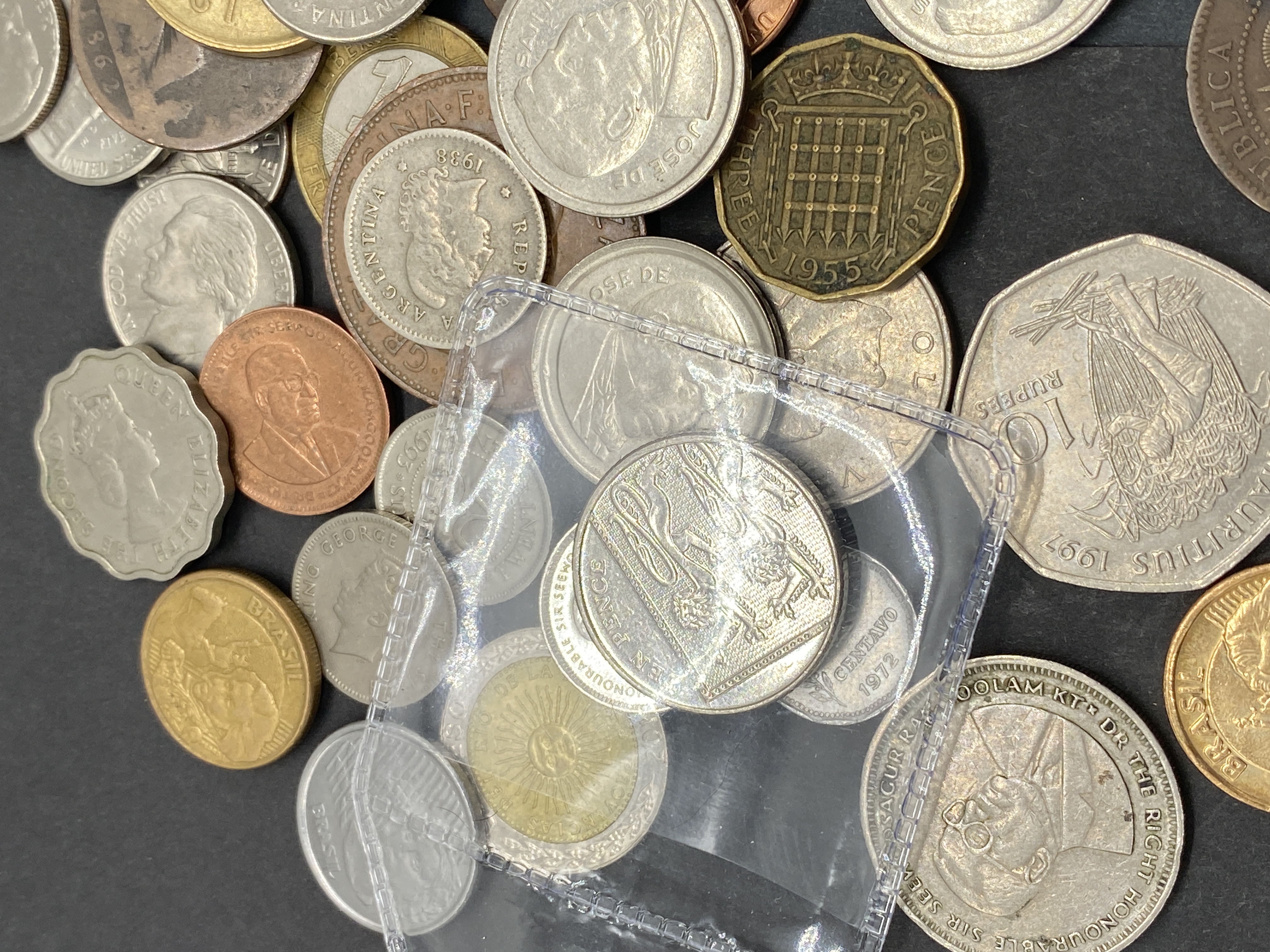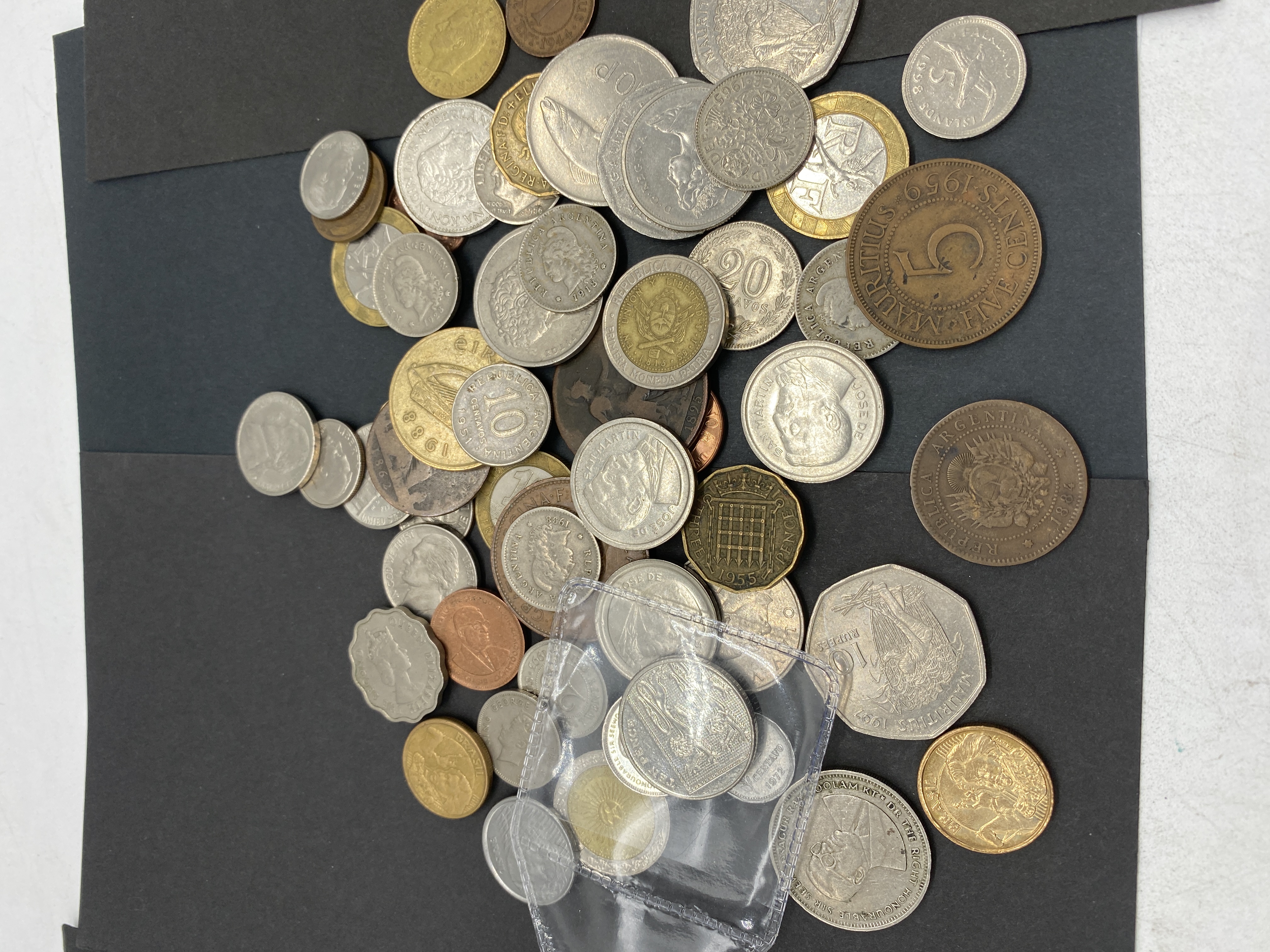 A mixed lot of various silver and bronze coins, some in a plastic sleeve.