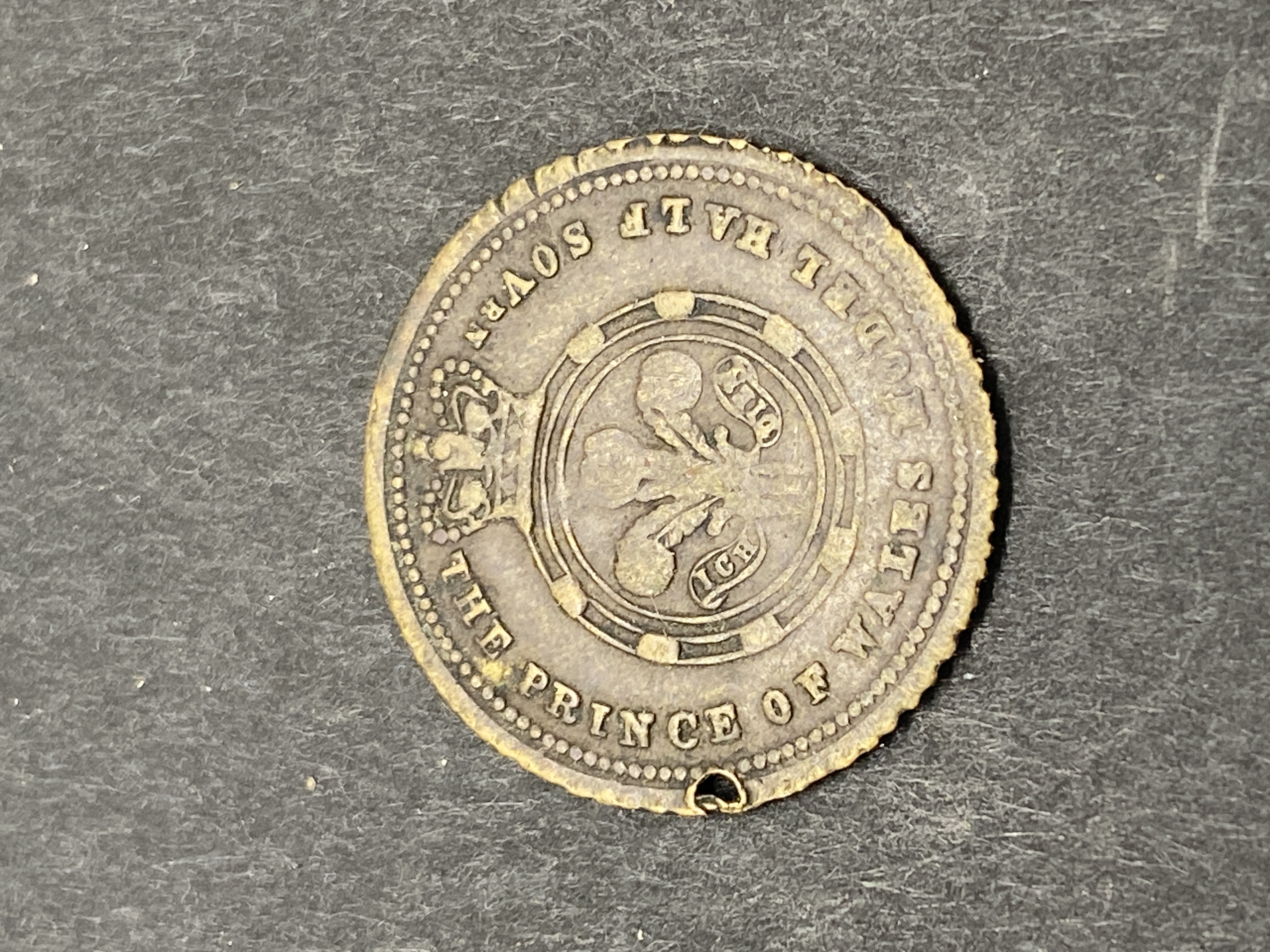 Two bronze-colored coins, one depicting Queen Victoria and the other the Prince of Wales Model.