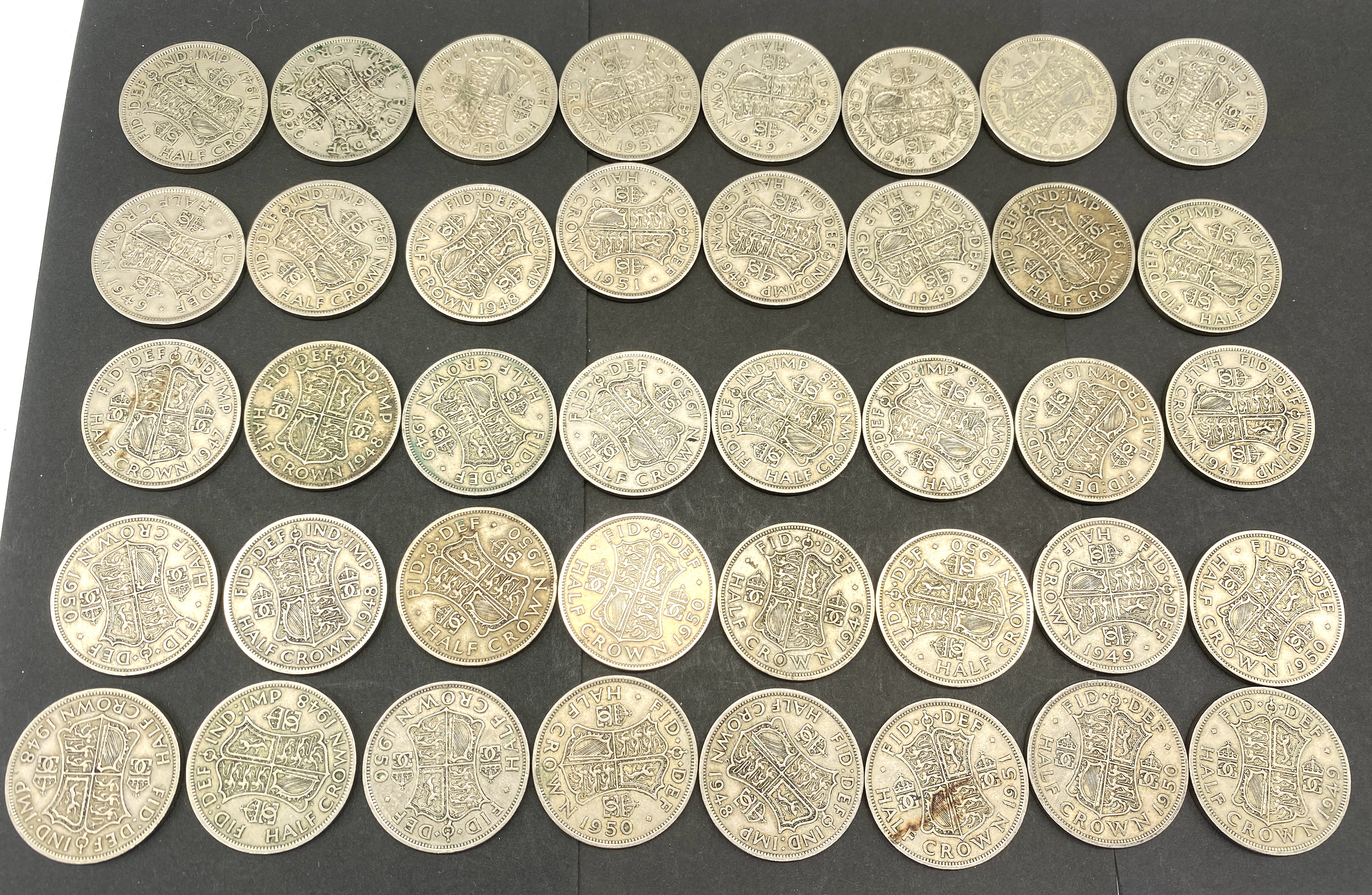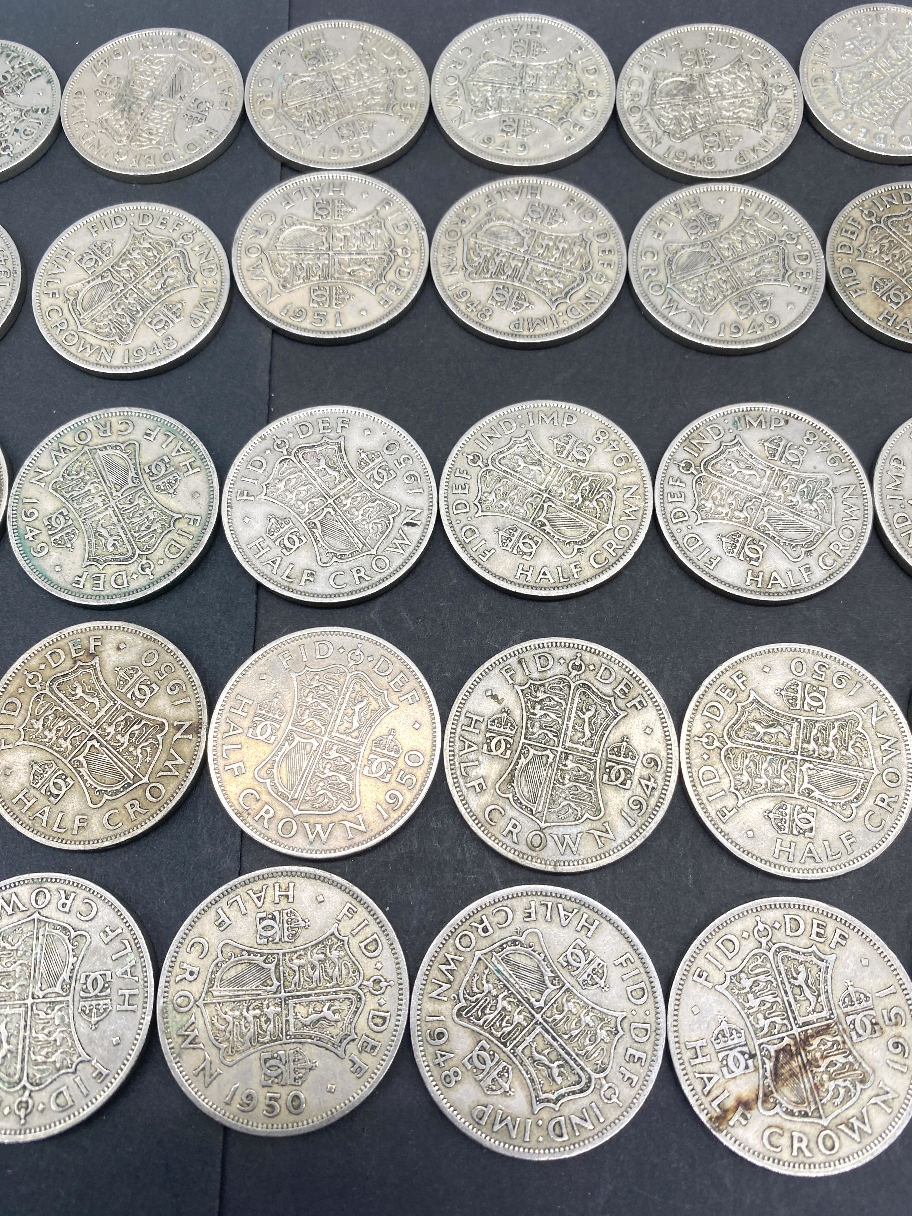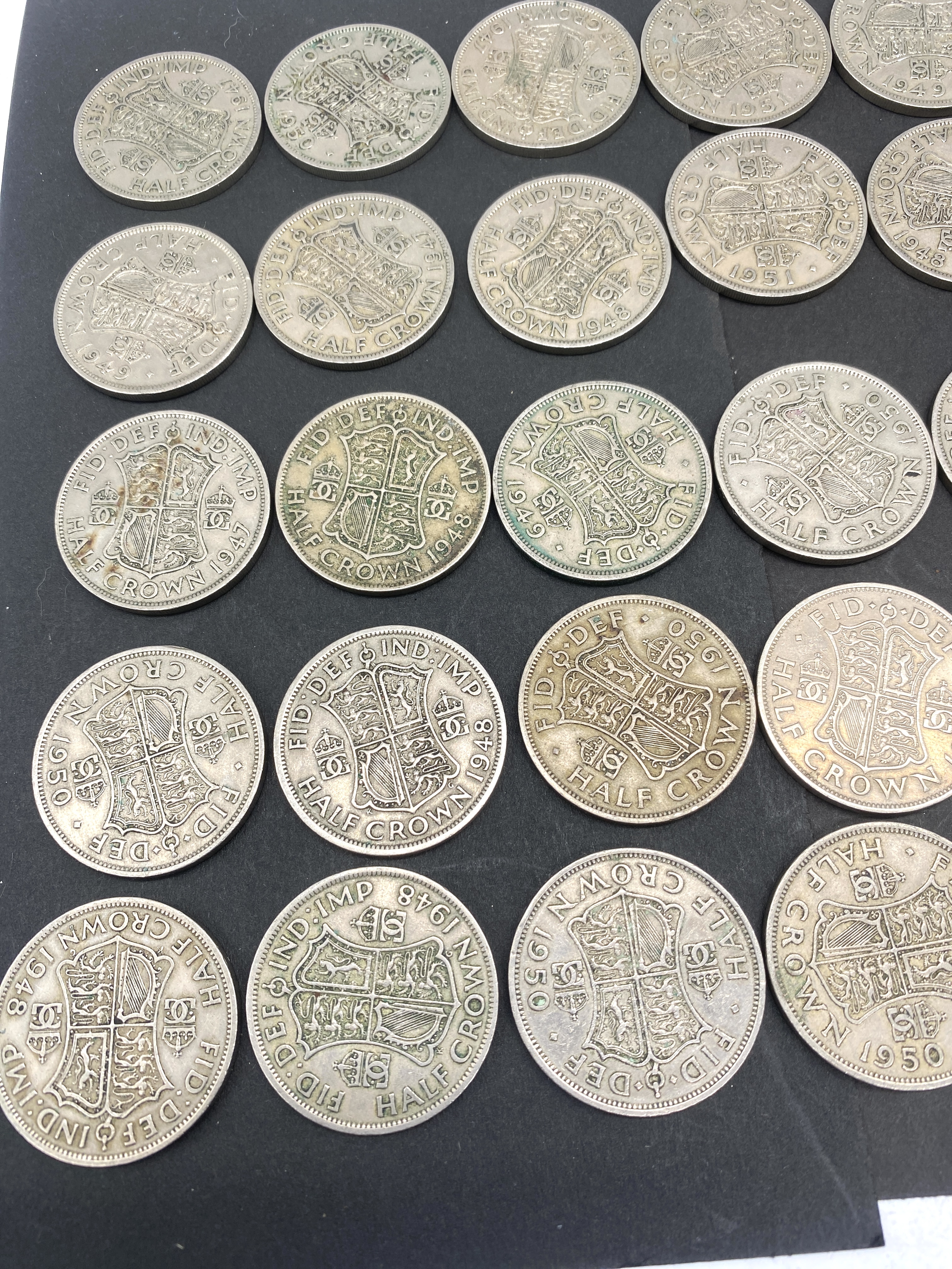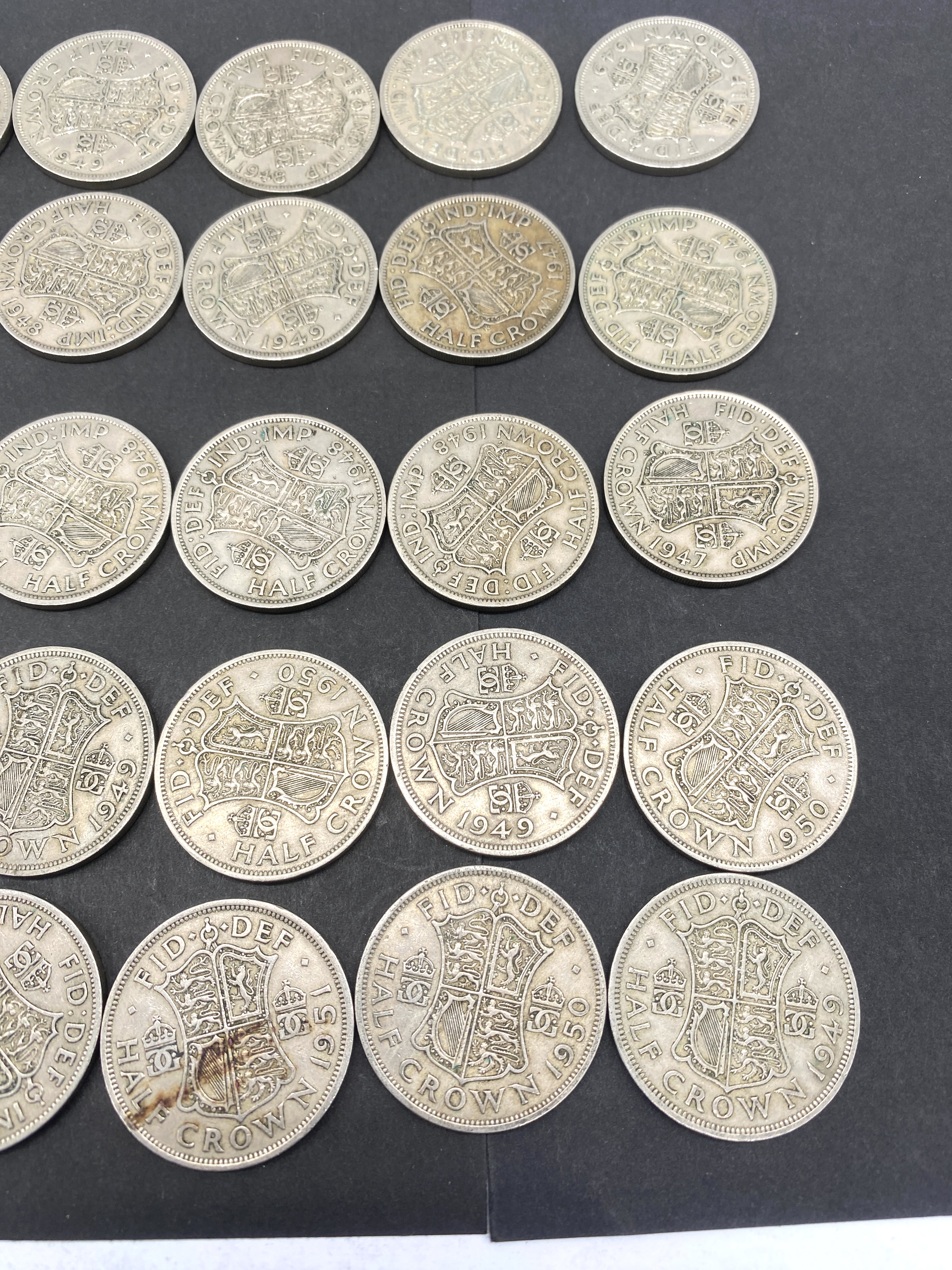 A collection of British half crown coins featuring various dates.