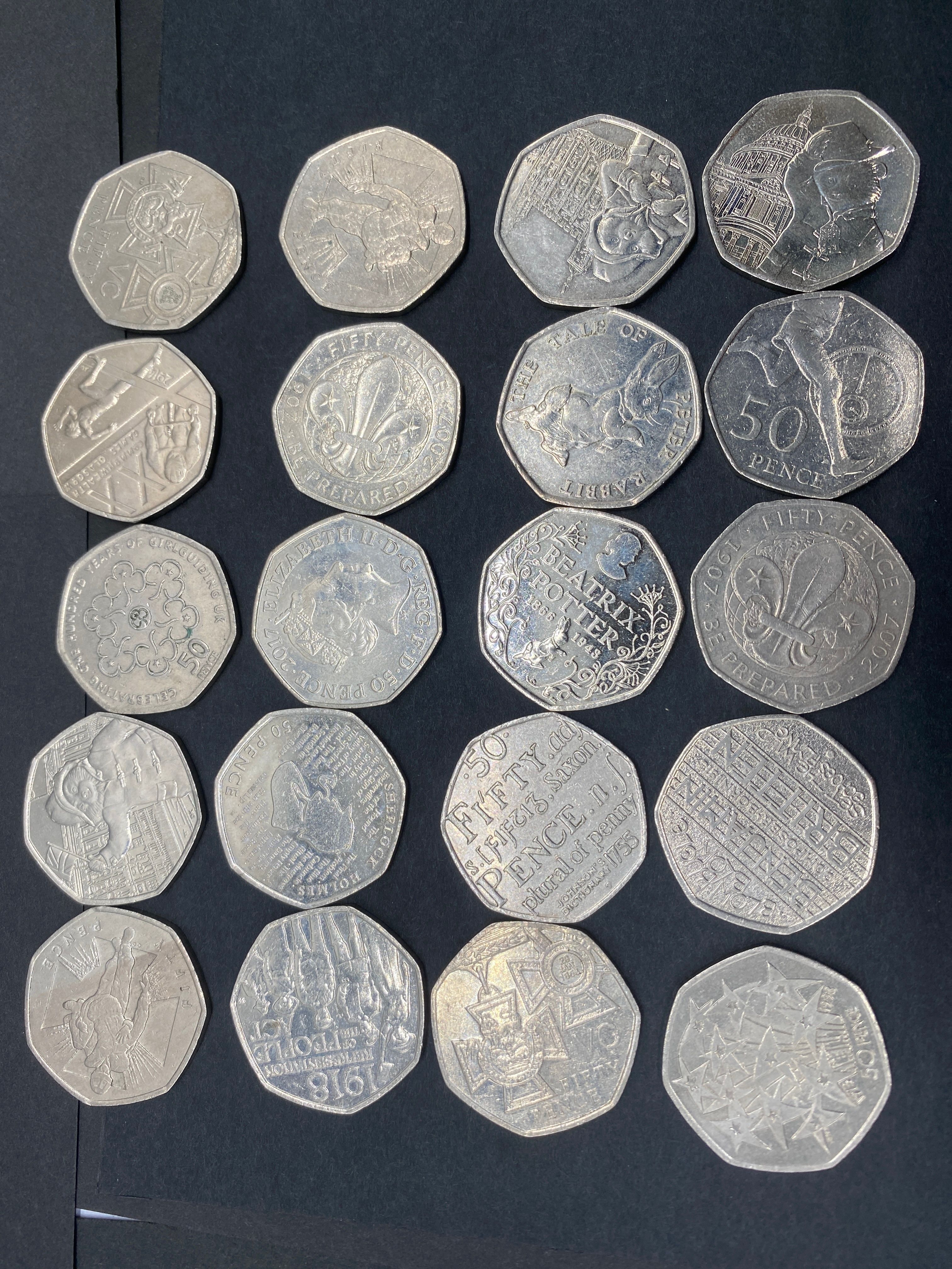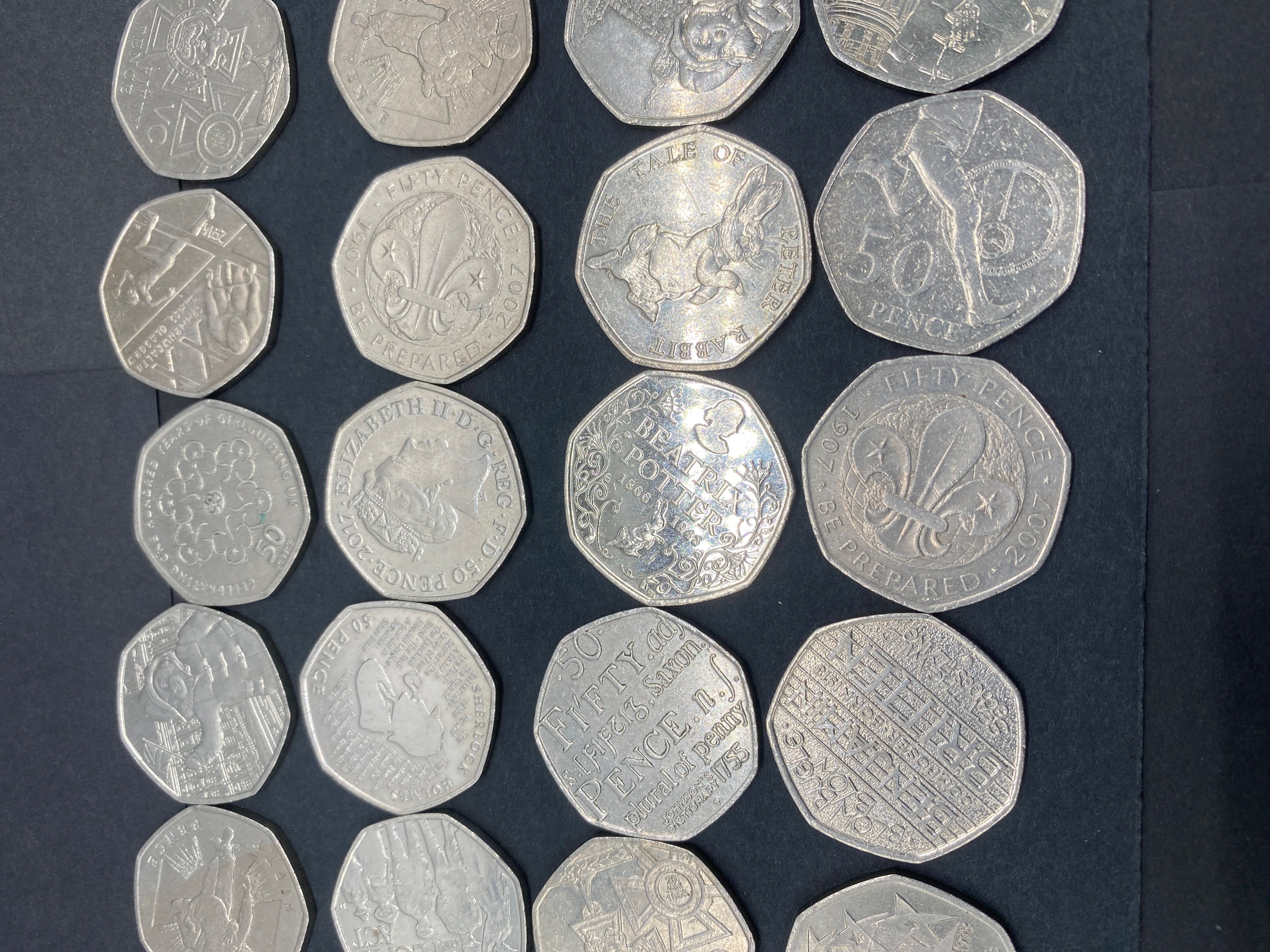 A collection of twenty-four various commemorative fifty pence coins.