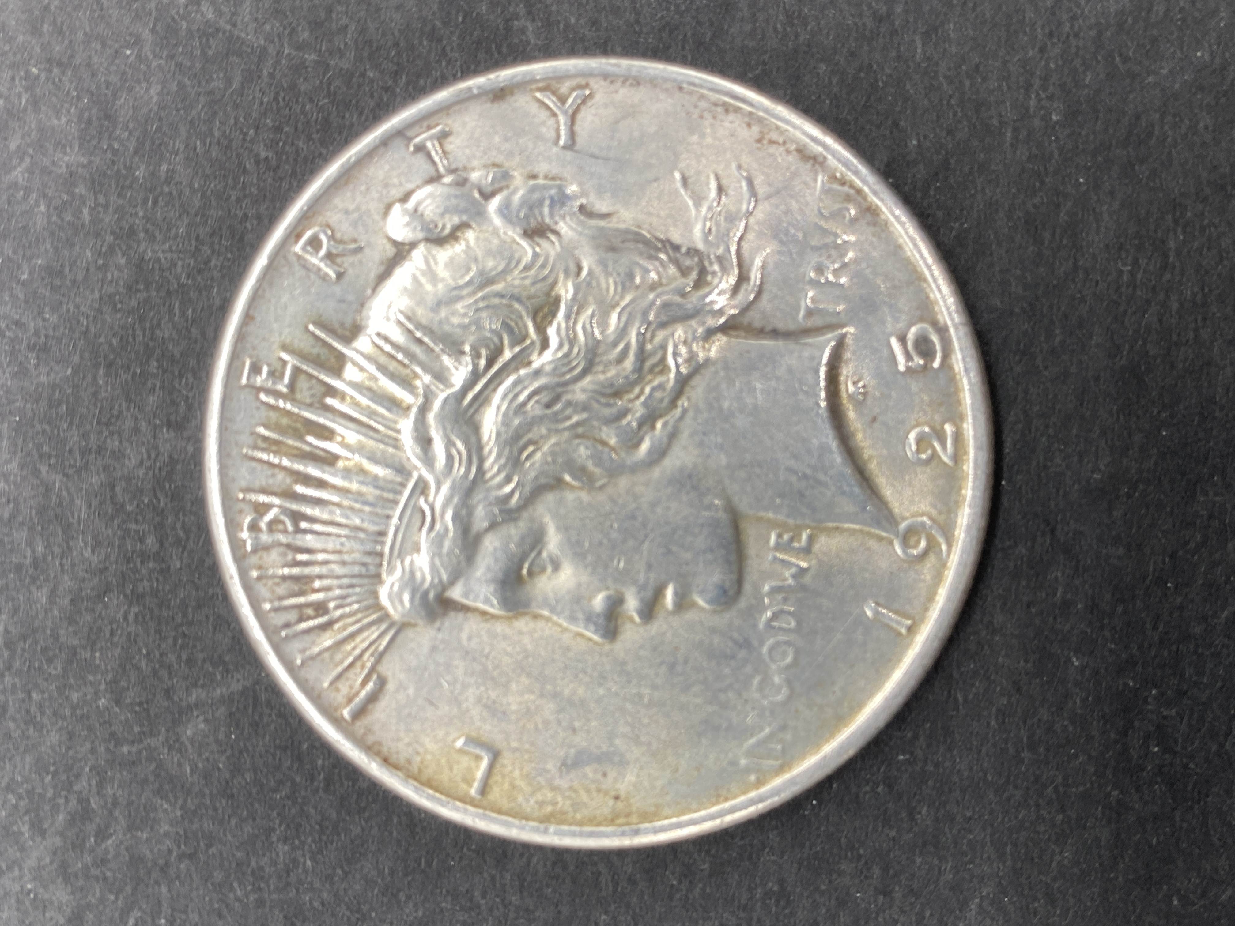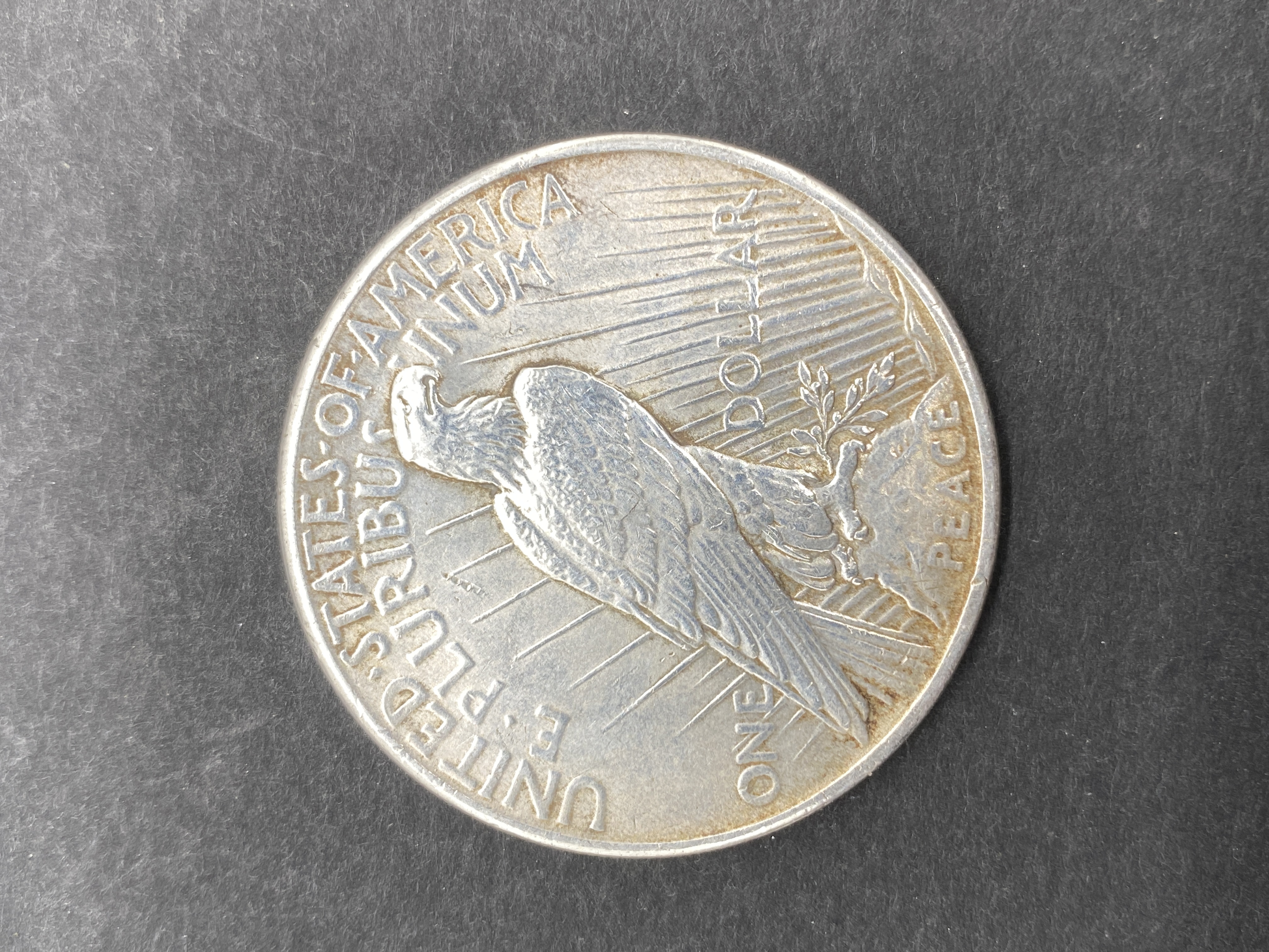 A 1925 Peace silver dollar coin.