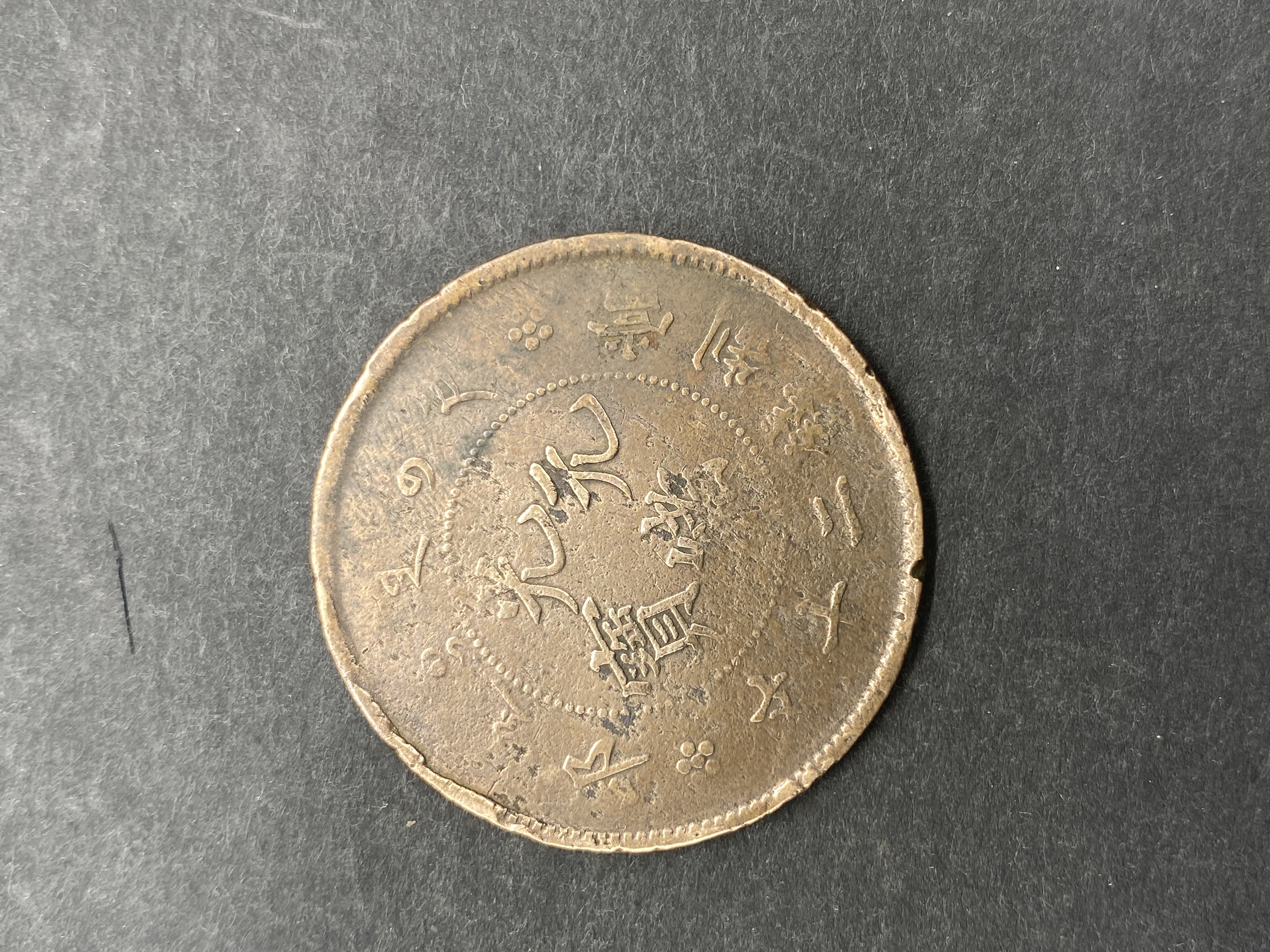 A circular Chinese coin, likely bronze or copper.