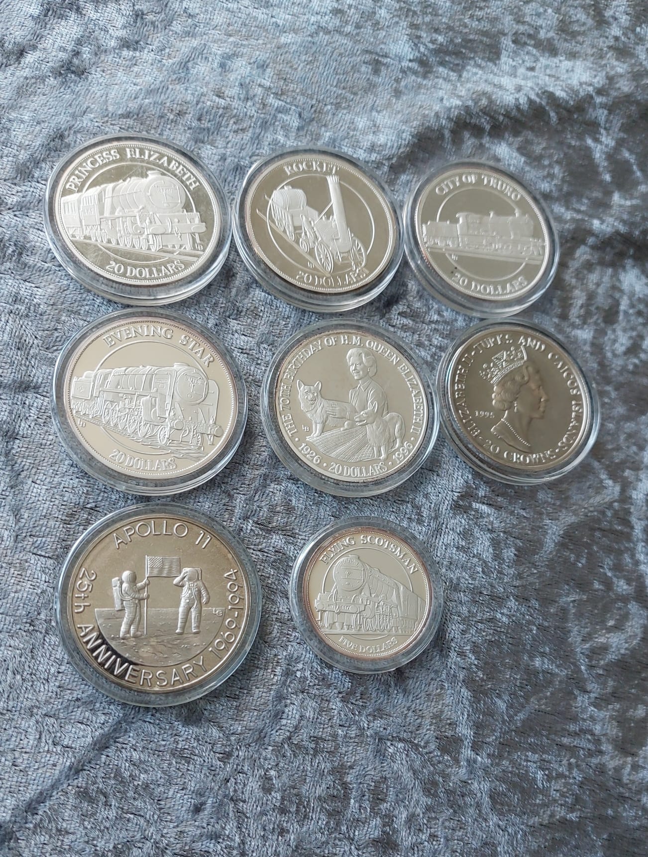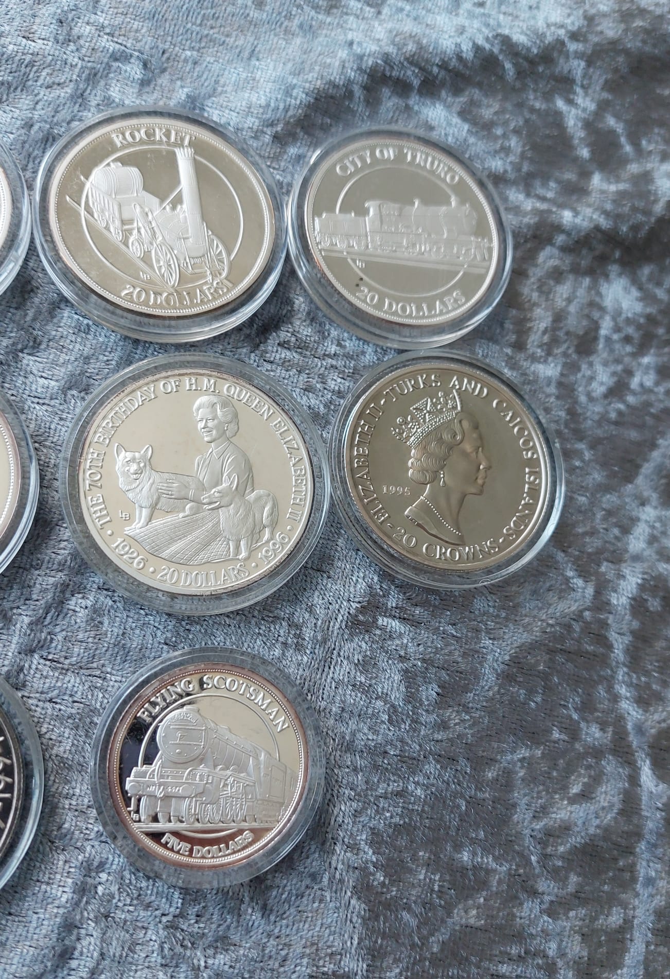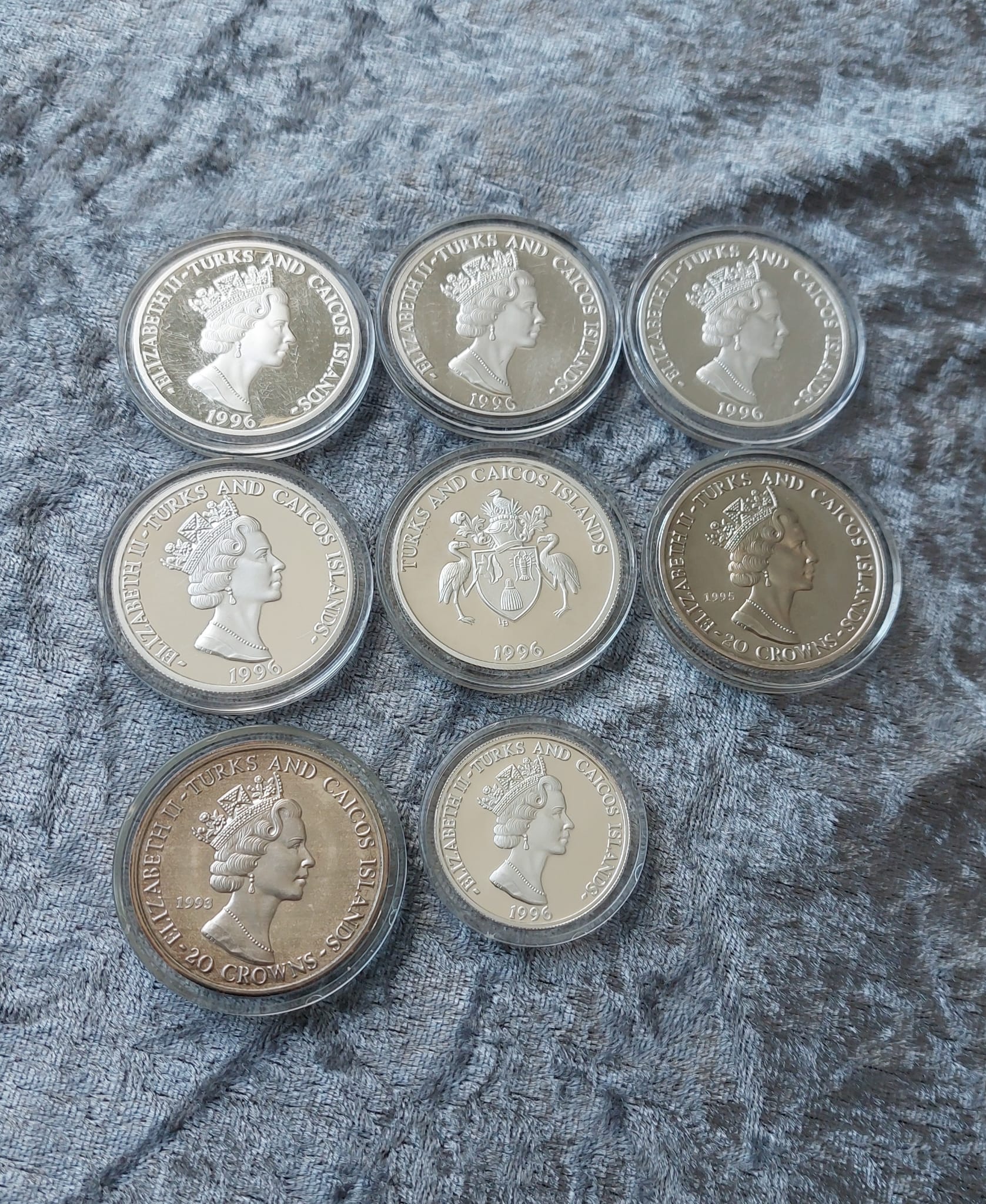 A collection of various Turks and Caicos silver coins, including commemorative designs.